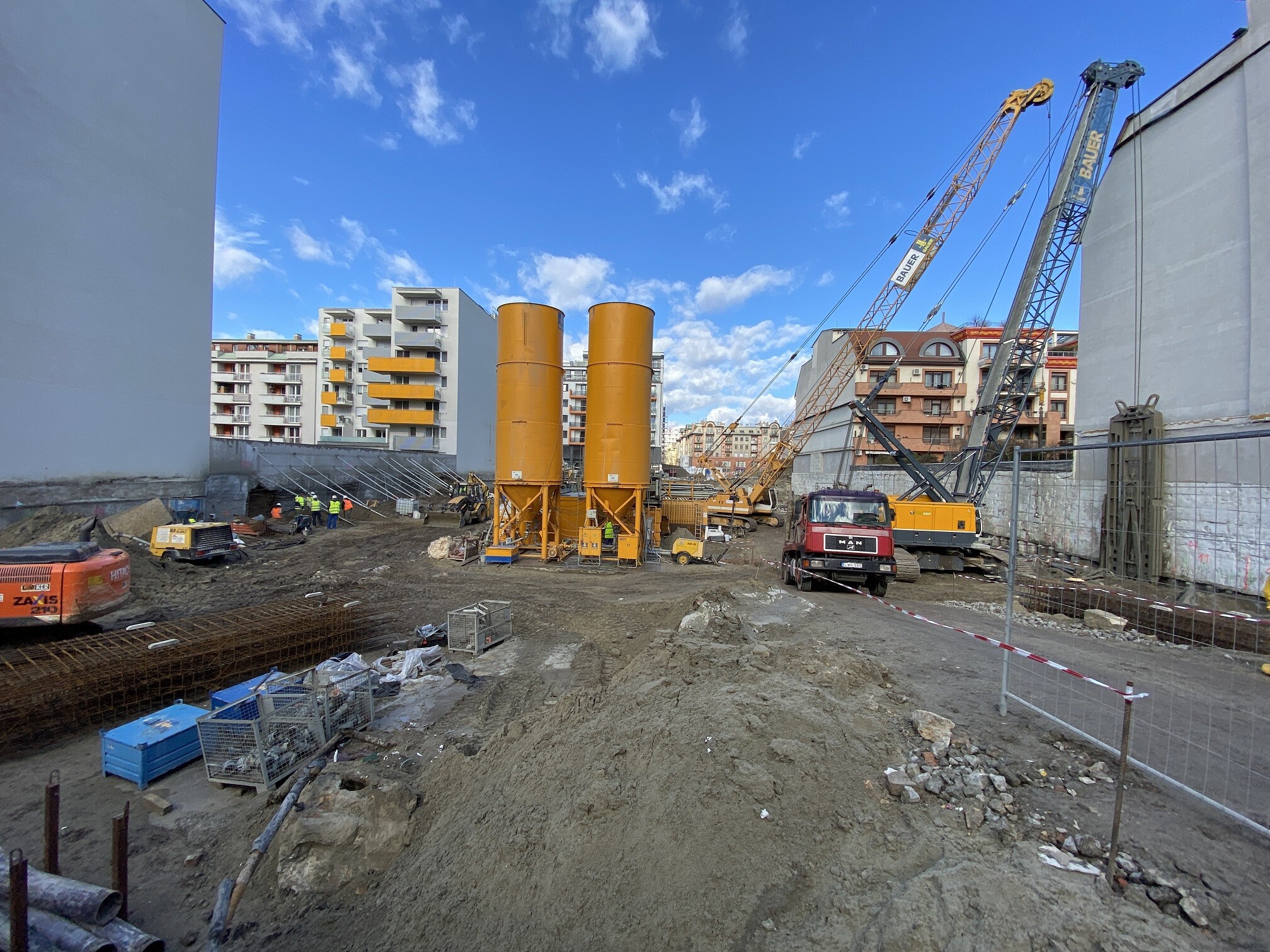 „A Bullflex cölöpök alkalmazására azért is volt szükség, mert a réselés közvetlenül a szomszédos épületek mellett zajlott. Ilyen esetekben mindig különleges odafigyeléssel kell dolgoznunk, hiszen a munkálatok során nagyon fontos megóvnunk a meglévő épületeket. Így az alátámasztást végül összesen 60 darab ilyen speciális cölöp beépítésével tudtuk biztosítani Továbbá az egyik szomszéd épület kétszintes mélygarázzsal rendelkezik, ezen a szakaszon pedig horgonyzást sem végezhettünk, végül a kitámasztást acél csőtámaszokkal biztosítottuk.” – ismertette a projektvezető.