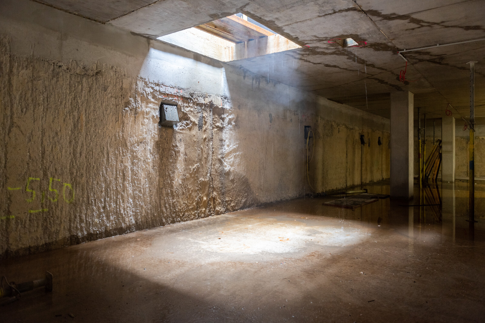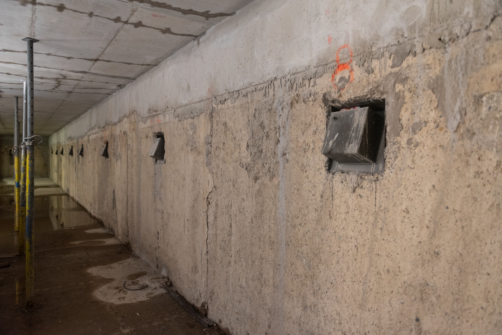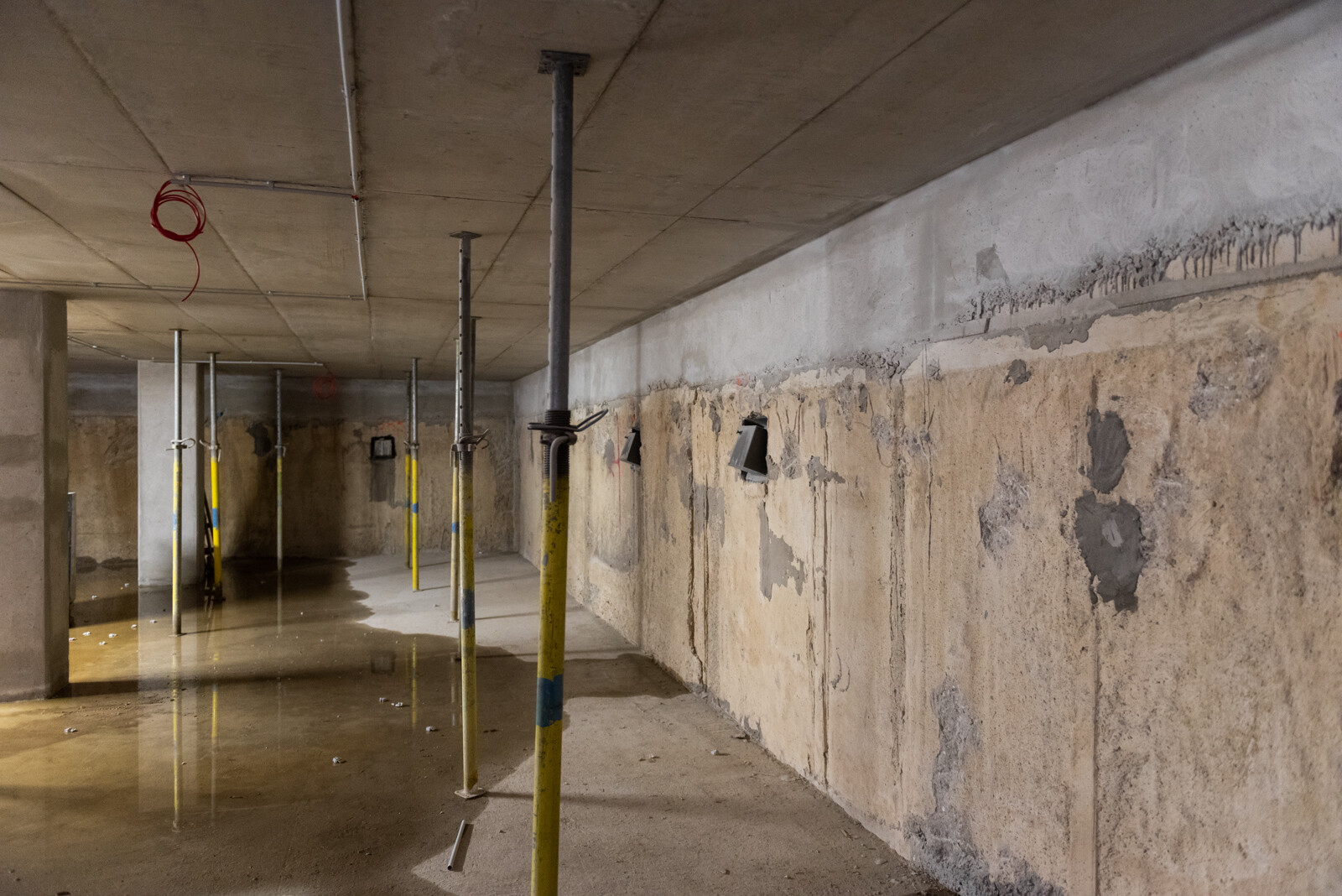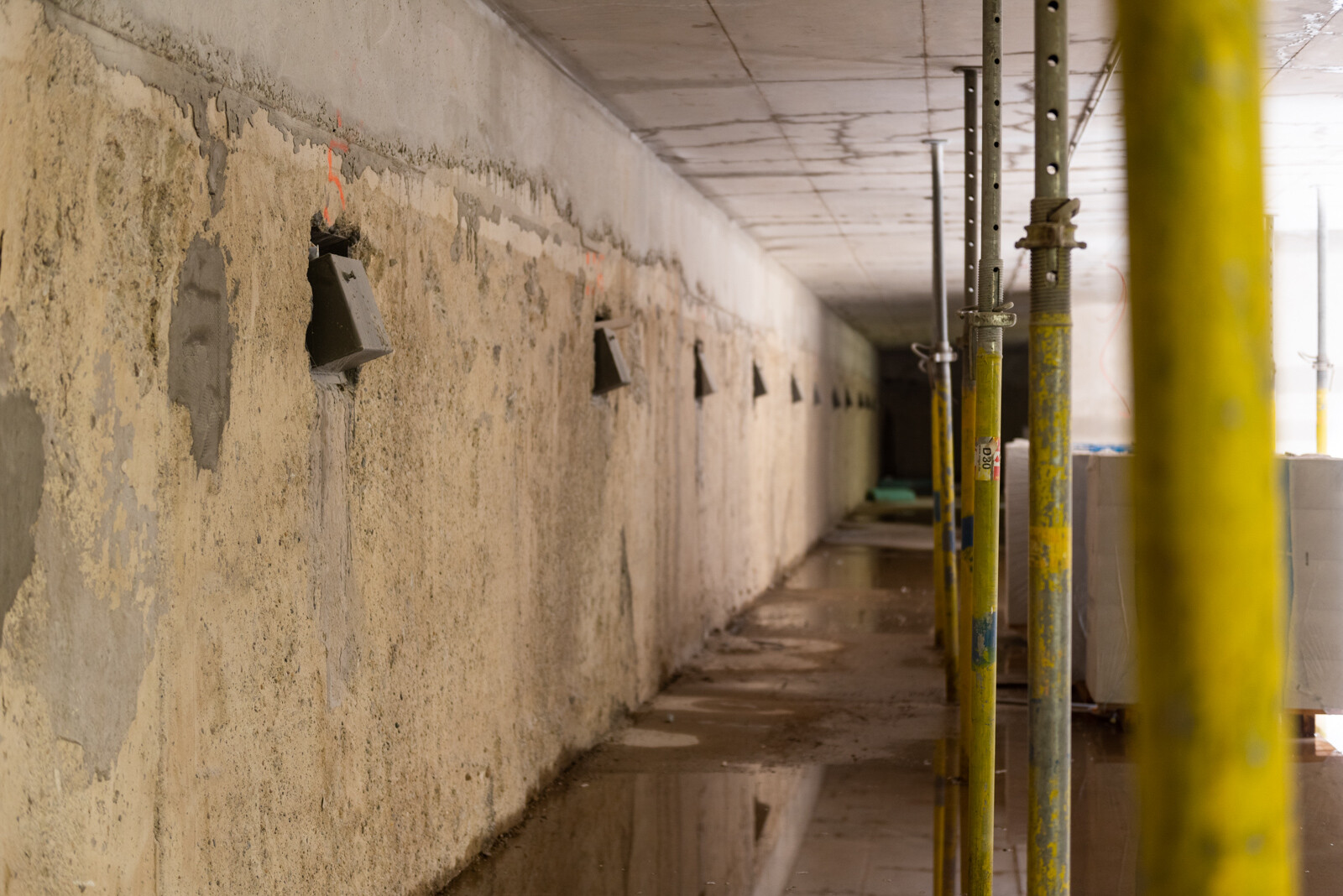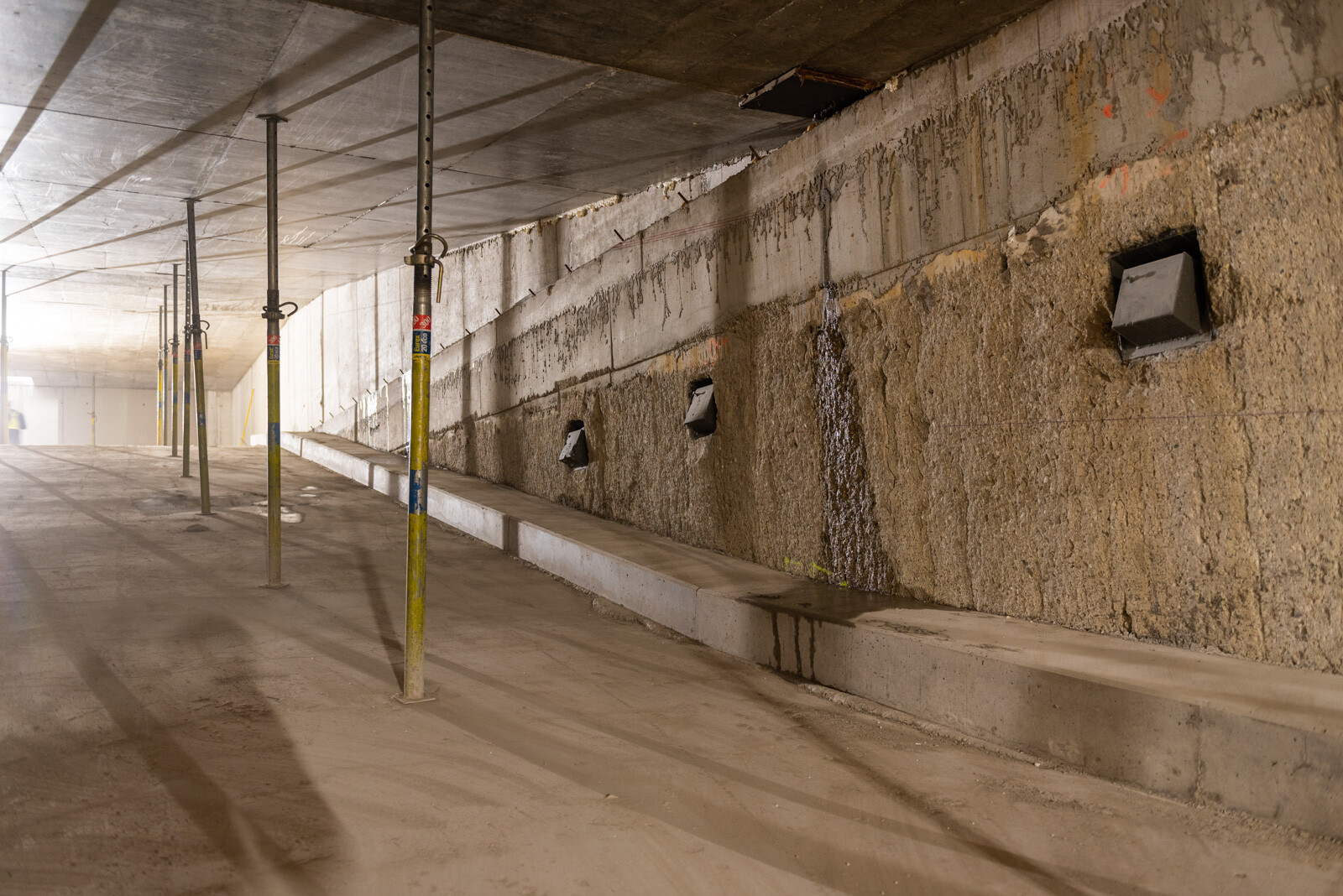 a mélygarázs szinteken nem volt szükséges bélésfalat építeniük, így az elkészült résfal a végleges mélygarázsban is látszófelületű maradt. Ennek érdekében az esztétikára is figyelmet fordítottak, így a szakemberek egy egyenletesen mart, sima felületet képeztek a falon.
