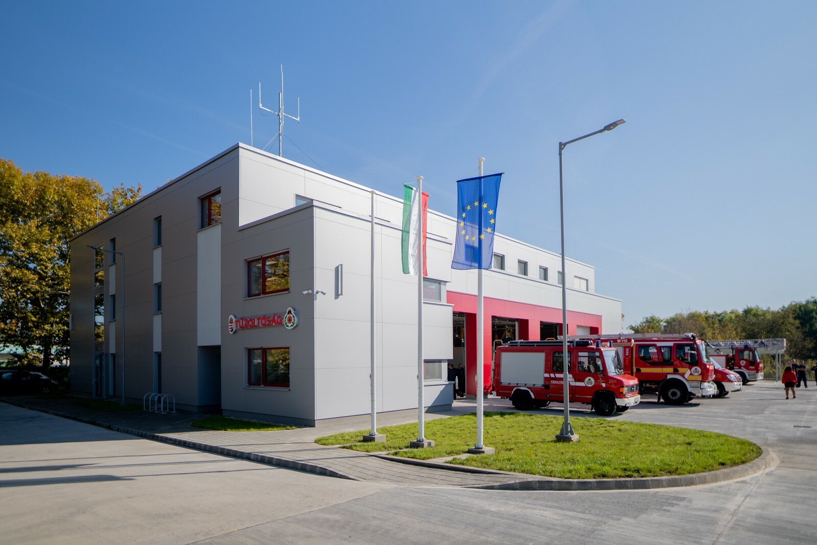 A tűzoltóság új központjának építése a Merkbau Zrt. kivitelezésében valósult meg.