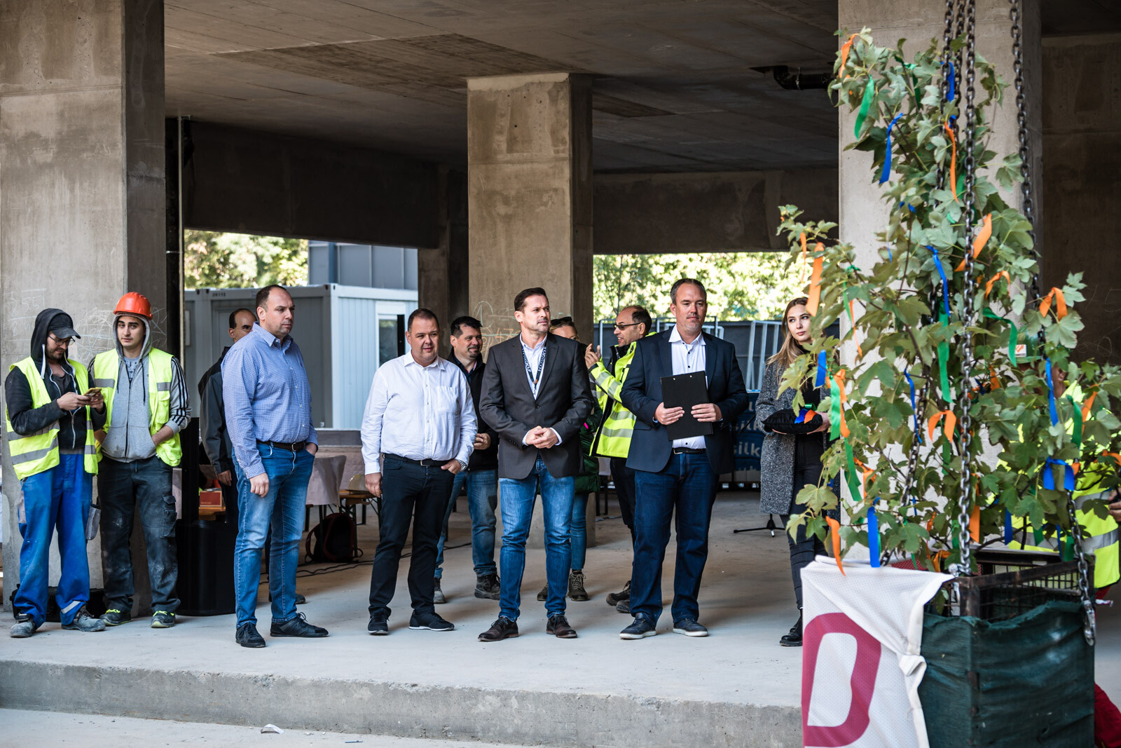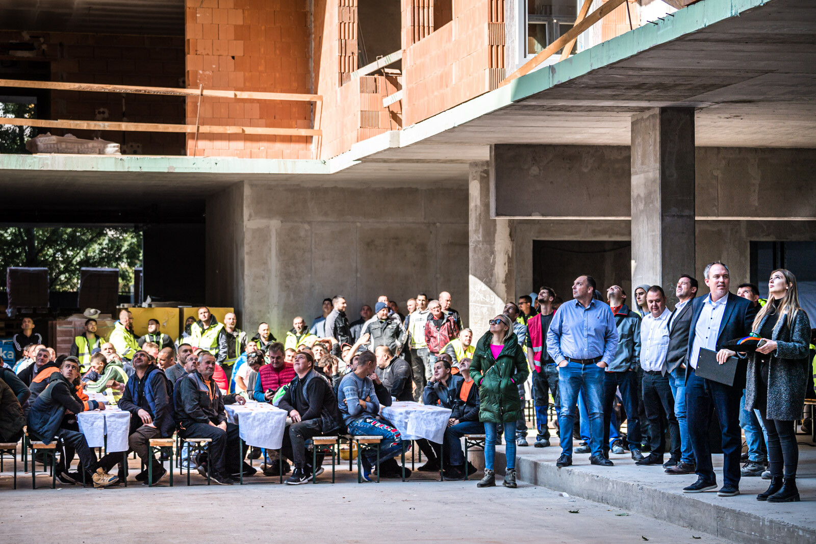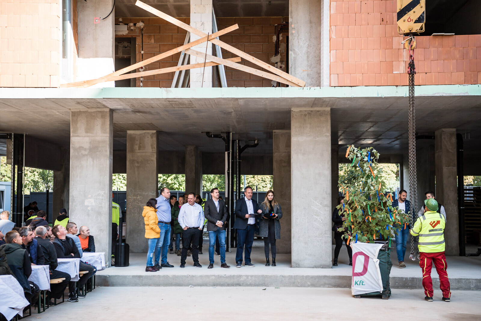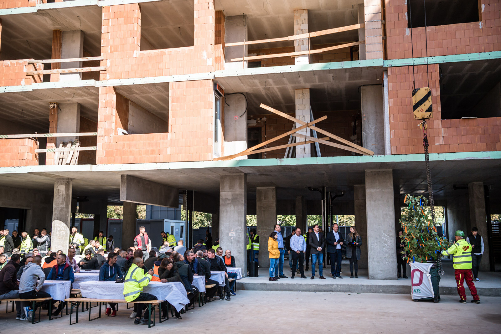 Az építkezésen a szerkezetépítési időszakban körülbelül 90 fő dolgozott naponta, a befejező munkálatokat – vakolást, nyílászáró szerelést, tetőszigetelést, festést, burkolást stb. – pedig várhatóan körülbelül 150-170 fő végzi majd a következő időszakban.