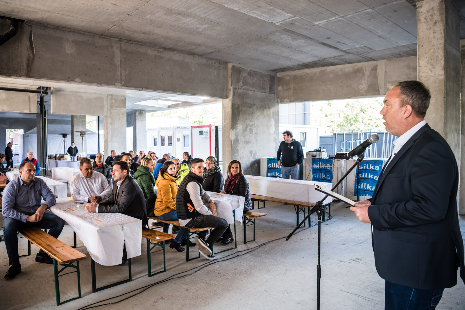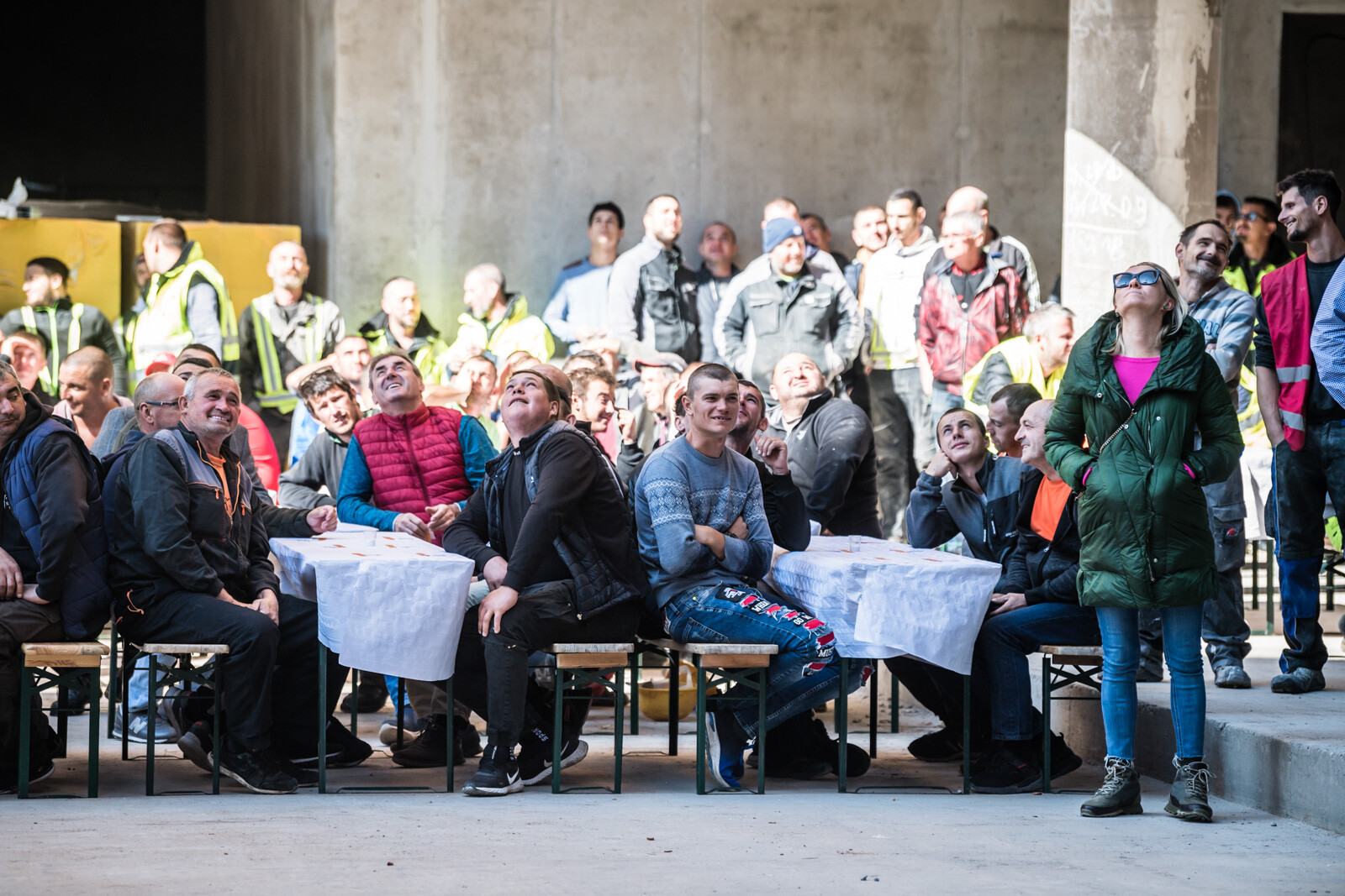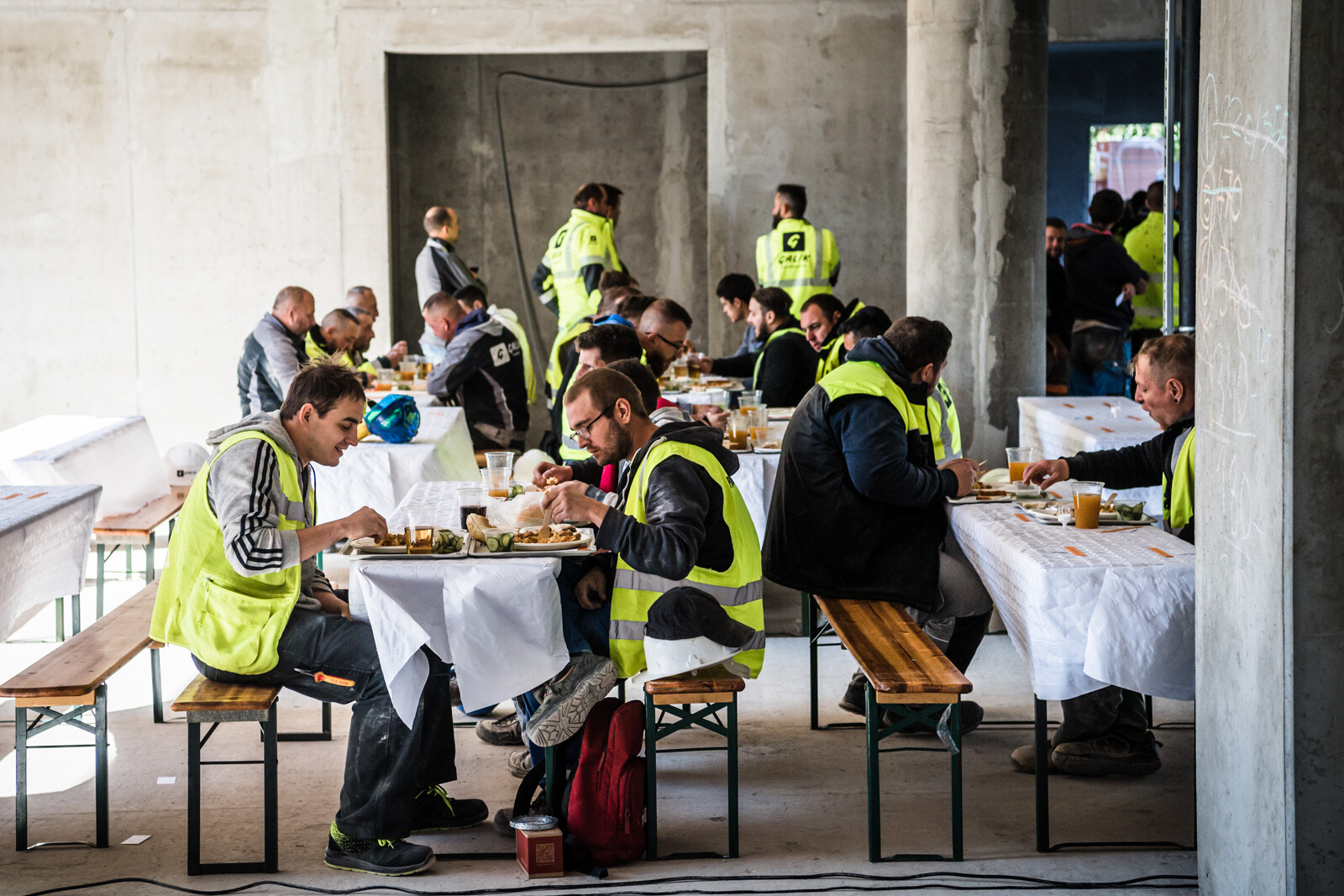 Az építkezésen a szerkezetépítési időszakban körülbelül 90 fő dolgozott naponta, a befejező munkálatokat – vakolást, nyílászáró szerelést, tetőszigetelést, festést, burkolást stb. – pedig várhatóan körülbelül 150-170 fő végzi majd a következő időszakban.