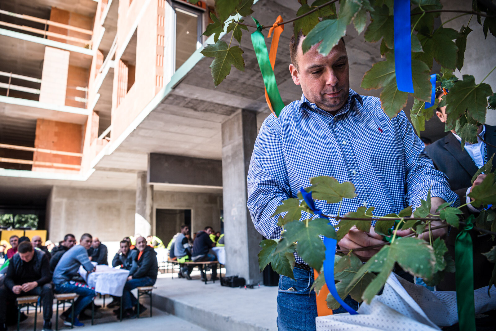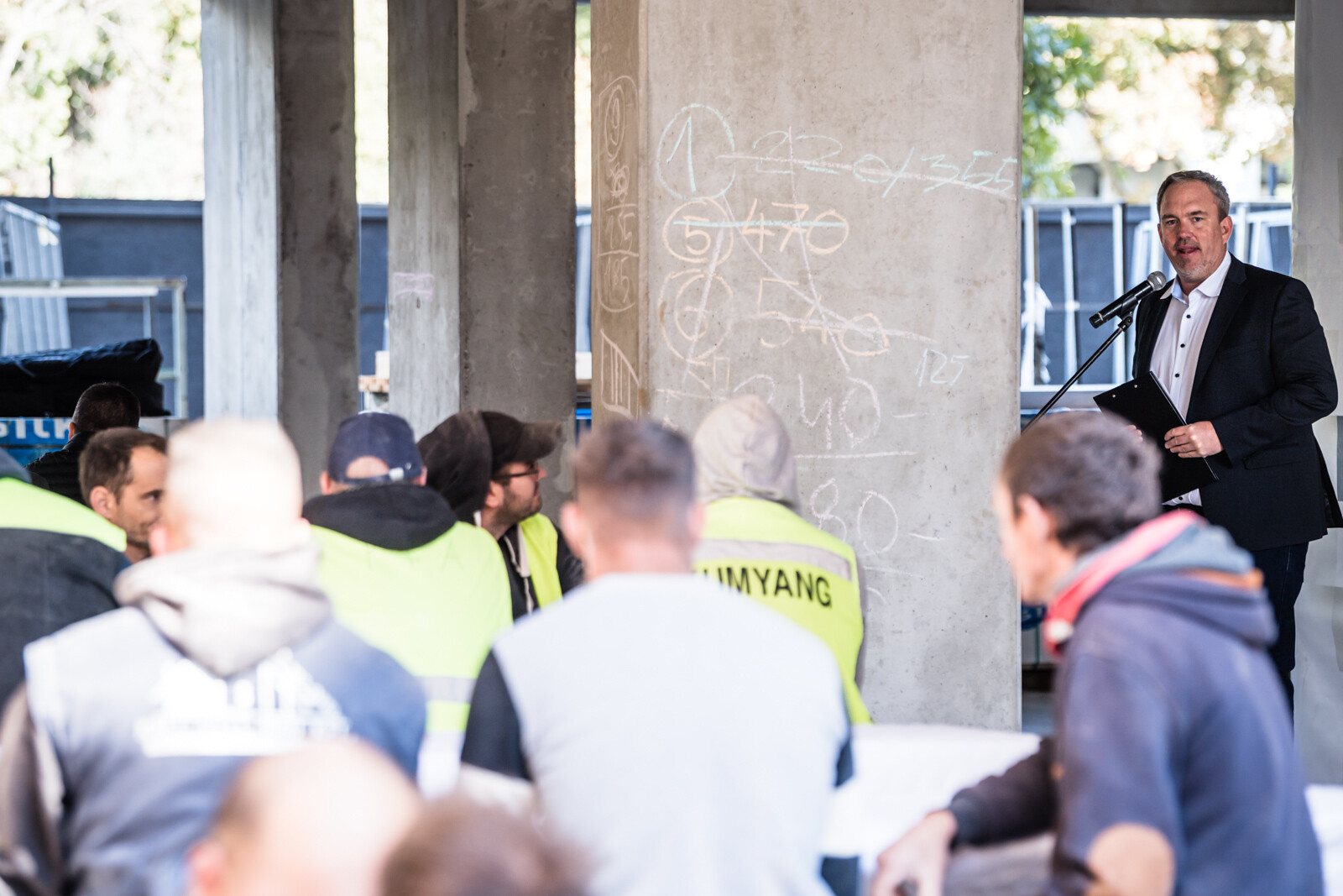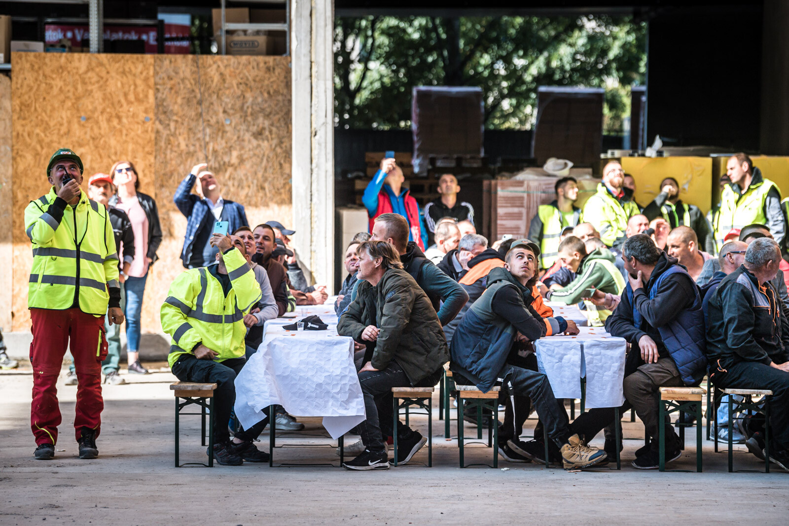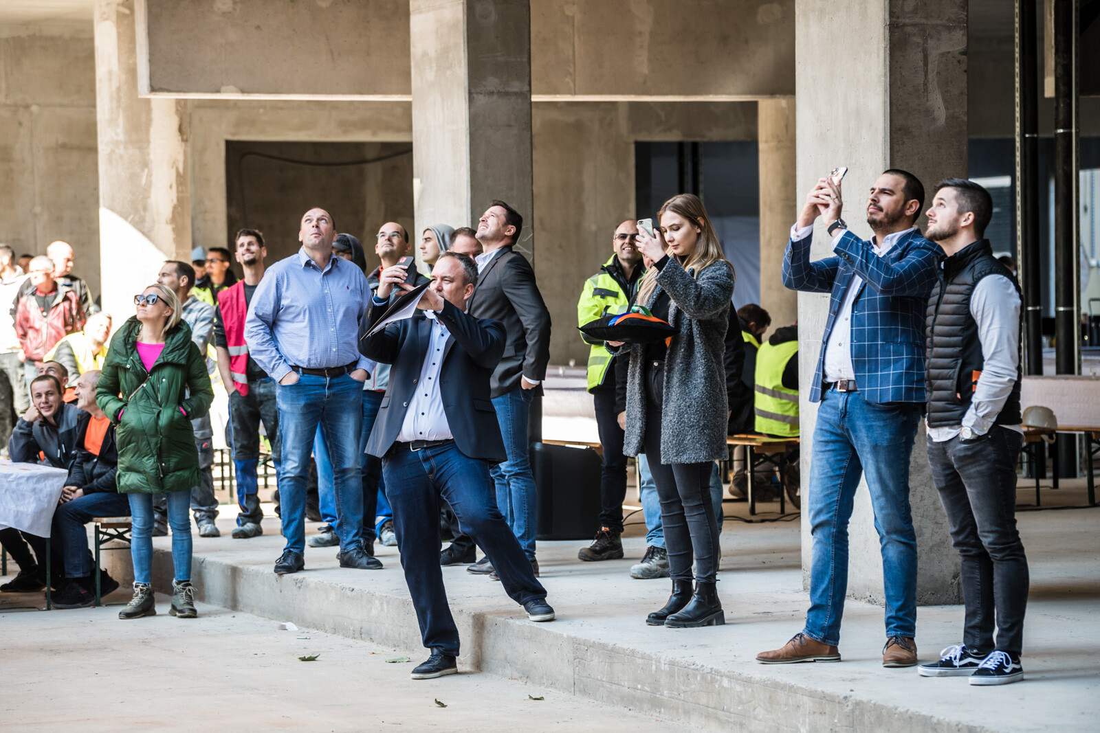 Az építkezésen a szerkezetépítési időszakban körülbelül 90 fő dolgozott naponta, a befejező munkálatokat – vakolást, nyílászáró szerelést, tetőszigetelést, festést, burkolást stb. – pedig várhatóan körülbelül 150-170 fő végzi majd a következő időszakban.
