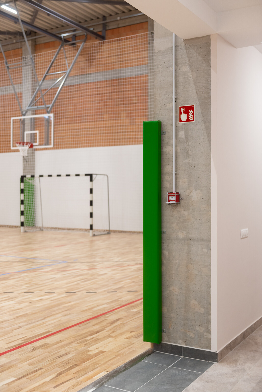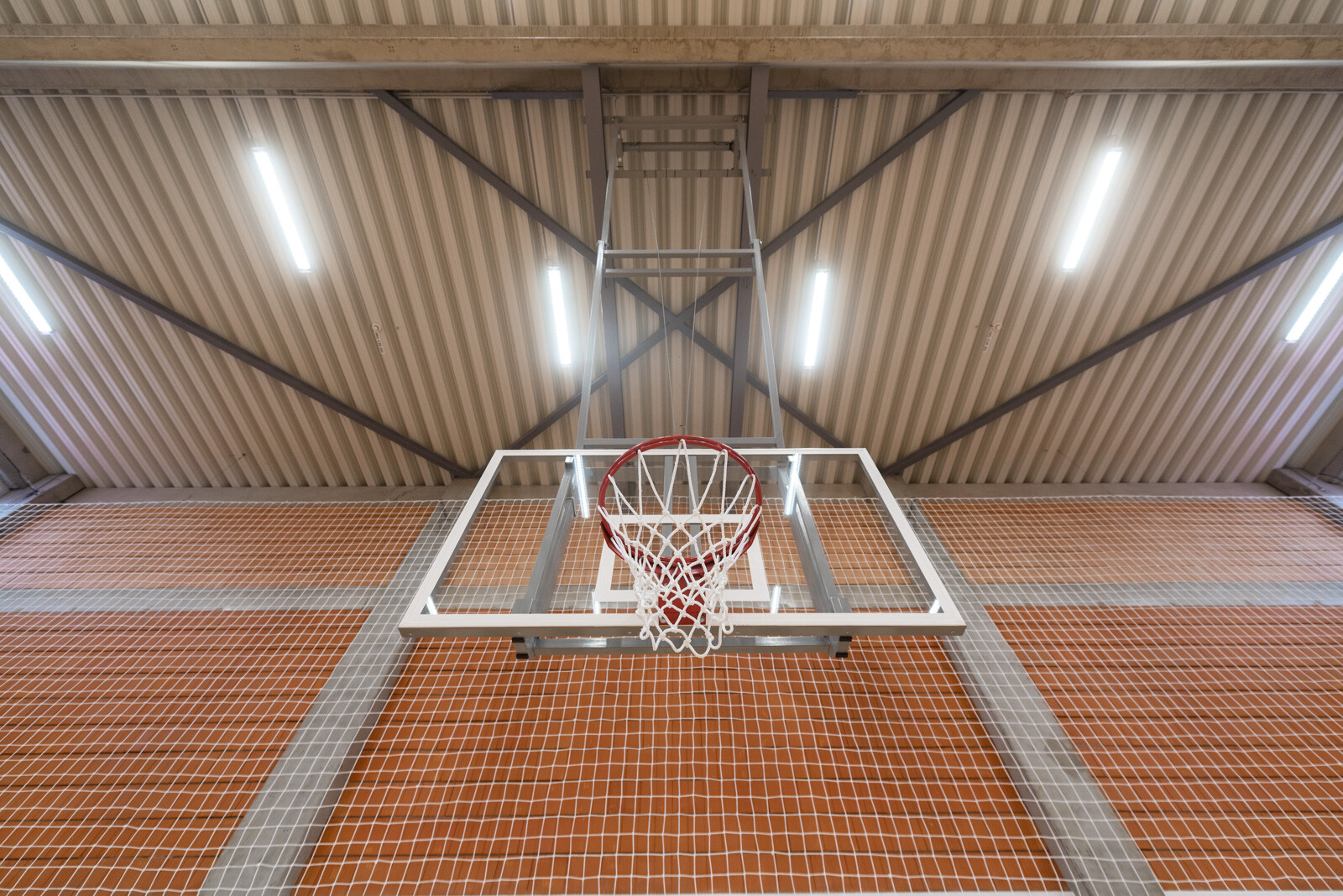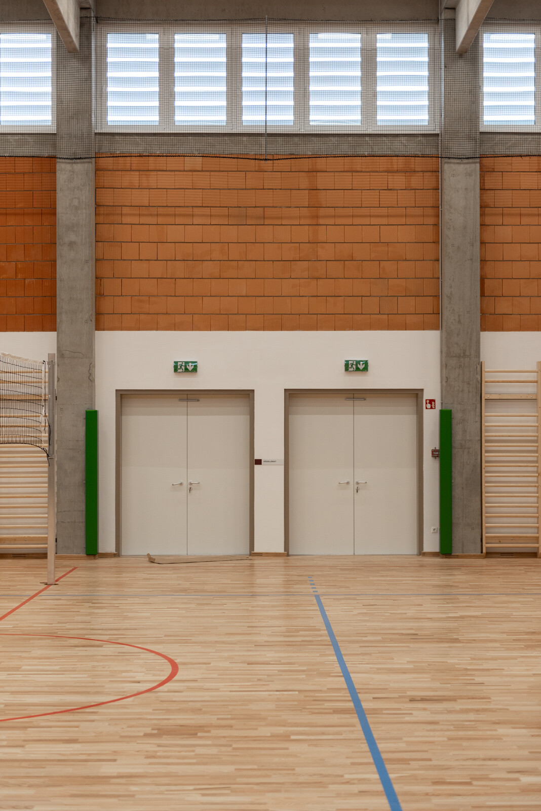 Az épület egy 7 méter szabad belmagasságú, 15x30 méteres küzdő részből, egy 450 négyzetméteres sportpadlóból, és a hozzá tartozó földszintes kiszolgáló blokkból áll. A tornatermi folyósó jobb oldaláról a tornaterem közelíthető meg, a folyosó bal oldalán pedig az öltözők, és a hozzájuk tartozó vizesblokkok találhatóak meg. Az épületben egyéb kiszolgáló helyiségeket is kialakítottak, ezek között szerepel egy 60 négyzetméteres szertár, elsősegélynyújtó helyiség, mindemellett a sportcsarnok egy a folyosó végén elhelyezett fitness szobával is rendelkezik.