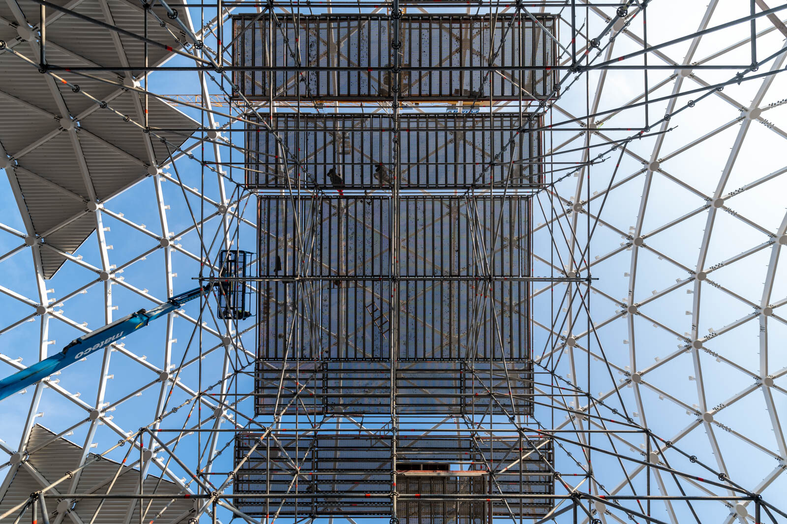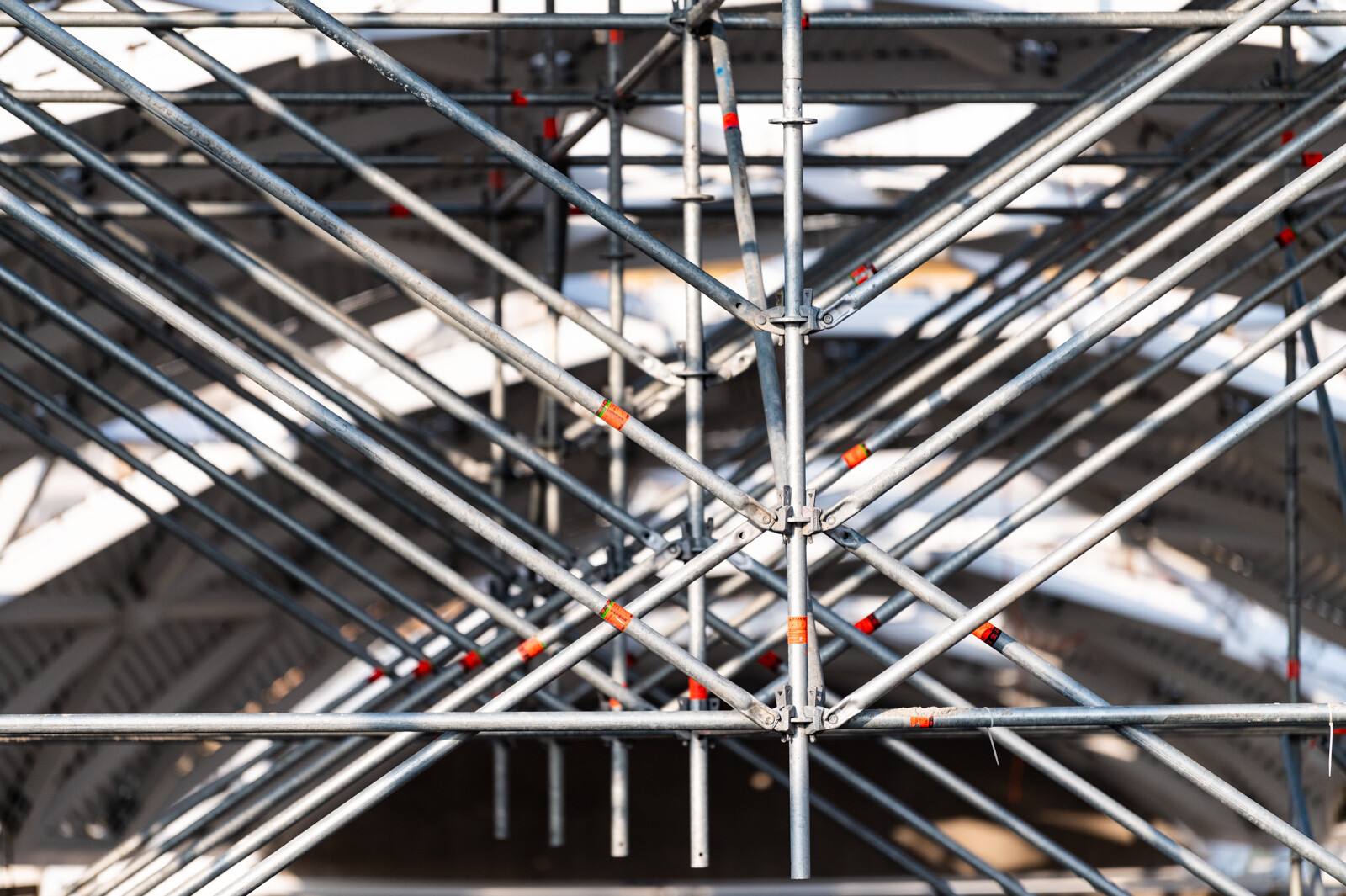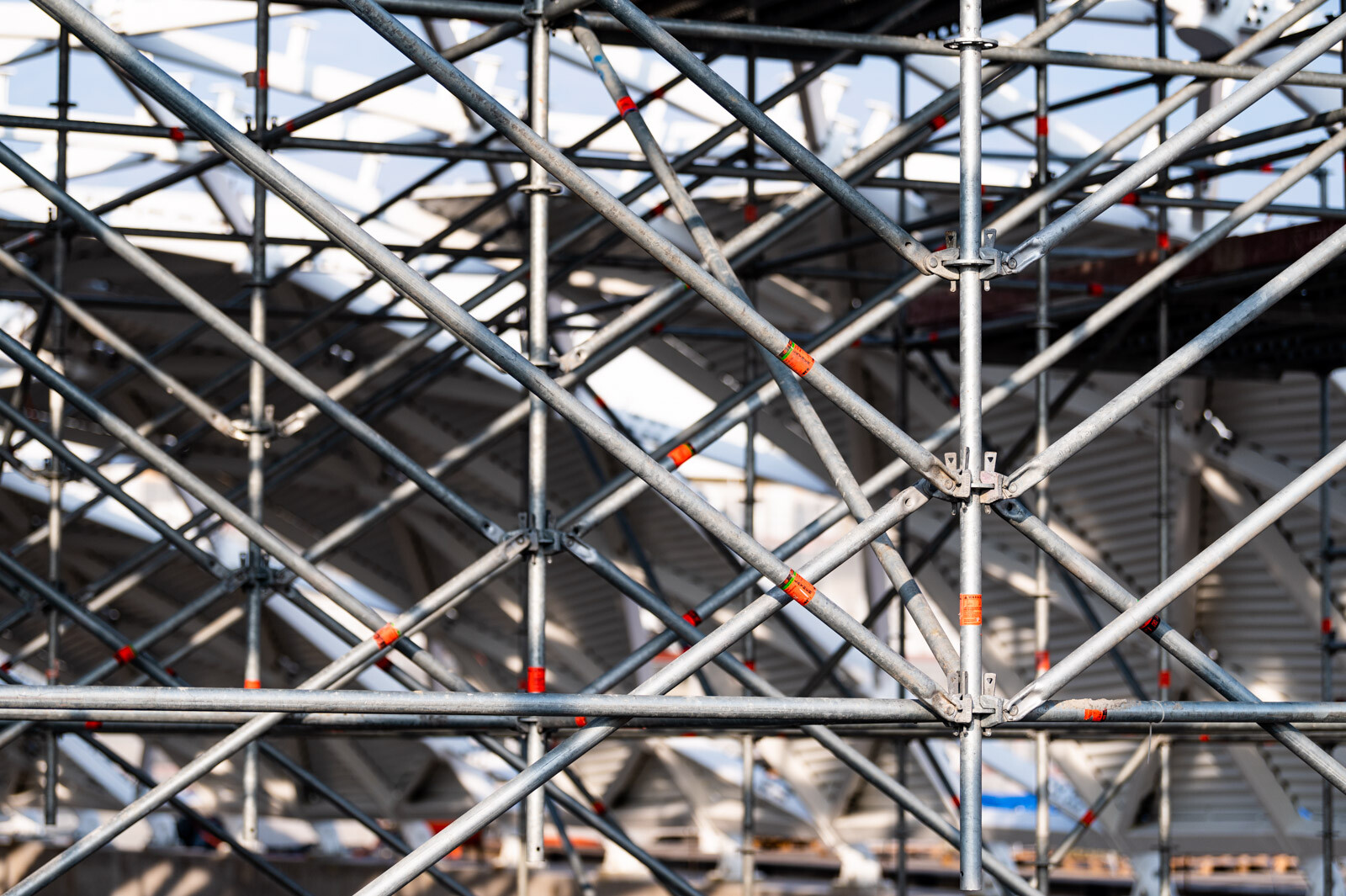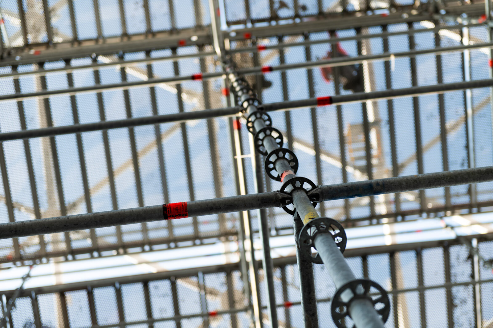 A még nagyobb biztonság és teherbírás érdekében acél járólapokat alkalmaztak, valamint az állványzatra való feljutást létrás feljárók biztosítják. A szakemberek átlós merevítőket használtak az áthidalások kialakításához, mellyel elkerülhető a rácsos tartók használata.