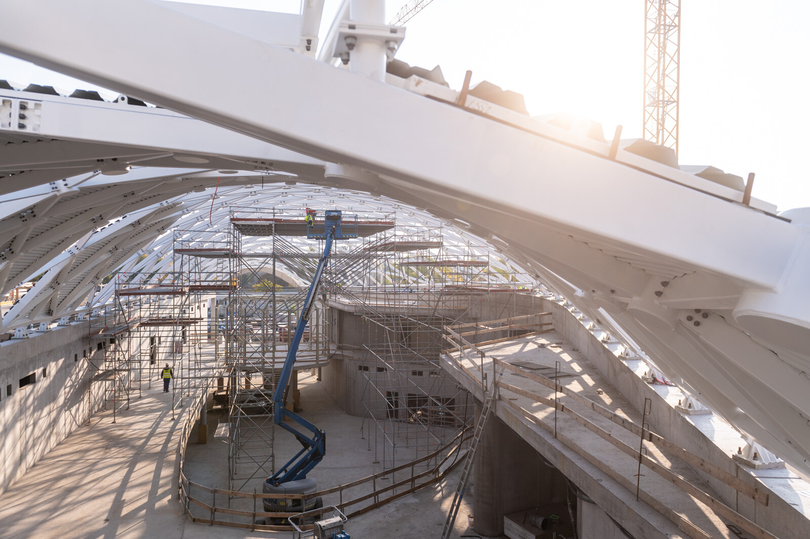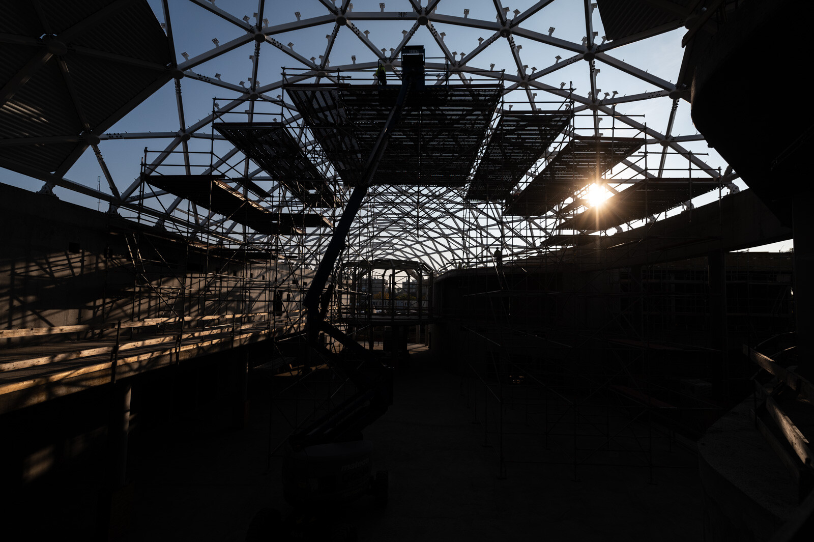 A munkaszinteket úgy alakították ki, hogy azok szélessége komfortos legyen a rajta dolgozó szakemberek számára, ennek megfelelően 2,5 és 3 méter szélességű munkaterületek születtek. A munkaszinteken háromsoros oldalvédelmet alakítottak ki, amely szintén igazodott az acélszerkezet geometriájához.