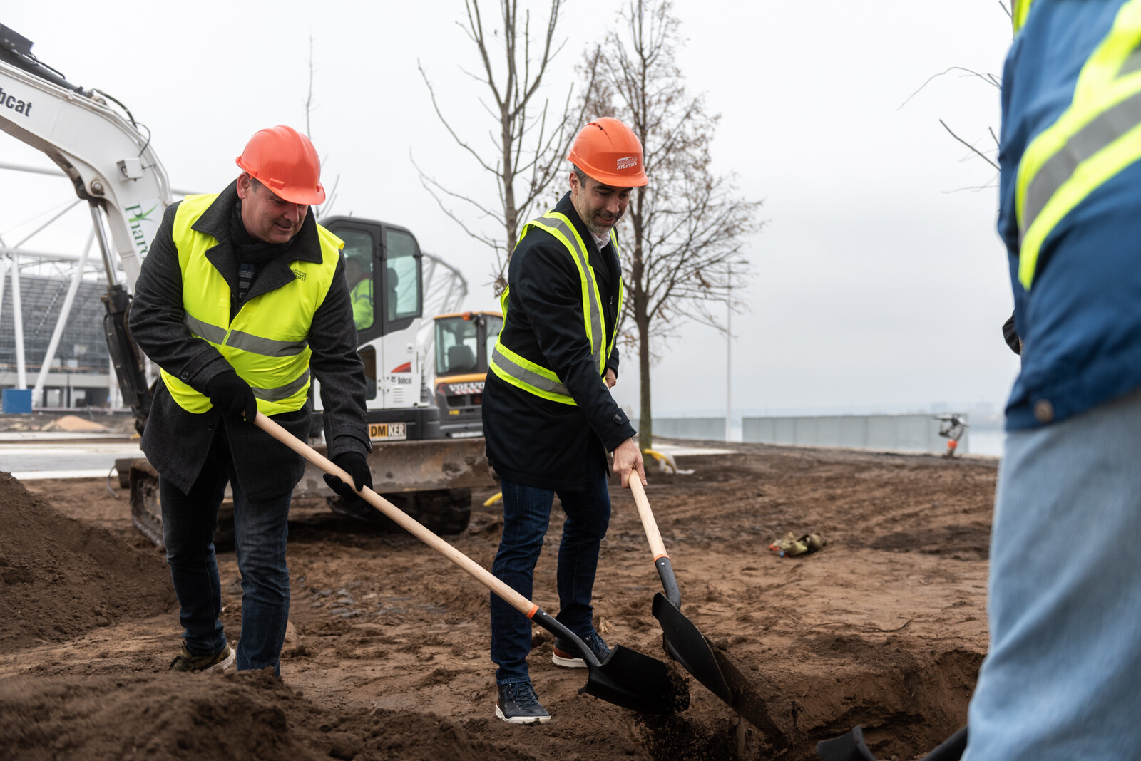 Hozzátette: „A létesítmény megépítésével új életet szeretnénk adni ennek a korábban ipari célokra használt területnek. A faültetés szimbolikus és konkrét jelentésével is ezt az újjászületést kívánjuk hangsúlyozni. Szeretnénk, ha a környéken élők és az idelátogatók maguknak éreznék az aréna környezetében létrehozott sportligetet és rendszeresen használnák sportolás céljából.”