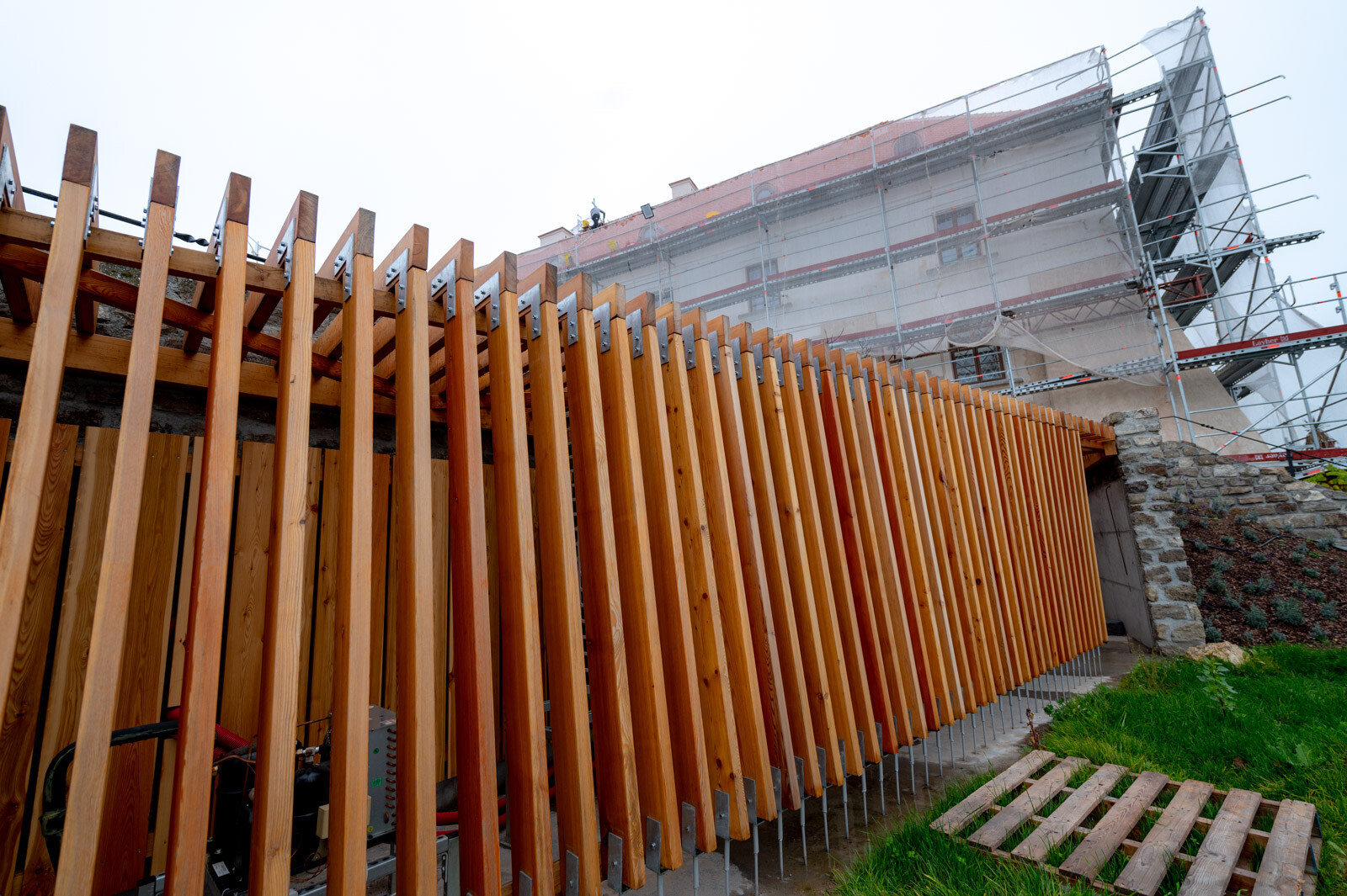„A kiépített lamellás előtétfalak a modern kialakítás mellett, dekoratív, de nem hivalkodó látszatot keltenek. A kivitelezés során a födémszerkezet teljes feltárása és ezt követő szigetelése is megtörtént, orvosolva ezzel a korábbi beázásokból eredő problémákat.”
