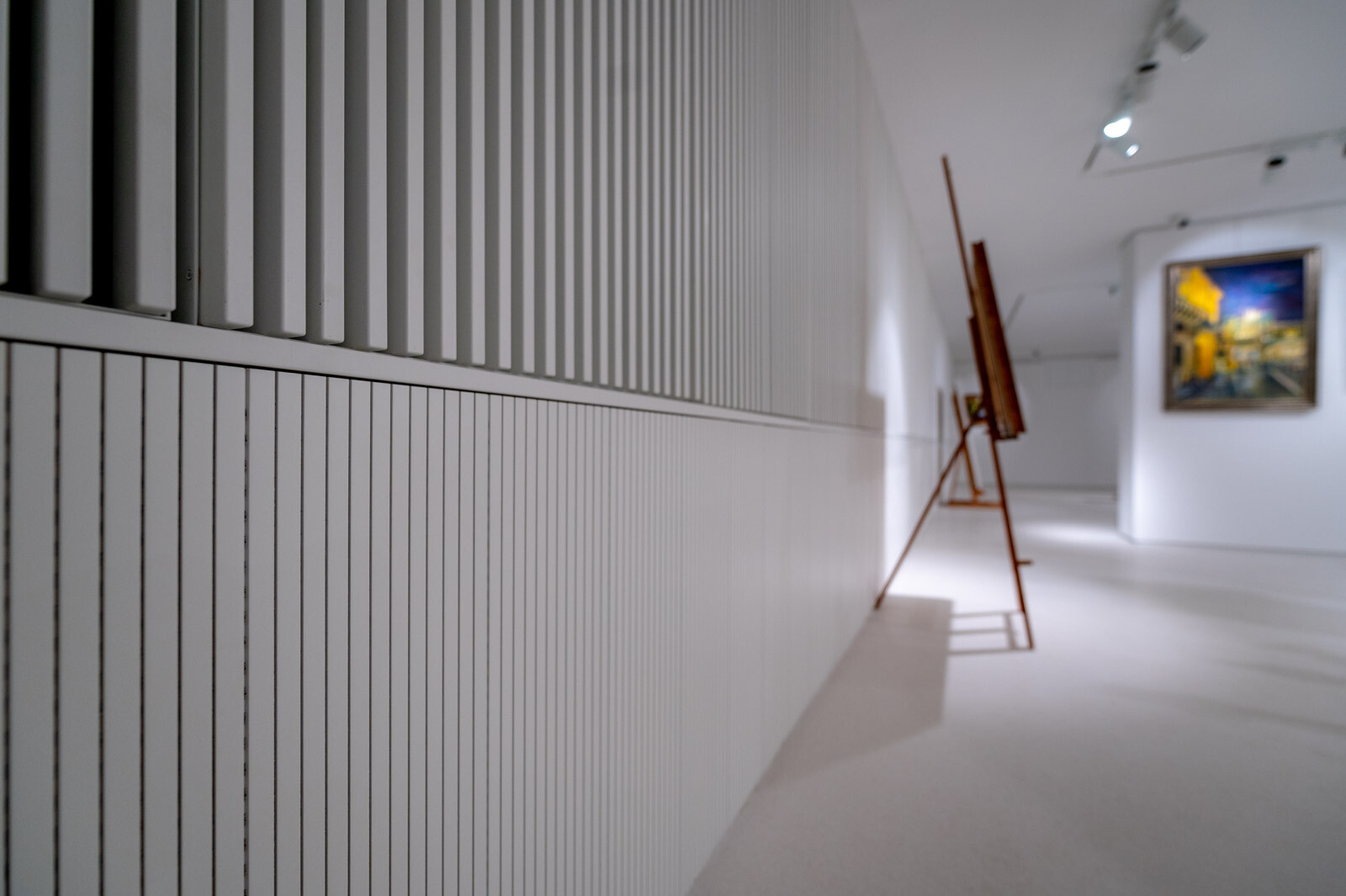 „A projekt során a változatlan, 300 négyzetméteres alapterületet úgy használtuk fel, hogy a leendőbeli kiállítások átláthatóbb terekben összpontosuljanak. Ennek elérése érdekében egyes válaszfalakat kiváltva, szénszálas műanyag elemeket helyeztünk el, ahol ez statikailag megengedett volt”