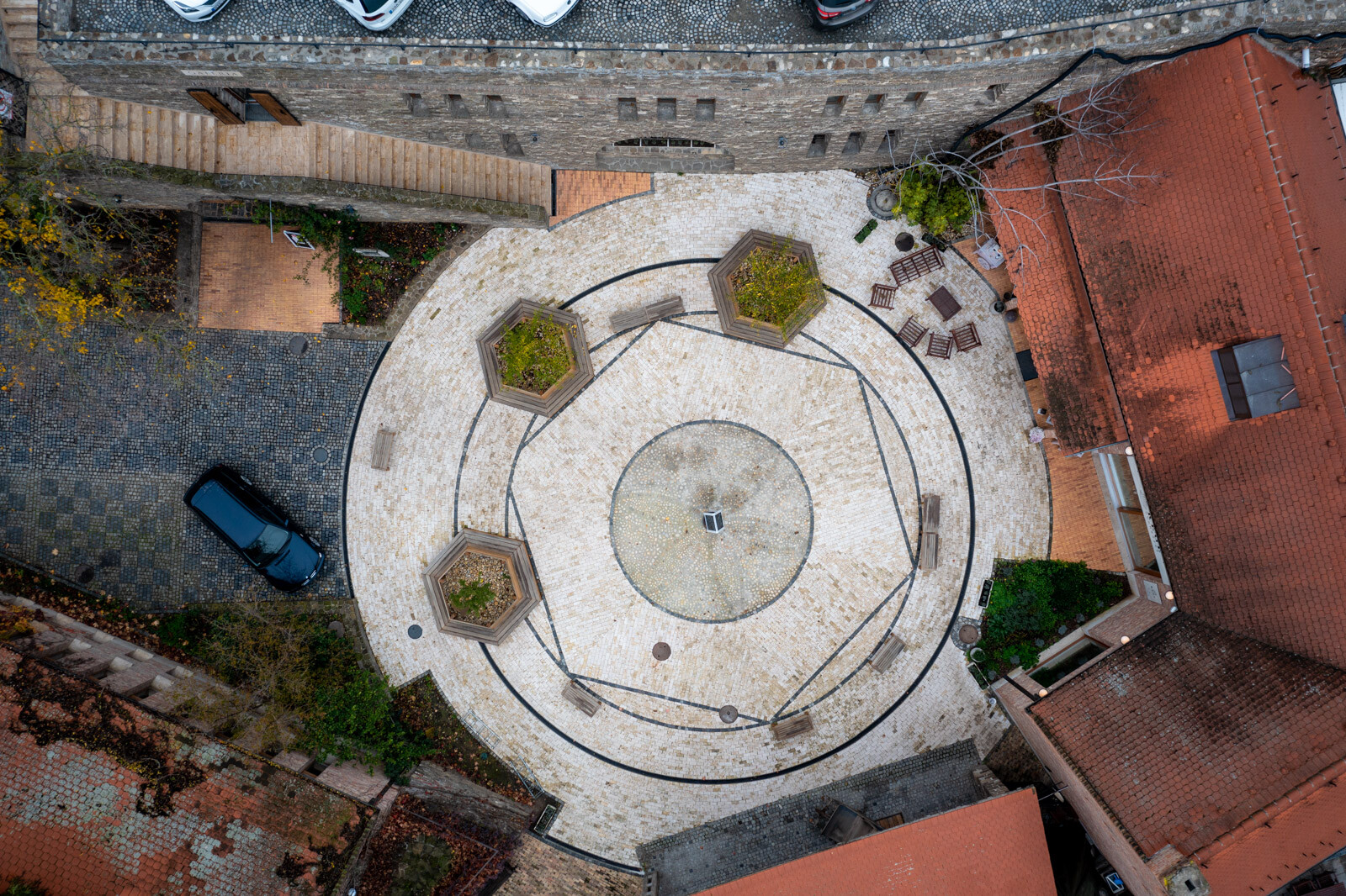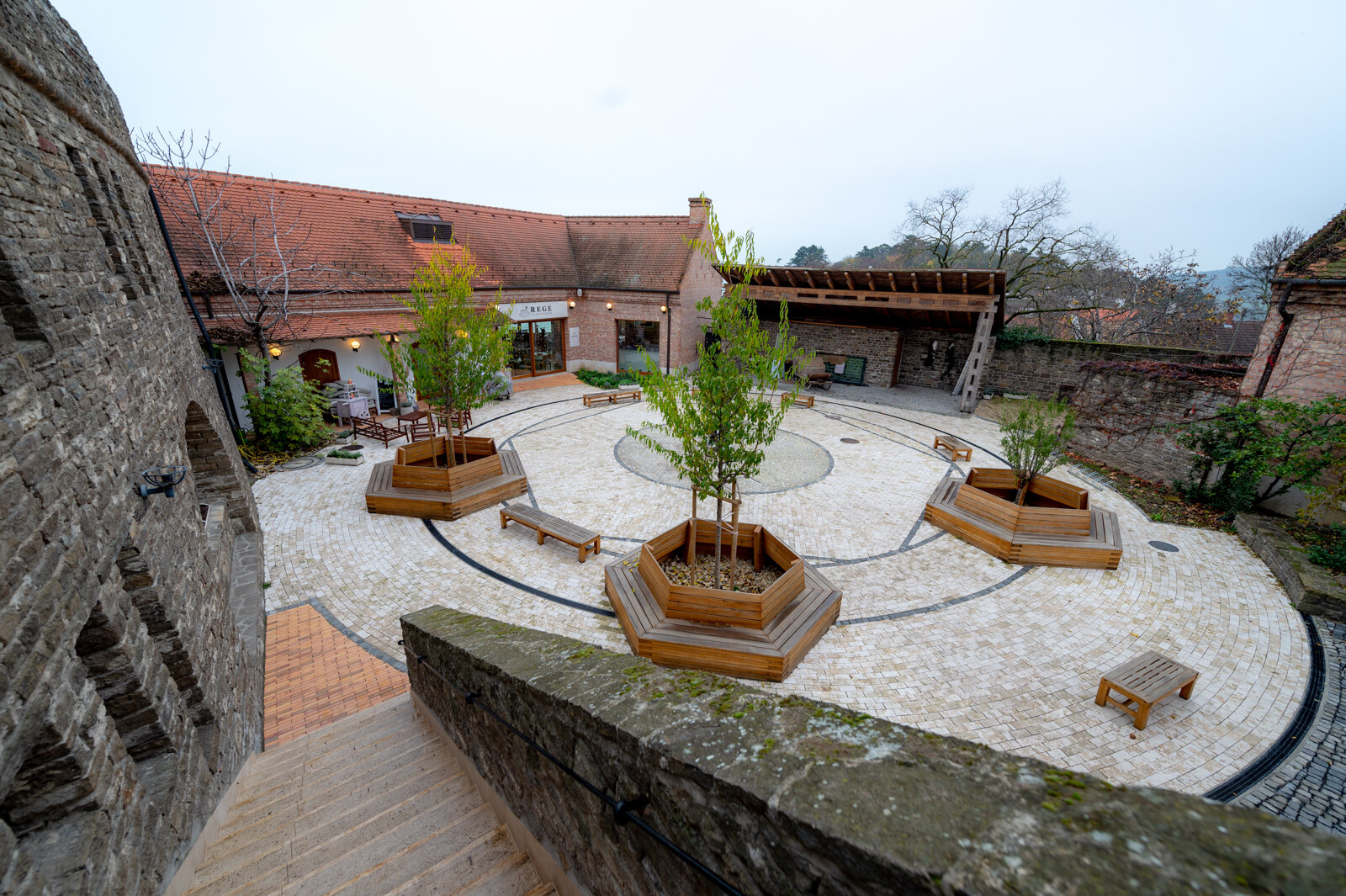 „A quadrum felújításánál szintén fontos szempont volt a tájegységi anyagok felhasználása, így a magaságyások fedköveit a környék mészkőbányáiból termelték ki és gyártották le”