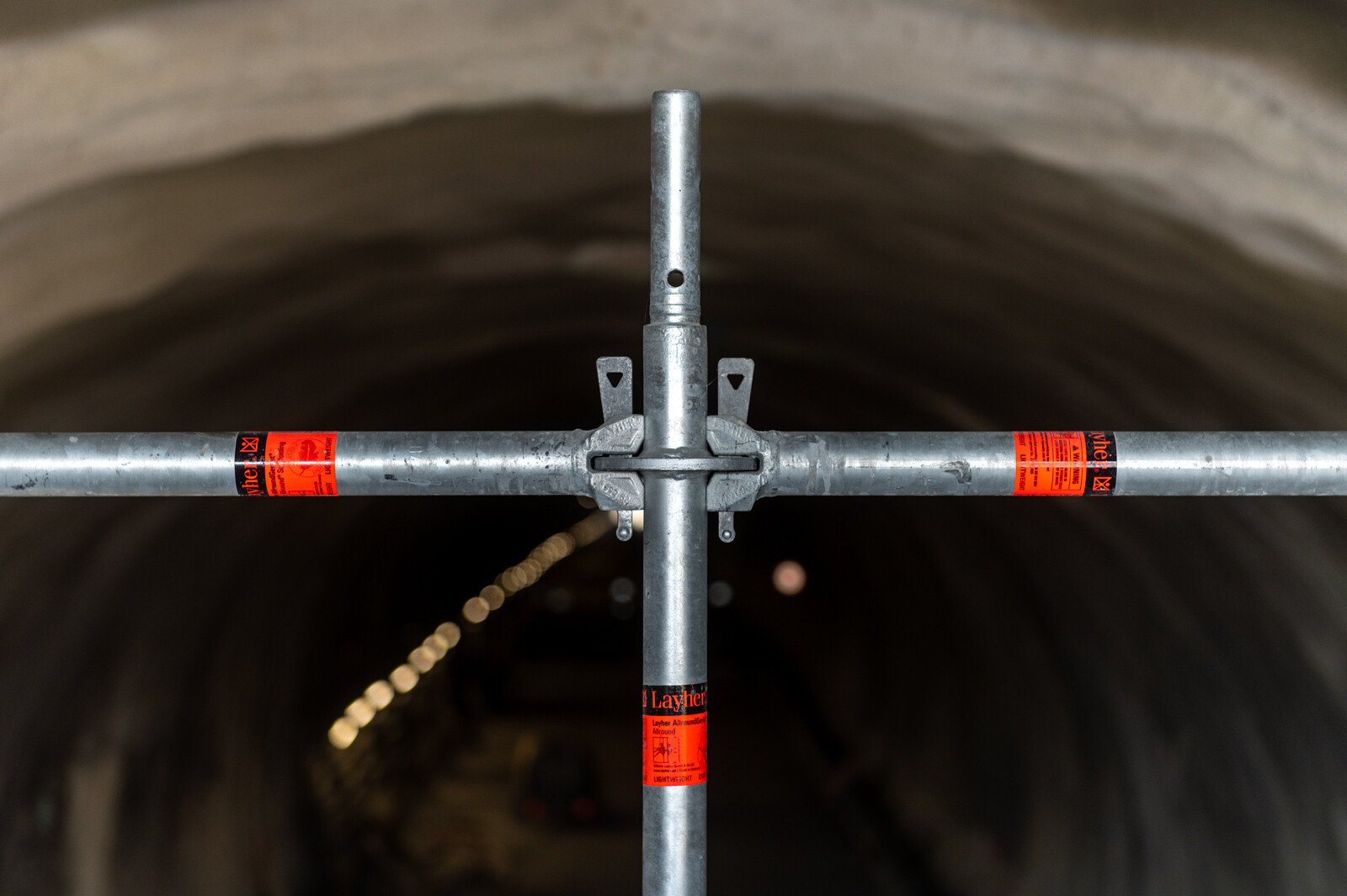 A Layher Allround állványrendszer elemeiből épült, kerekeken gördíthető állványszerkezet kiválóan alkalmas az alagút építéséhez szükséges kivitelezési munkálatok támogatására. A moduláris Allround állványrendszer segítségével szinte bármi felépíthető. Ez a gurítható szerkezet nemzetközi viszonylatban már jól bevált, gyakran alkalmazott konstrukció alagutak építéséhez, rekonstrukciójához, hiszen a helyszíni adottságokhoz és a megrendelők, valamint a szakemberek igényeihez igazítva, kiválóan szolgálja a kivitelezési munkákat.