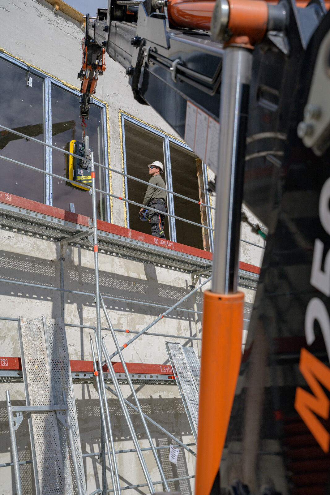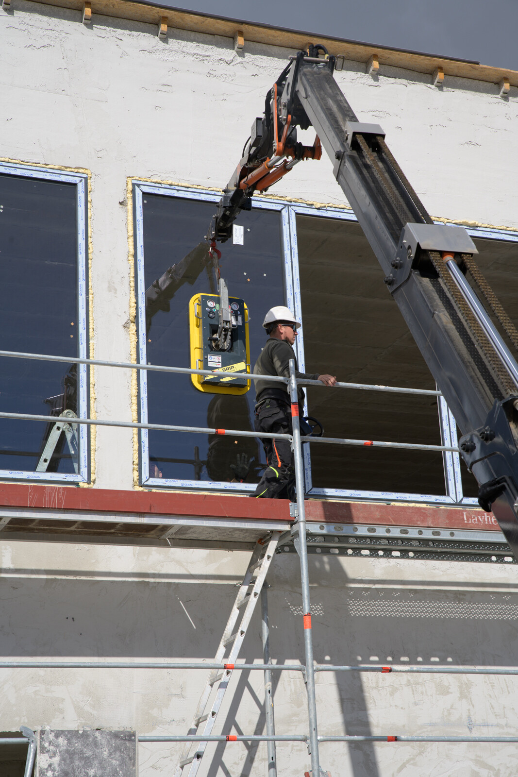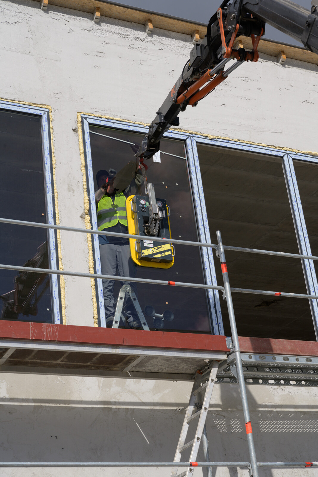 A projekt egyik különleges mozzanataként kiemelték, hogy a több száz kilogramm tömegű homlokzati üvegtáblákat centiméteres pontossággal vezérelhető üvegező géppel emelték a helyükre.