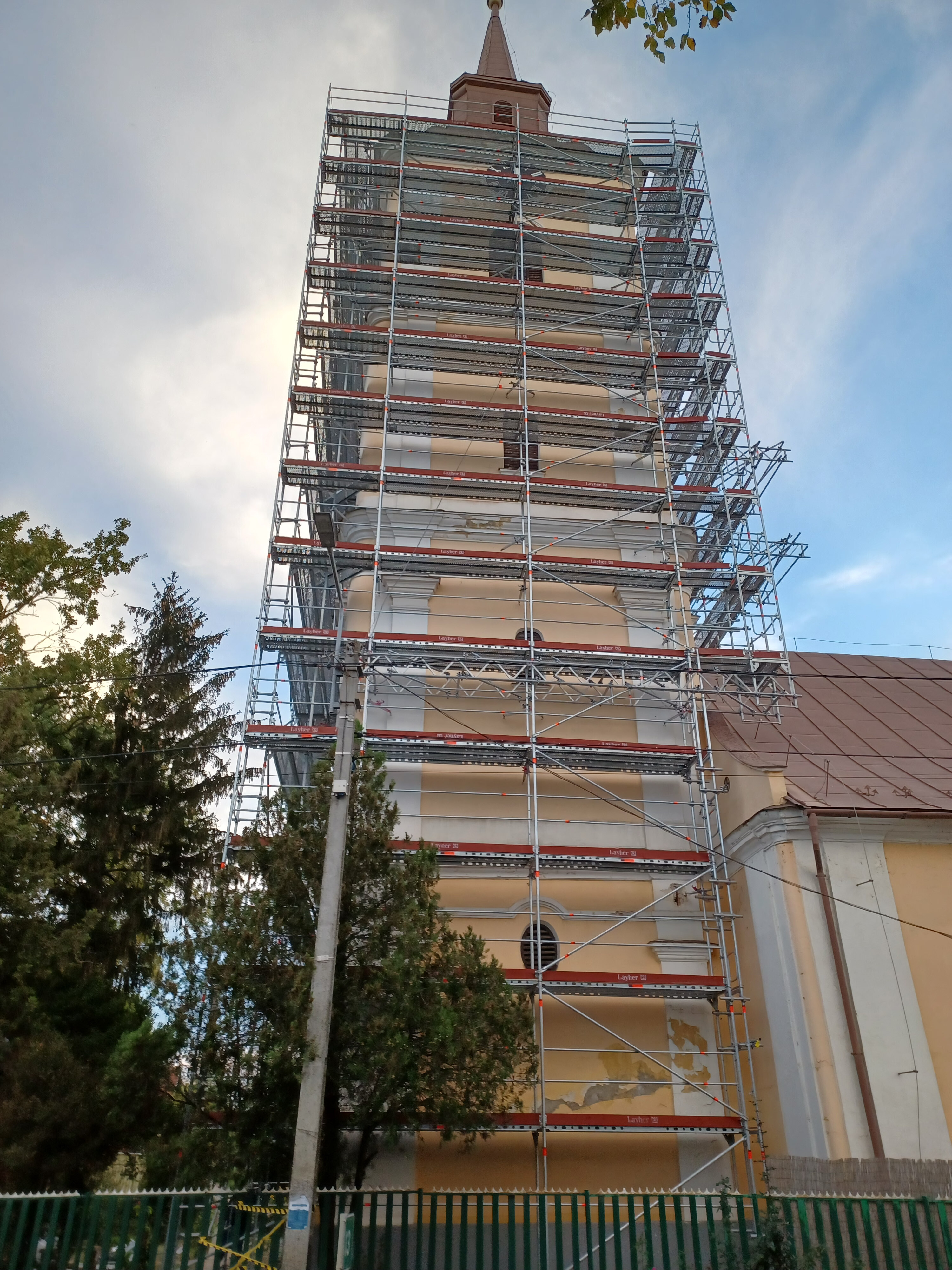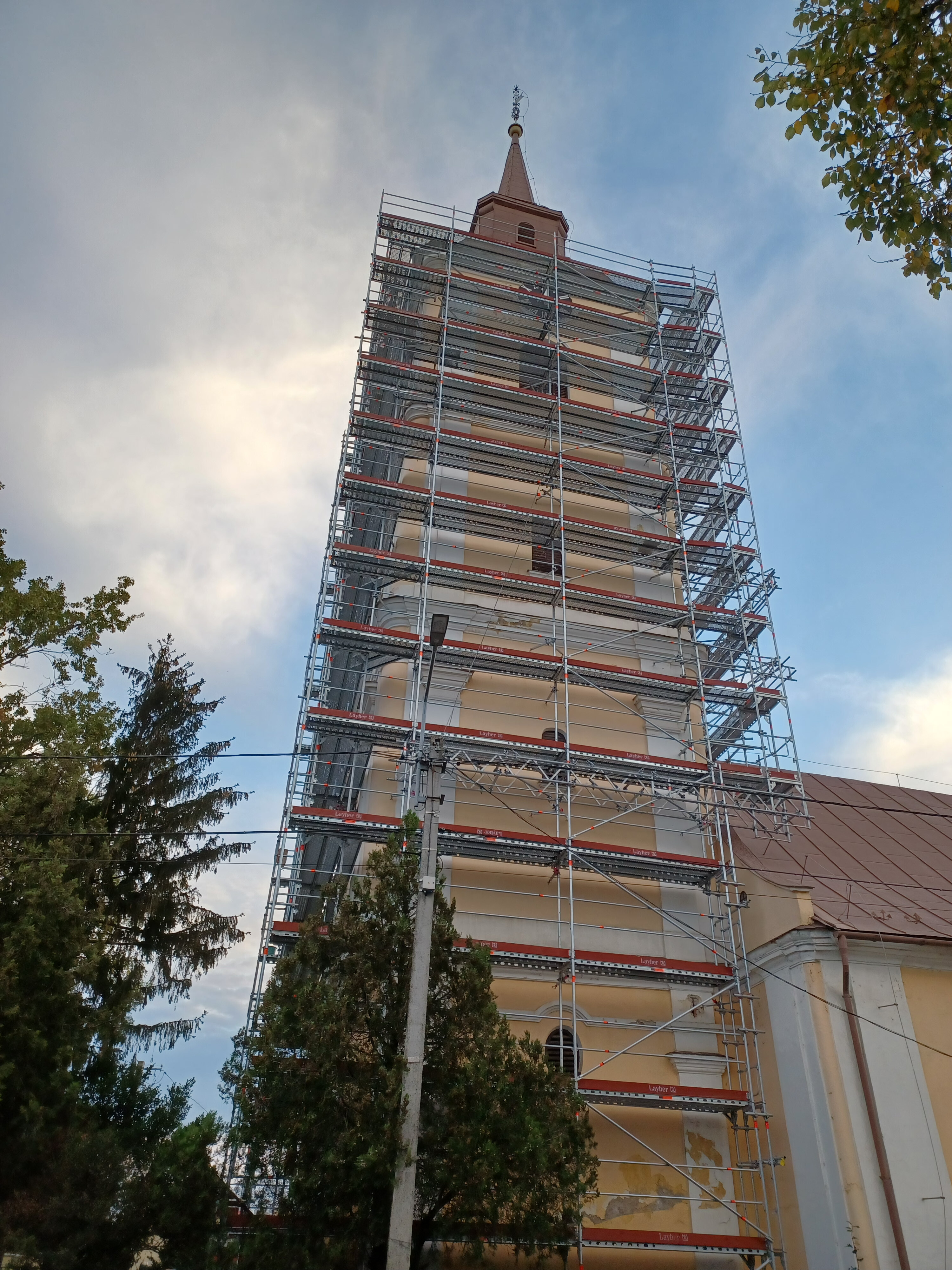 A kulturális és történelmi örökséget képviselő épület templomtornya kapott méltó felújítást, amit a Layher állványrendszerei, megoldásai és modern állványtervezési módszerei támogattak. Az állványozáshoz szükséges anyagot és építő csapatot a Szilágyi Tanácsadó Kft. biztosította. A templomfelújításoknál gyakran alkalmazzák a már jól bevált Layher megoldásokat, hiszen ilyen korhű és változatos geometriával rendelkező műemléki épületek estén biztonságos és rugalmas megoldásra van szükség. A torony homlokzati felújításához egészen az ereszmagasságig szükség volt egy megfelelő állványzatra, így