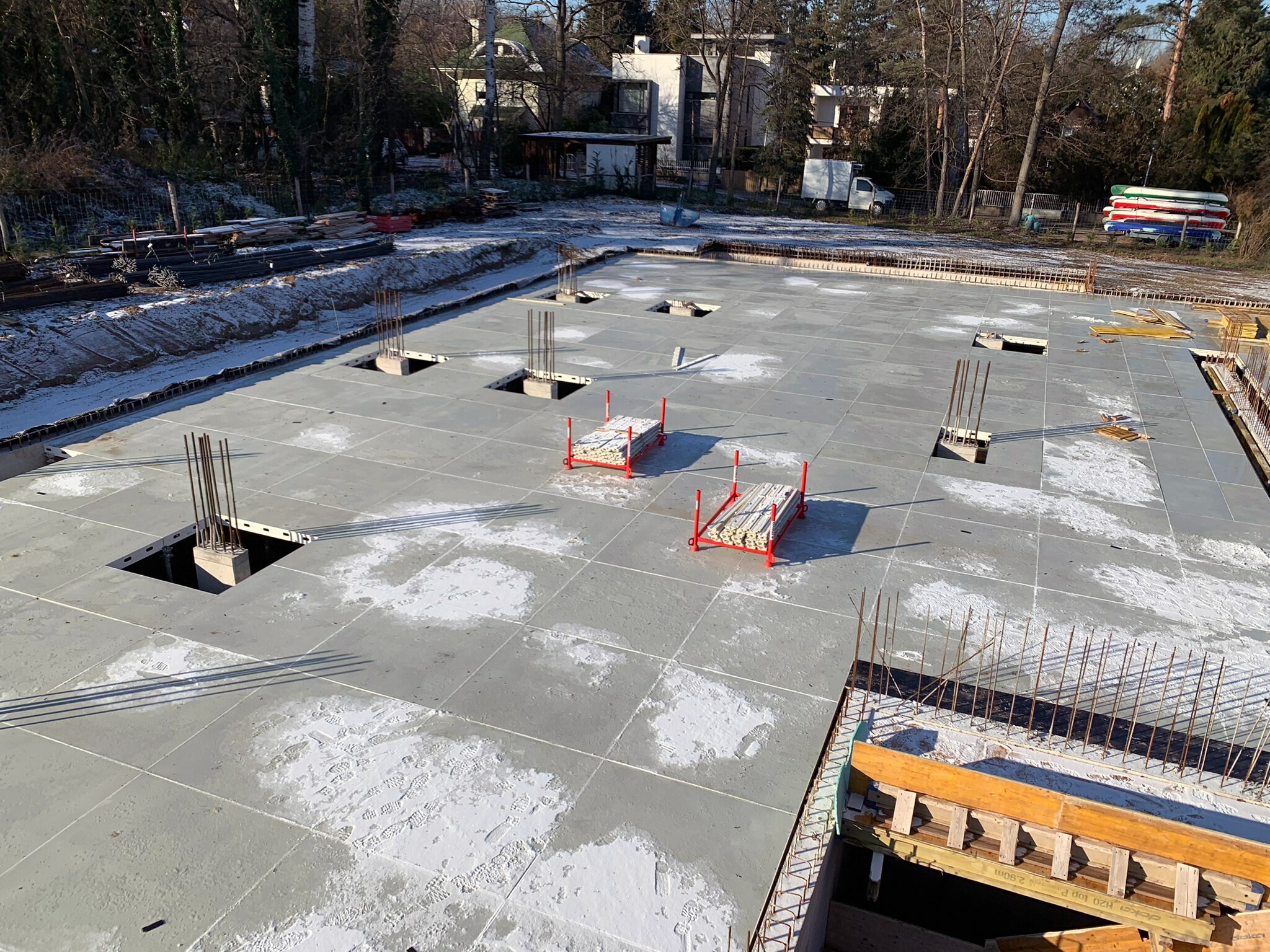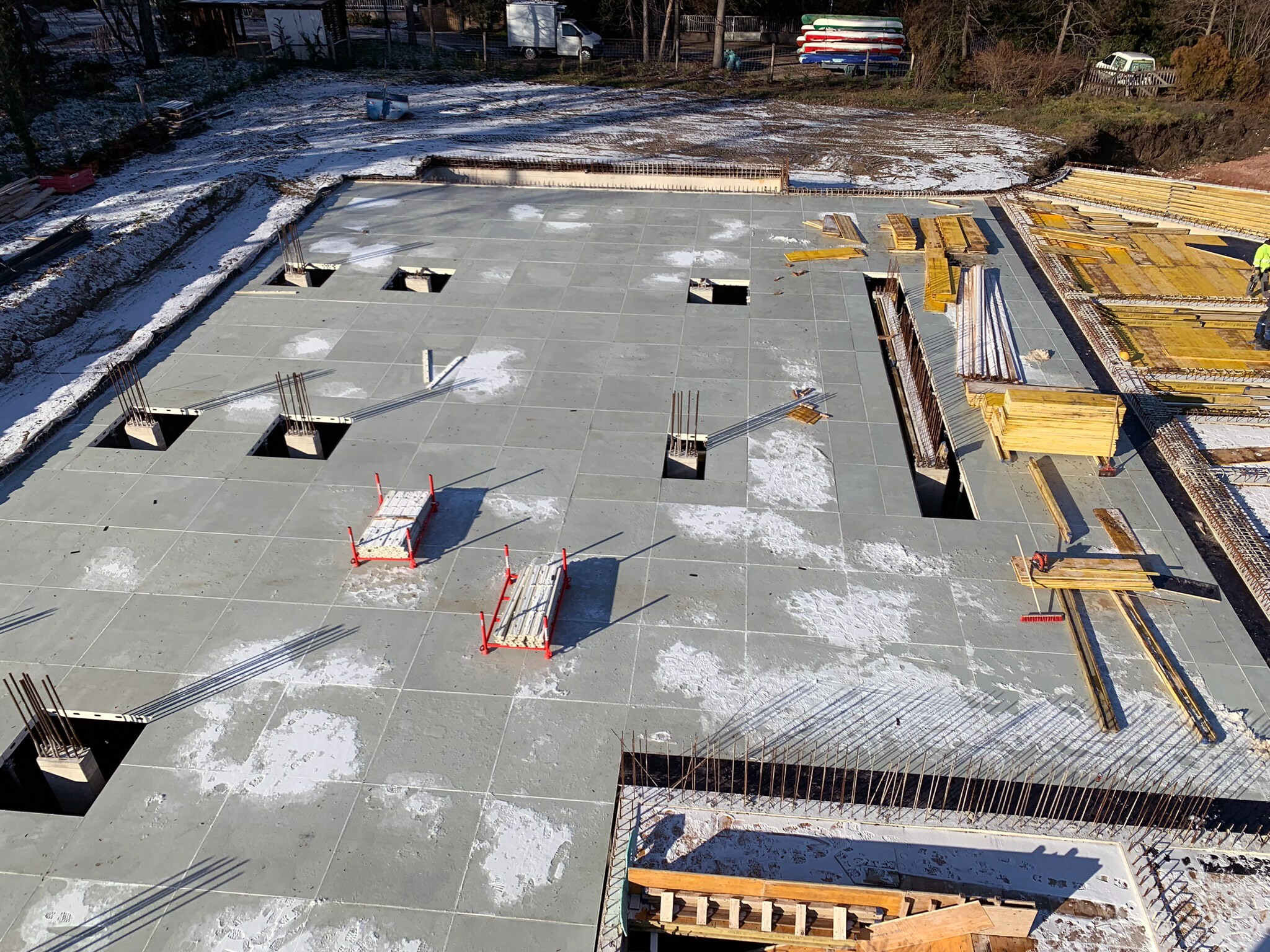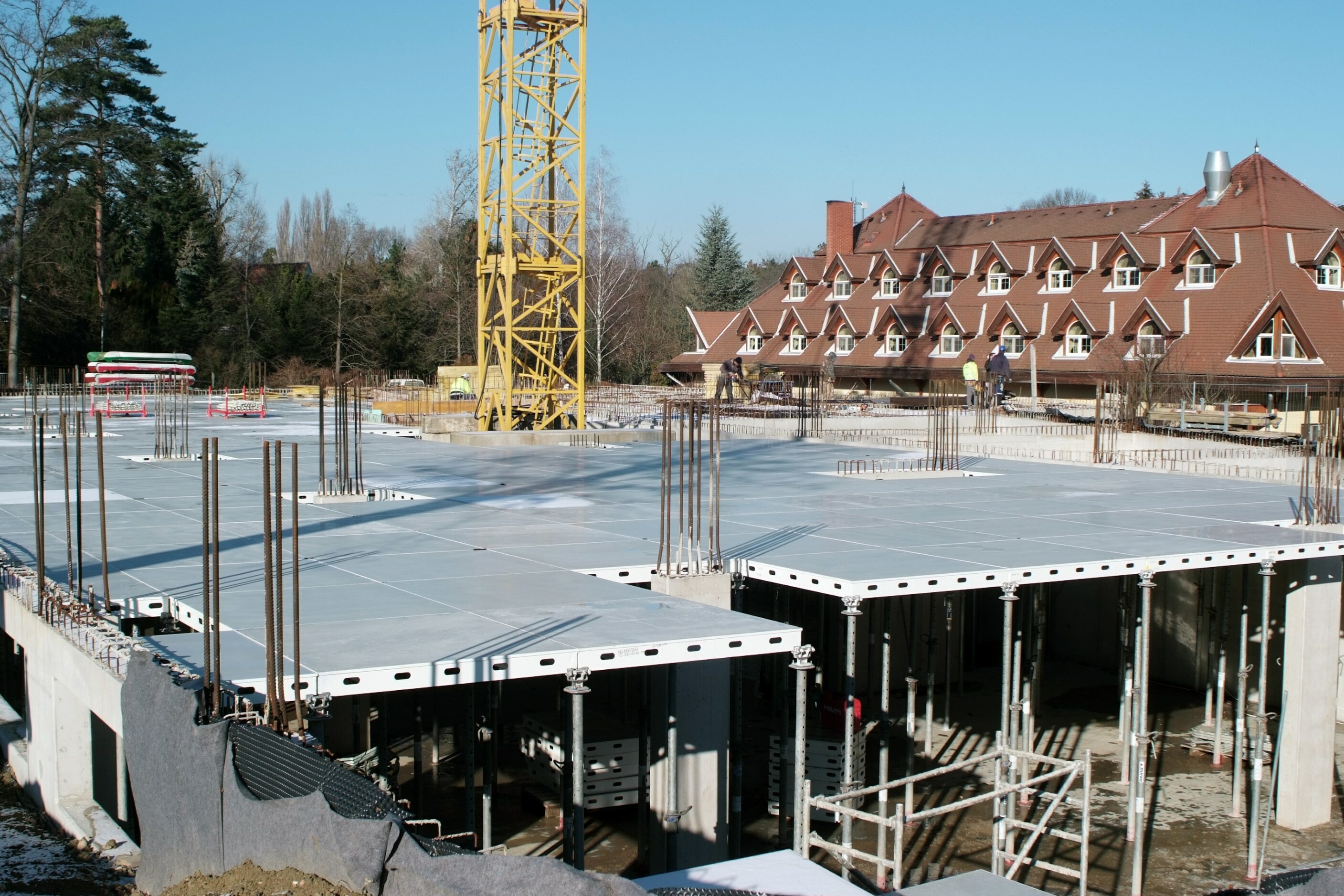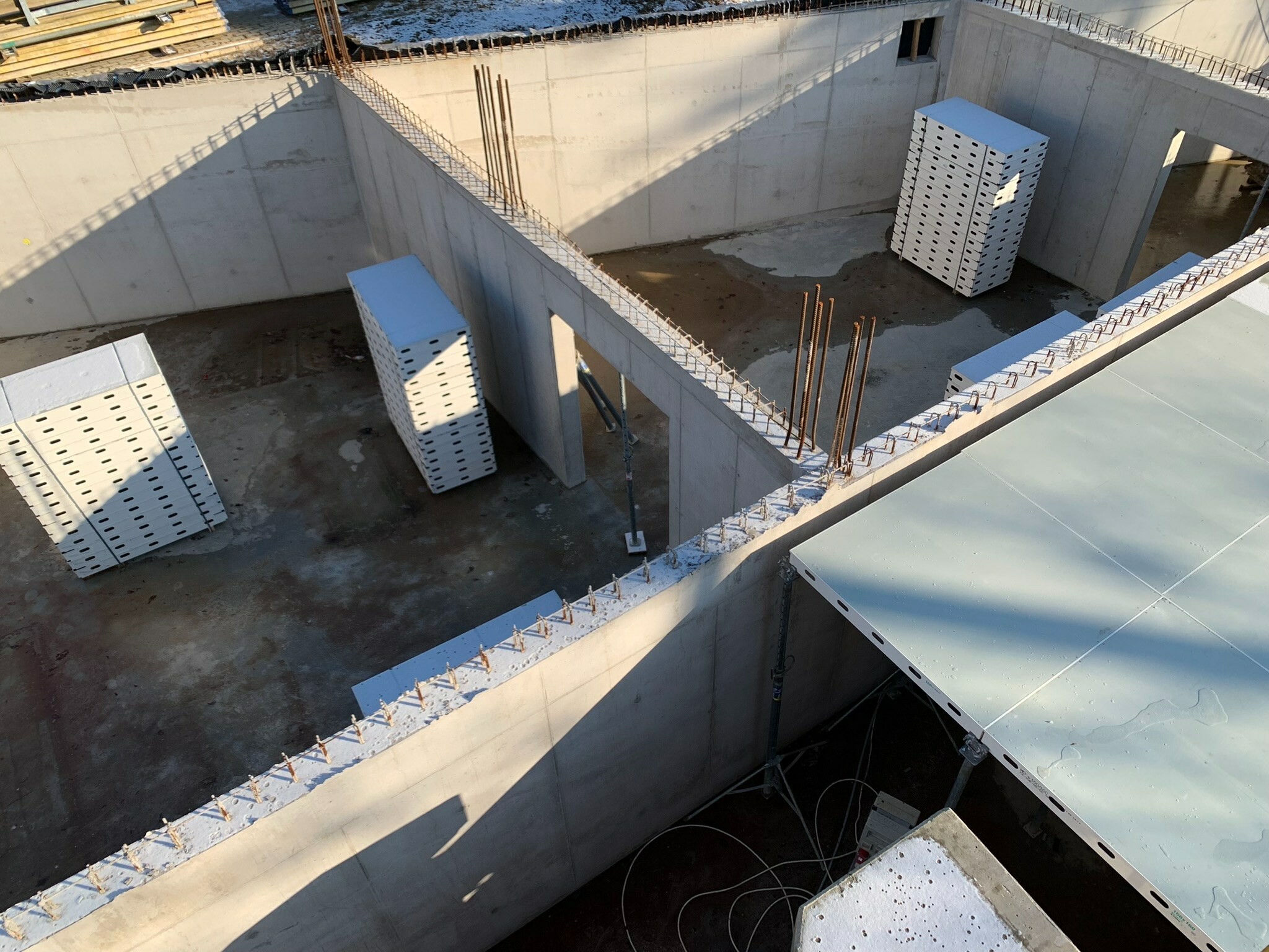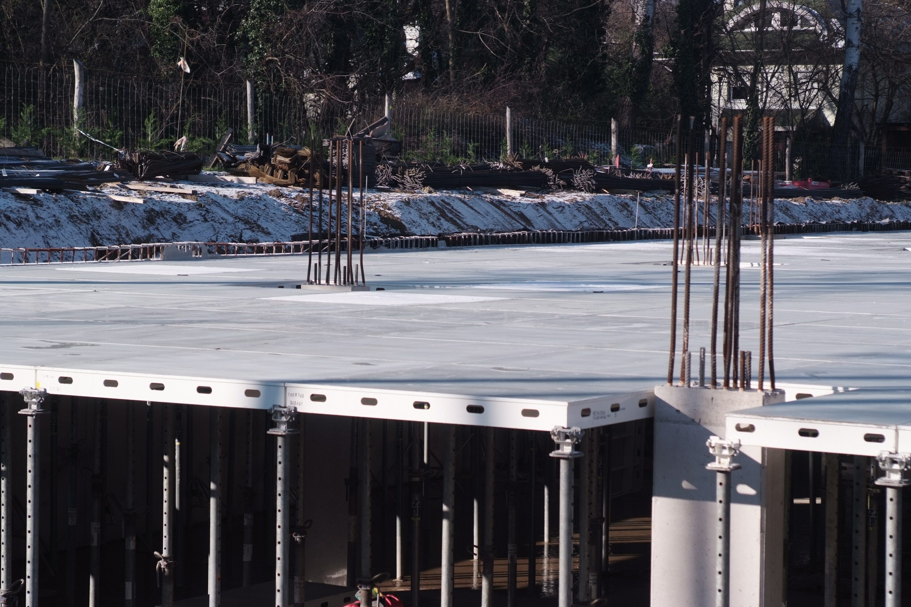 Gazgyik Szabolcstól azt is megtudtuk, hogy a födémzsaluzat kiválasztásánál az egyik legfontosabb szempont az volt, hogy a jelentősen megdrágult fa alapanyagok mennyiségét a lehető legjobban lecsökkenthessék. Ennek érdekében a szakemberek a MevaDec födémrendszer mellett döntöttek.