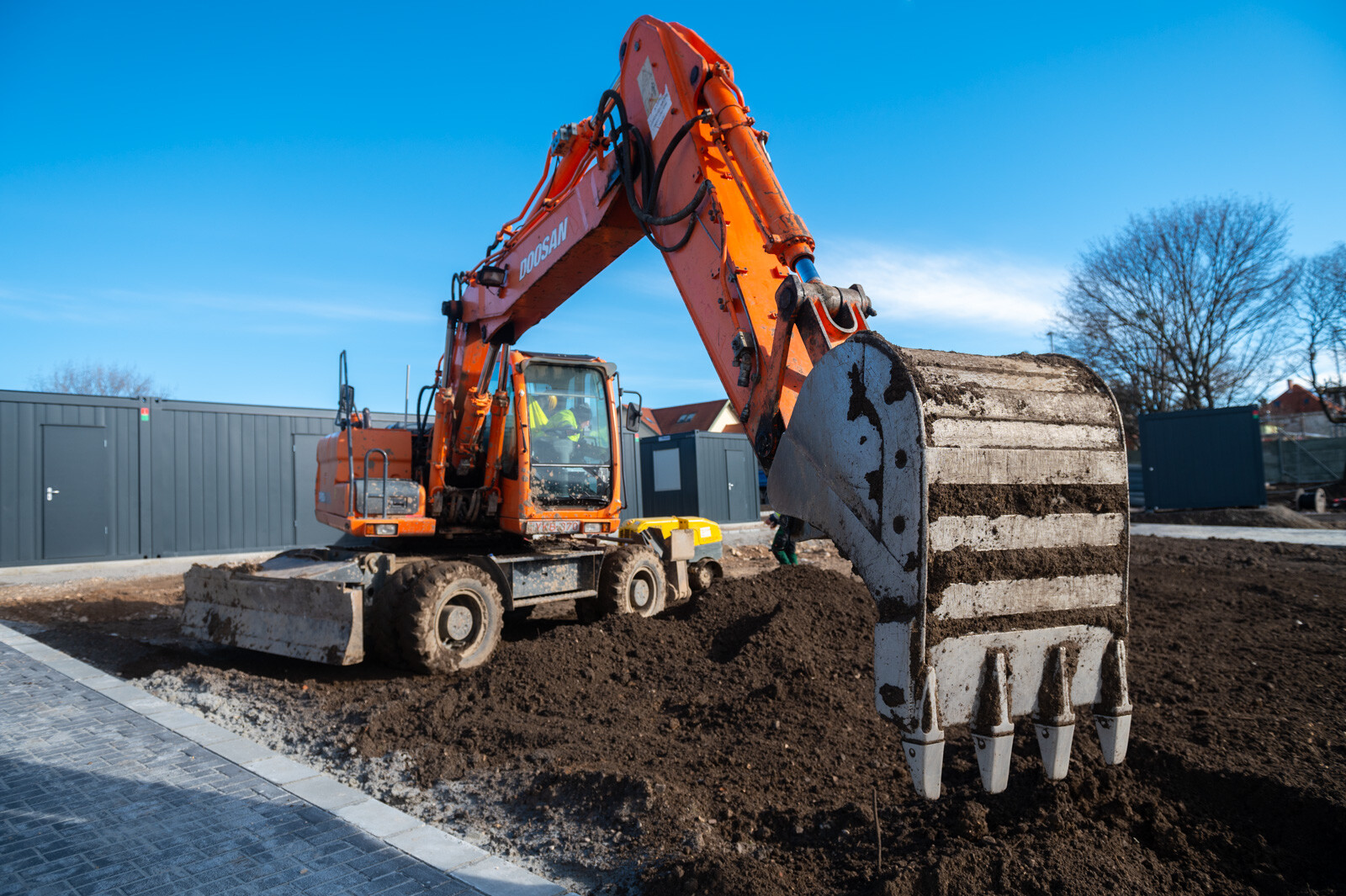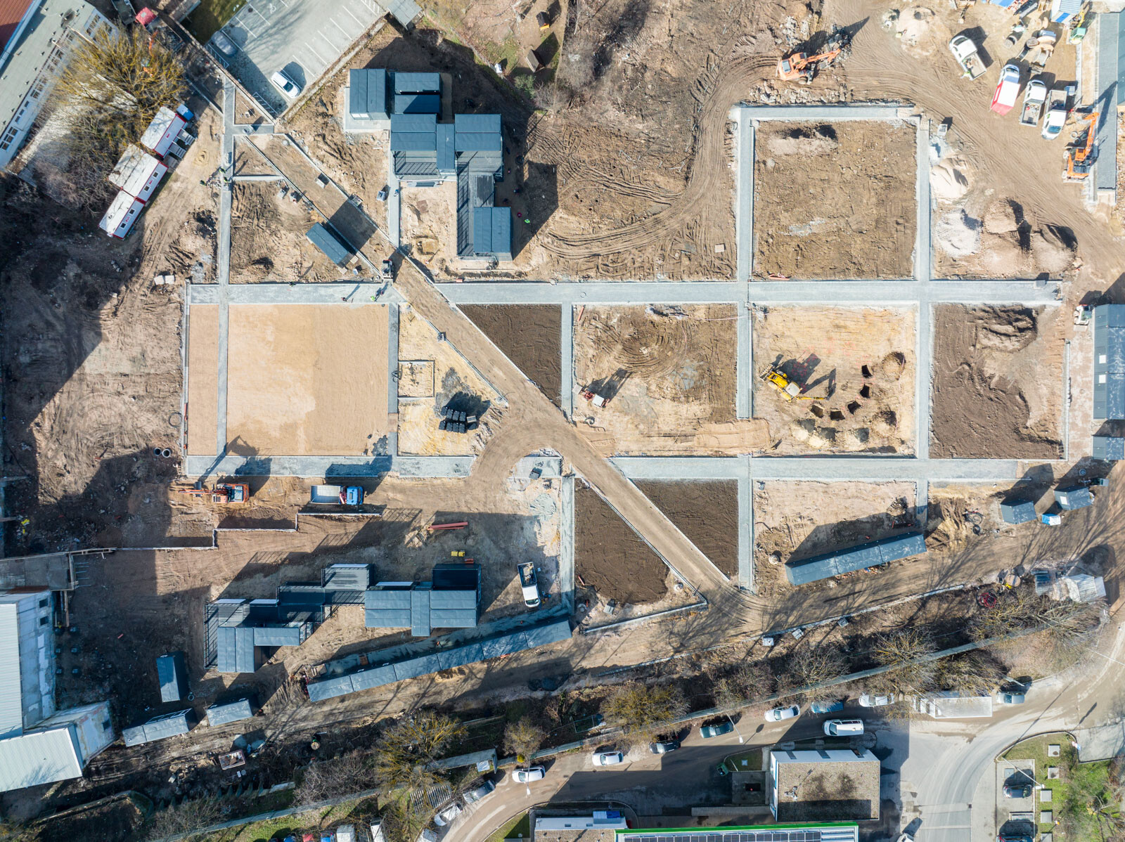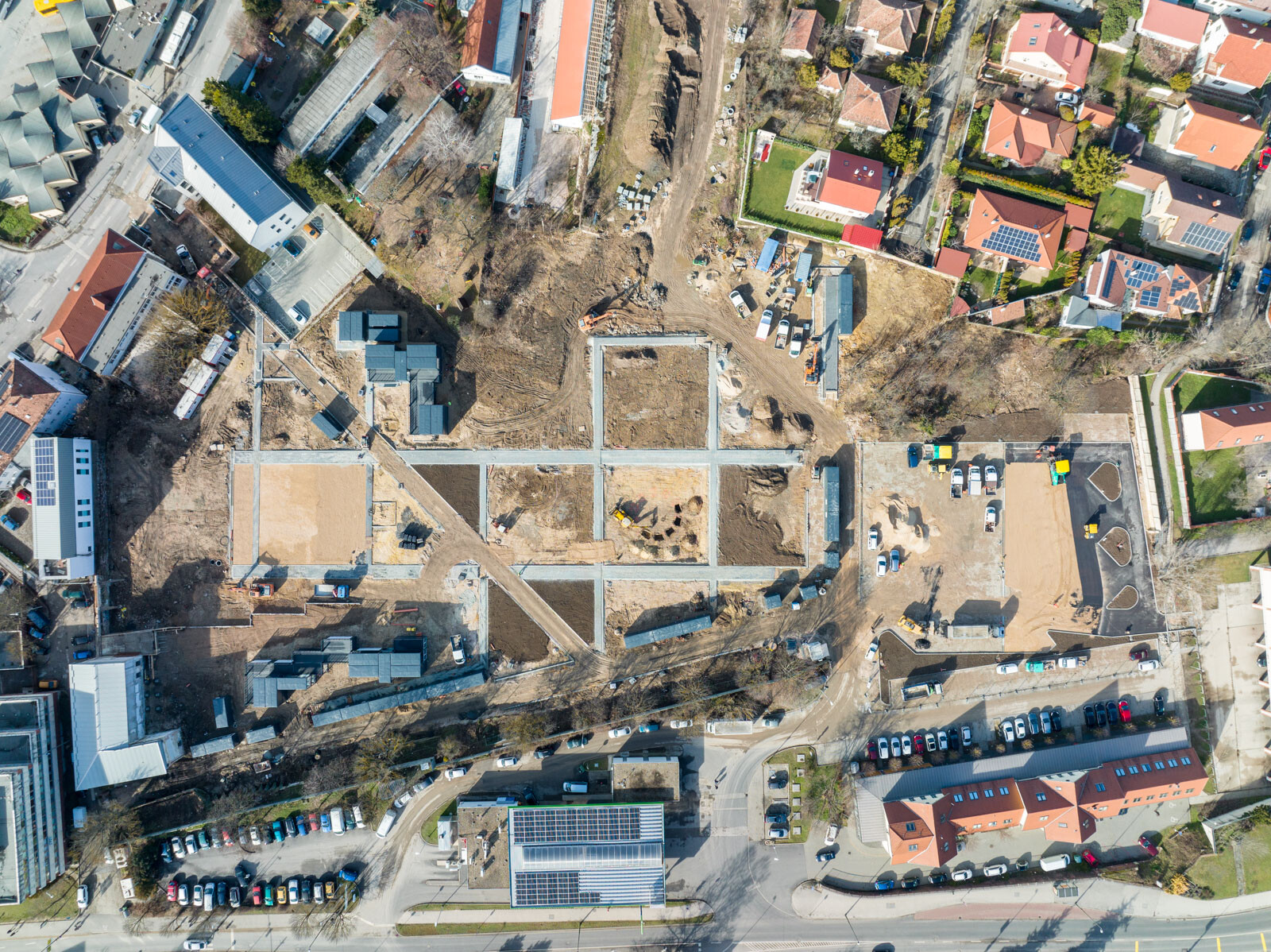 A többhektáros munkaterületen tavaly augusztus óta folyik a munka. A korábbi, részben már elbontott épületeket teljesen el kellett bontani. Kivéve a Jutasi út 3-as szám alatti volt bemutatótermet és a Budapest út felőli bejárat melletti helyi védett épületet. A talaj- és földmunkák megtörténtek, a közművek építése folyamatban van. A kivitelezőknek az érintett ingatlanok környezetrendezését is meg kell valósítaniuk.