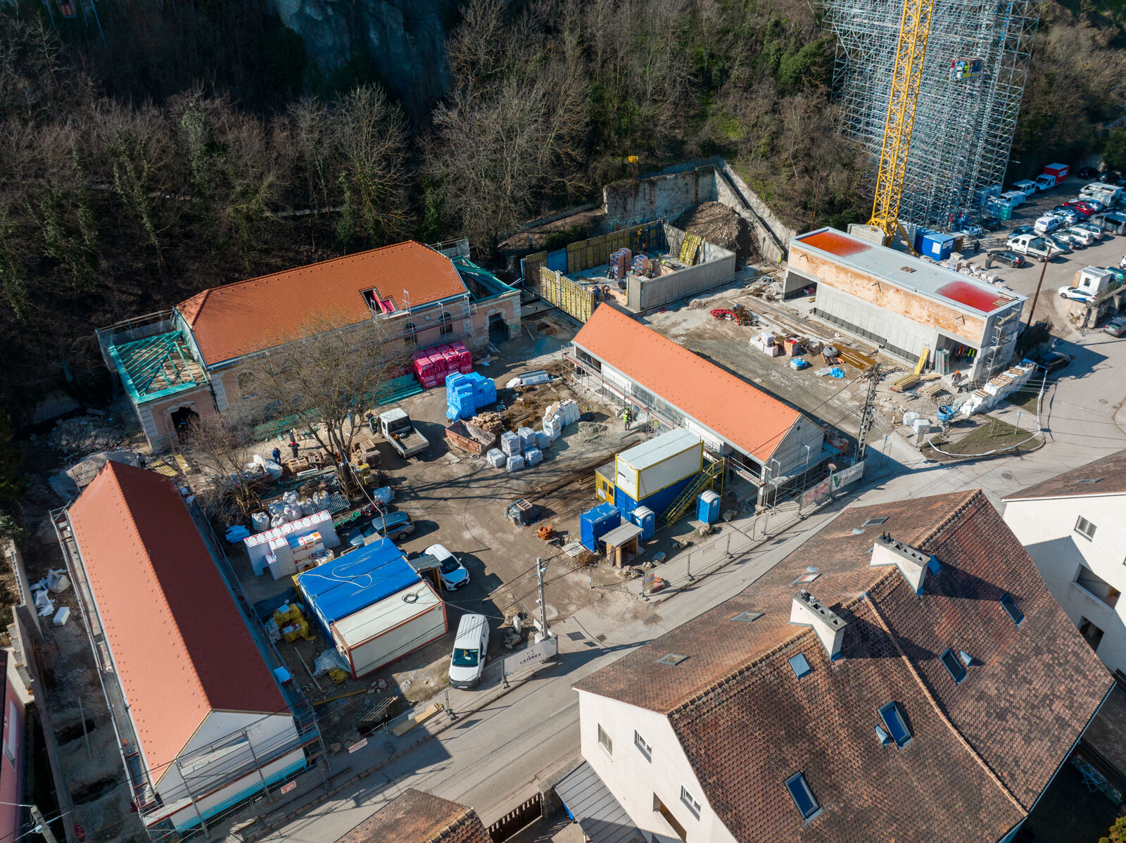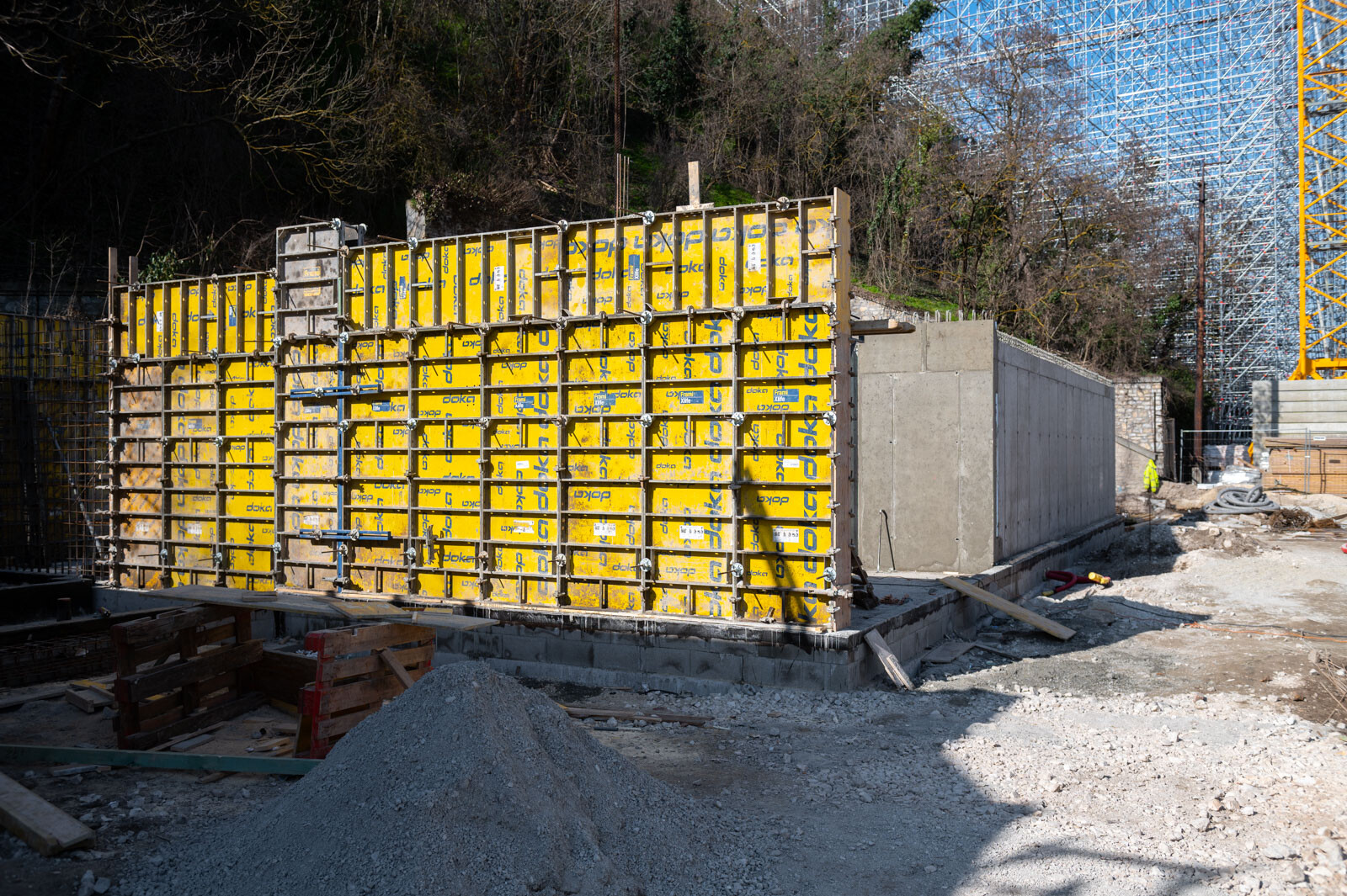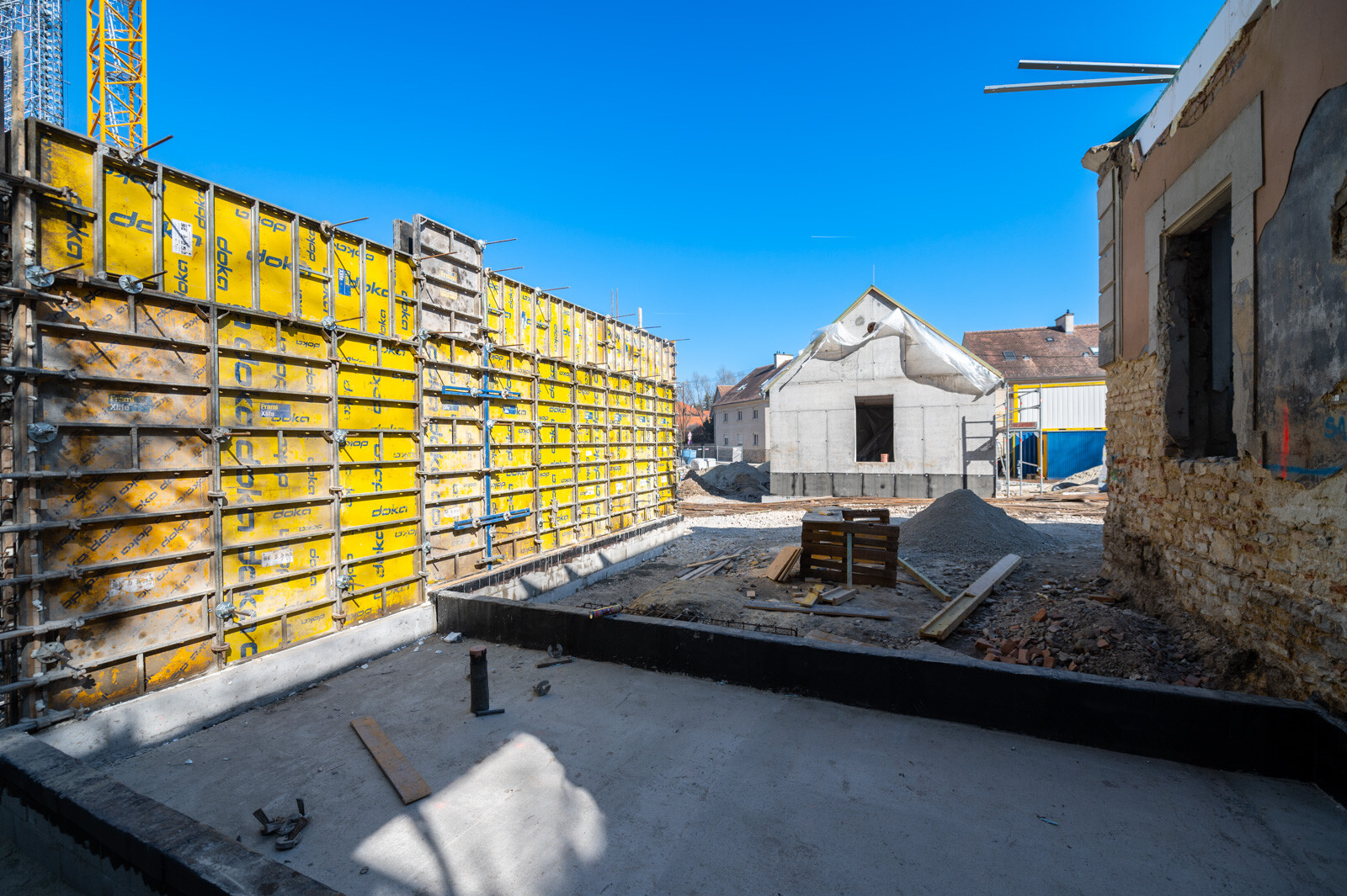 a két másik épületben is az ütemterveknek megfelelően haladtak a szakemberek, a bábszínházban már a befejező szakaszához értek a szerkezeti átalakítások, a fogadó épület vasbeton főfalainak szerkezetépítése pedig már 50%-os készültségnél tart.