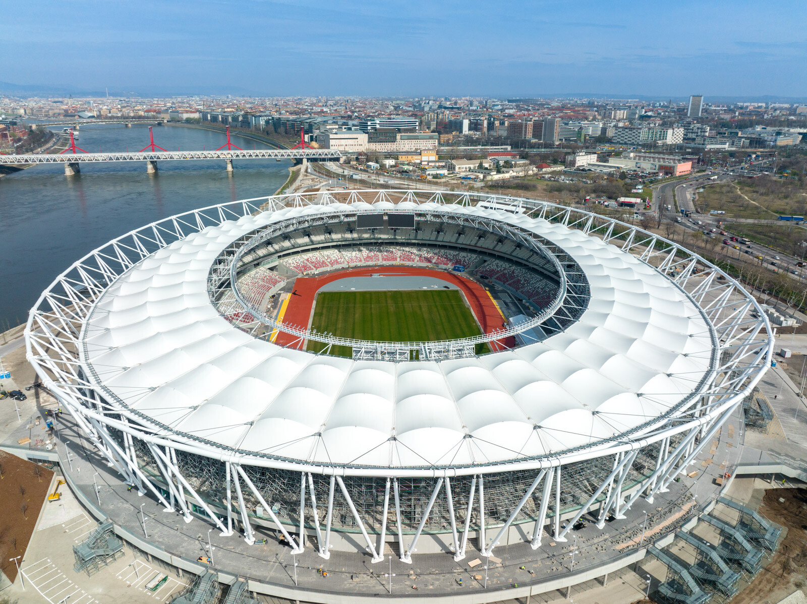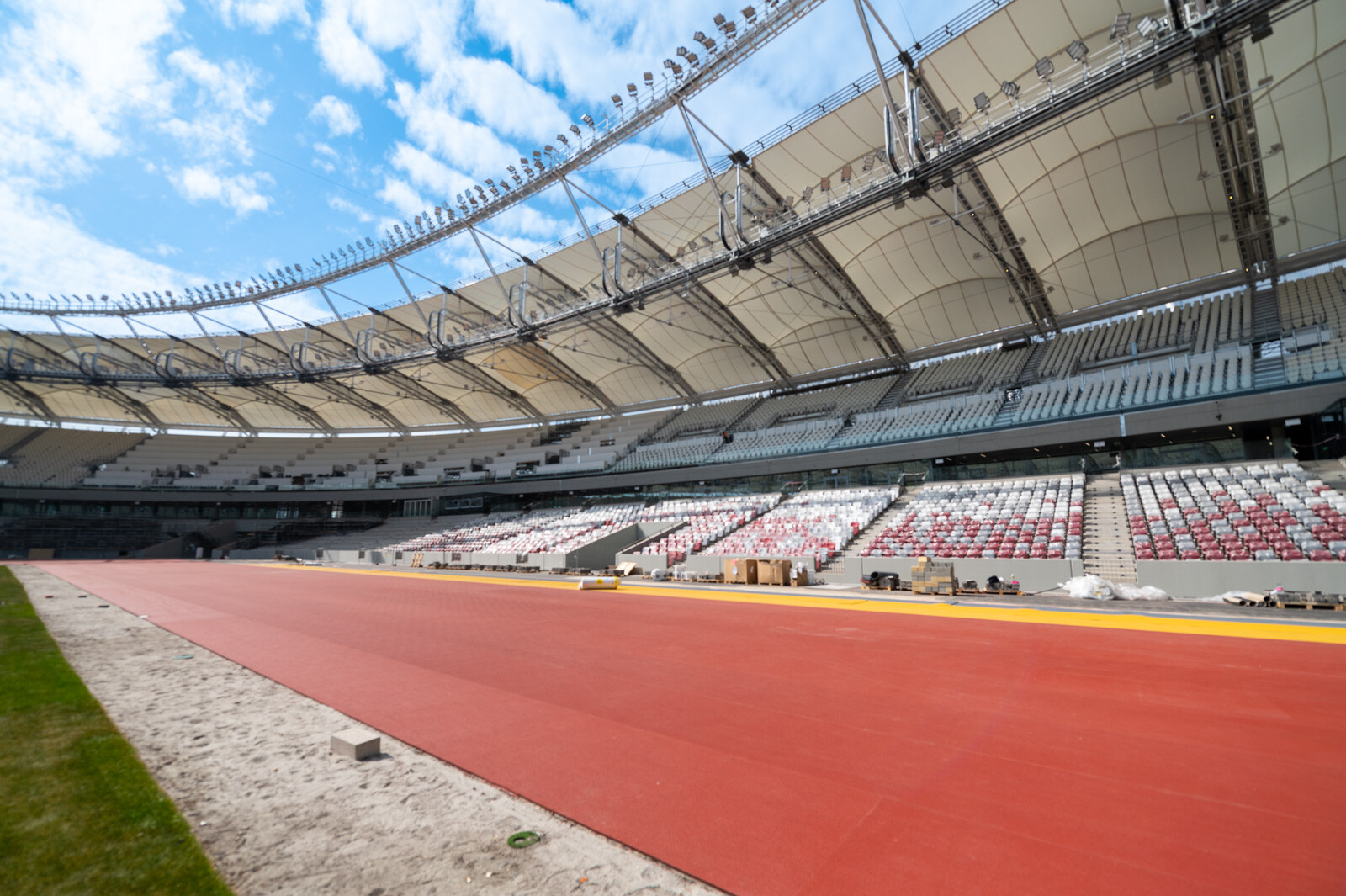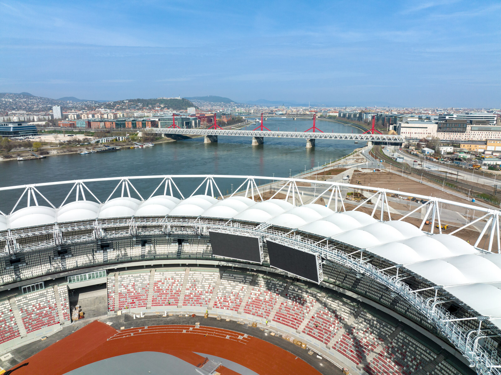 A nemzetközileg is kiemelt figyelemmel kísért óriásberuházásról legutóbb pár napja adtunk hírt, amikoris az immár egyre látványosabban formát öltő arénát nemzeti színekbe öltöztették a március 15-ei ünnepünk alkalmából.
