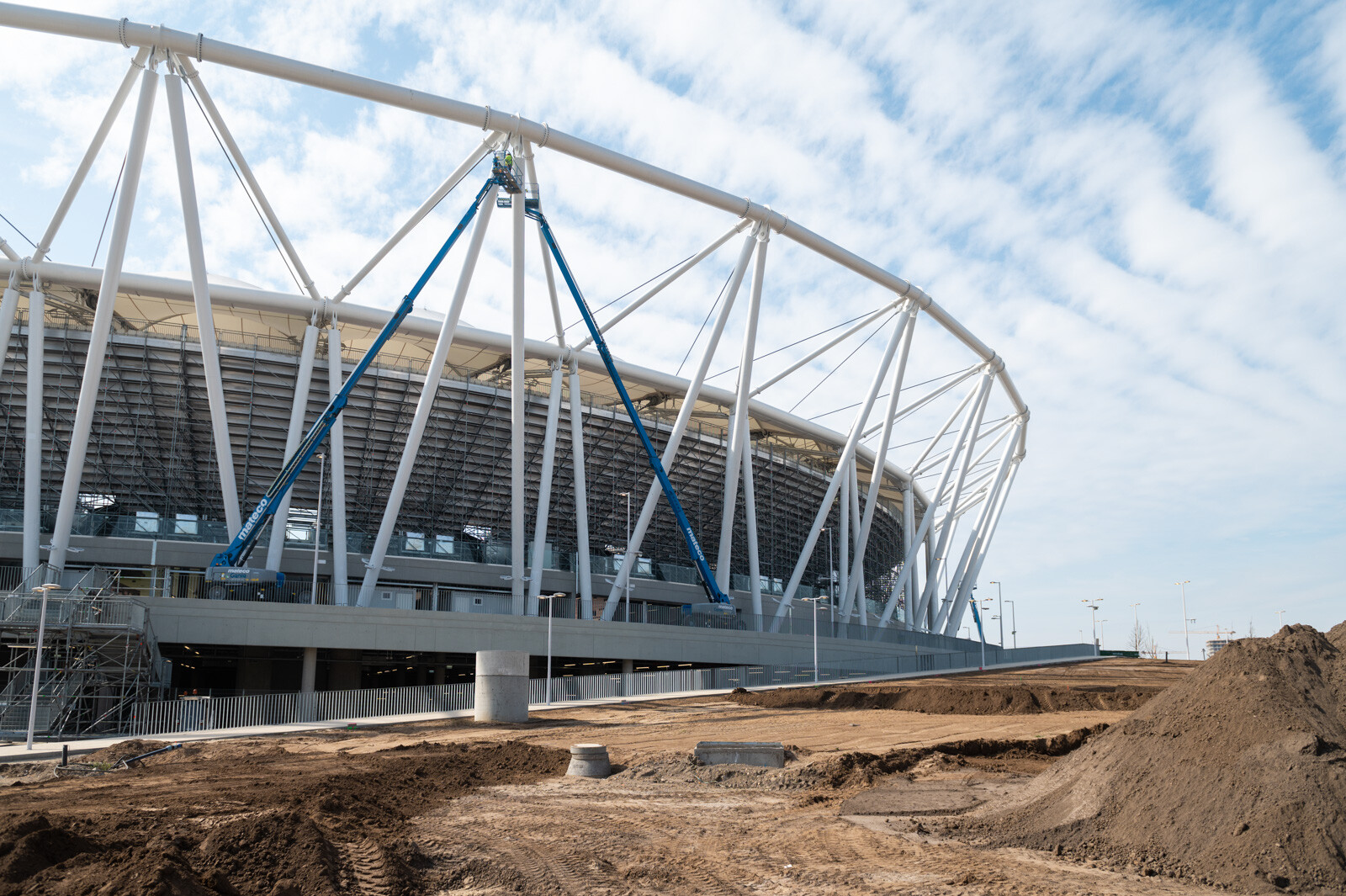 A tájékoztatásból kiderült, a stadionépület szerkezetépítési munkáihoz az alapozásig közel 100.000 köbméter földet termeltek ki a cölöpözési munkákig.