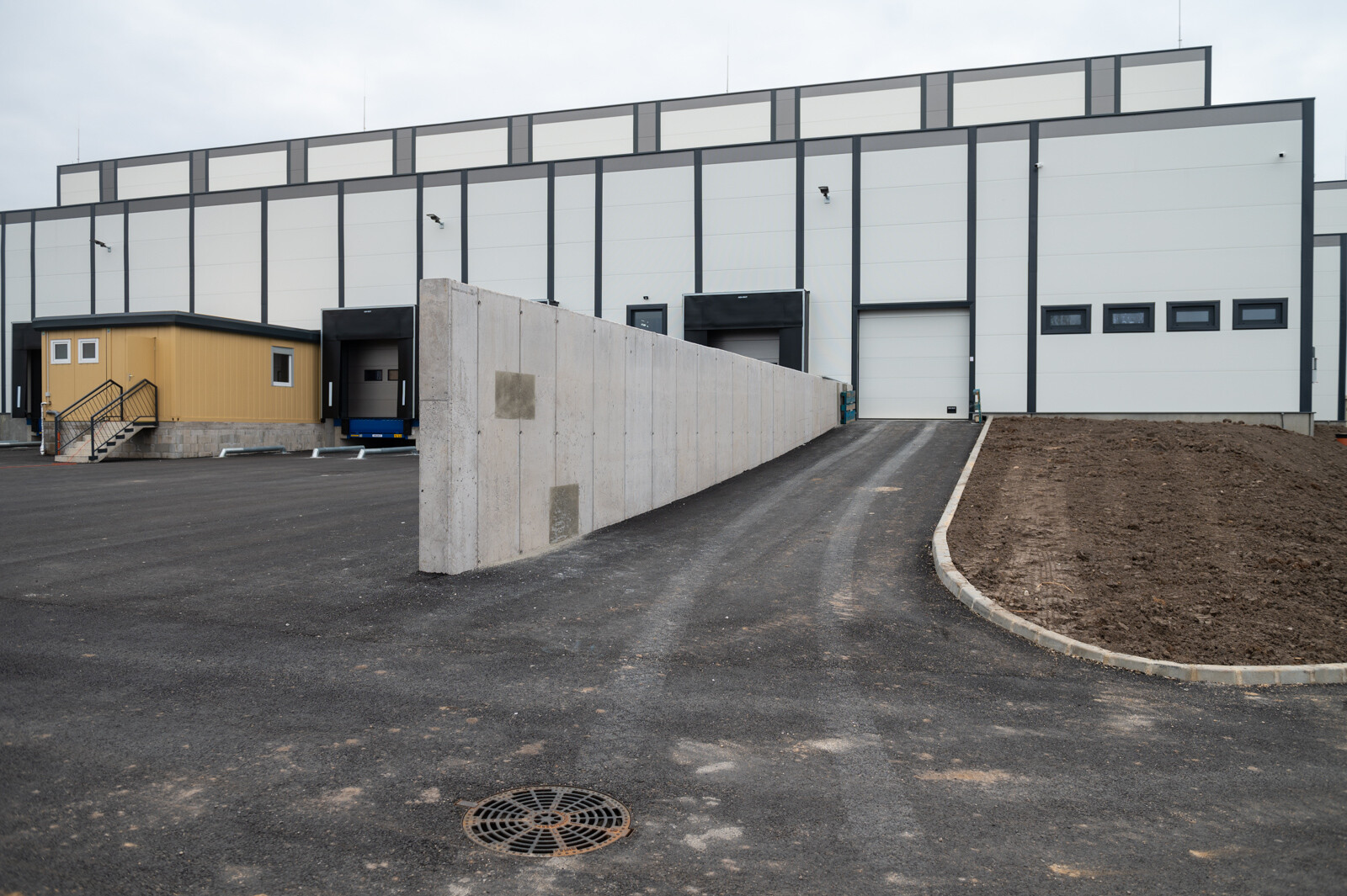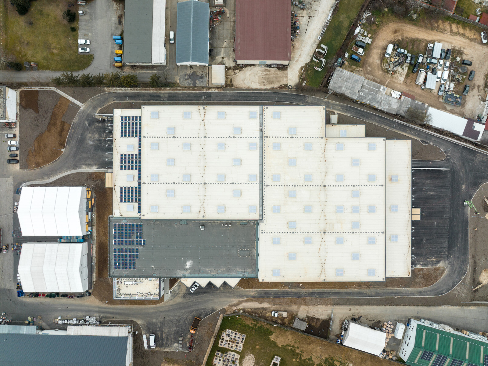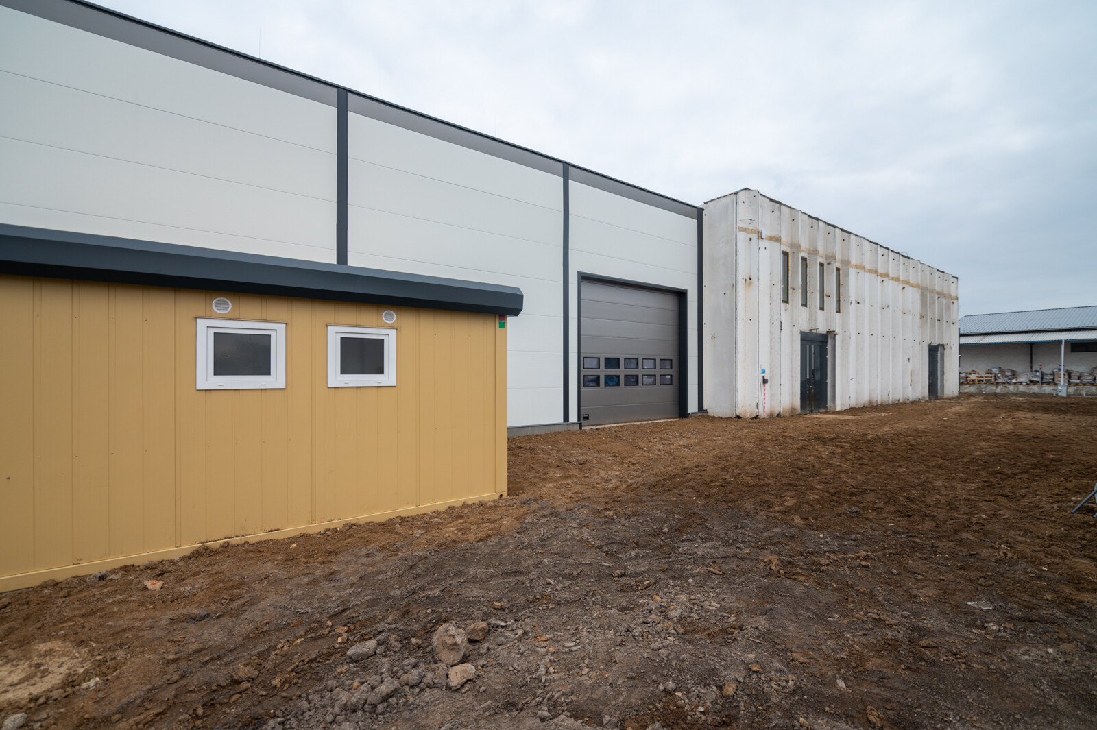 Kustor Bencétől részletes tájékoztatást kaptunk arról, hogy milyen technológiákat használtak az új csarnok felépítésénél: az épület vasbeton vázszerkezetű szendvicspanelek alkalmazásával készült el, illetve nagytáblás, szálerősített ipari padlóval.