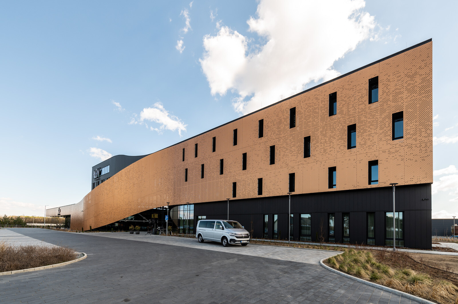 A projekt generáltervezési munkálatain a KÉSZ Csoport stratégiai együttműködő partnere, a bim.GROUP dolgozott, akik a tervezés teljes spektrumát lefedték az építészei koncepció alkotástól a belsőépítészeti tervezésig. Rendkívüli végeredményt értek el például az íves homlokzat leképezésével, parametrikus tervezés általi optimalizálásával, gyártmánytervezésével - ezek az elkészült elemek hajlított, perforált „bronz” kompozit táblákból készültek. A bim.GROUP kollégái mellett a KÉSZ Csoport tagvállalata és partnere, a KÉSZ Metaltech Kft., valamint a dvb Kft. is kivette részét. Előbbi a homlokzatburkolat (660m2 perforált kompozit burkolat és 2500m2 PREFA Alu burkolat) egészének gyártásáért felelt, utóbbinak pedig a vasbetonszerkezet építés volt a feladata. Utóbbi munkákról ebben a cikkben számoltunk be részletesen.