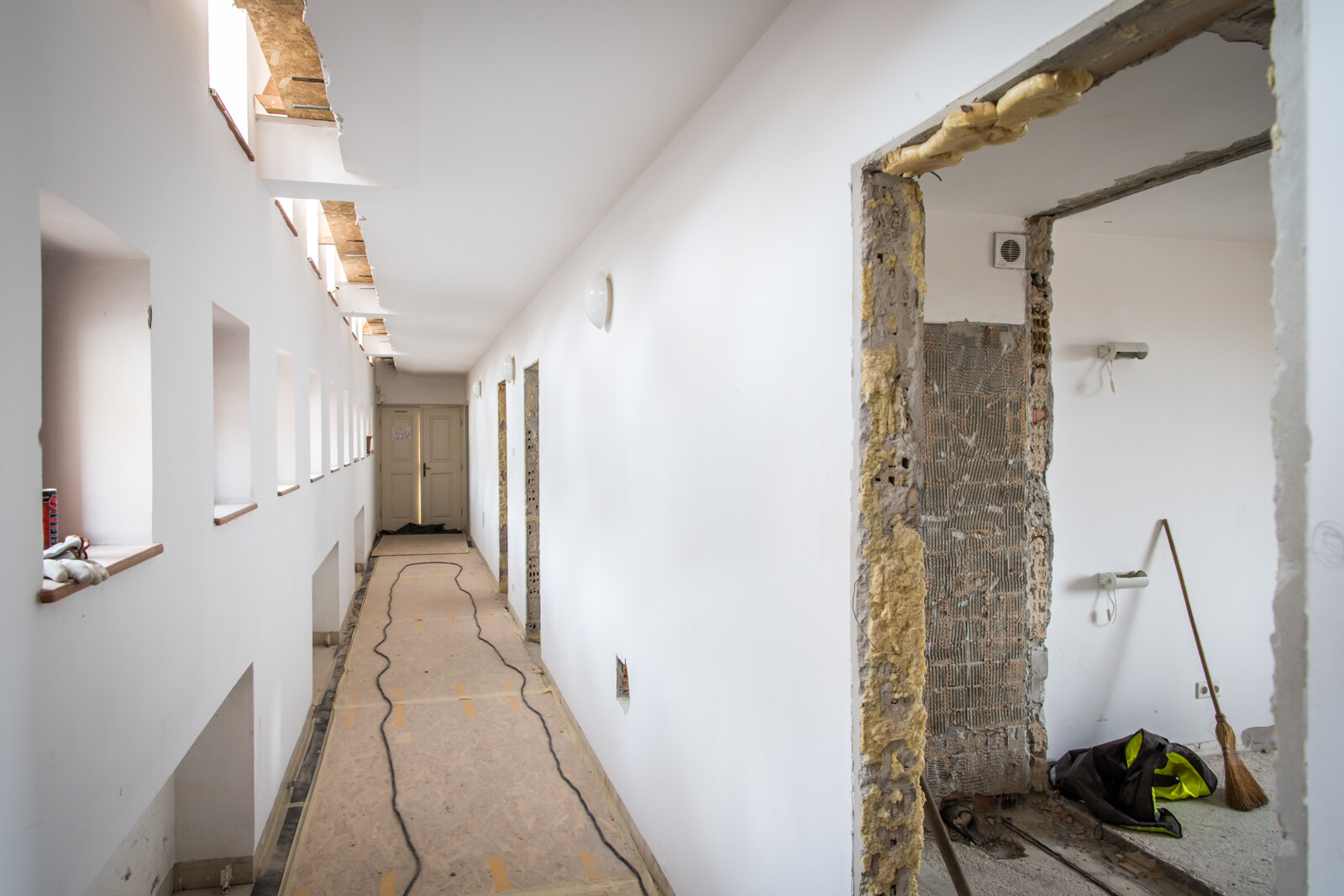 „A meglévő épület bontási feladatait befejeztük. Az érintett szobákban a válaszfalak elbontását követően a gépészeti és elektromos alapszereléseket végezzük, ezt követően kezdődnek meg az építőmesteri munkálatok. Az újonnan építendő szállásnál a külszíni bontást elvégeztük, jelenleg a földmunkák zajlanak.”