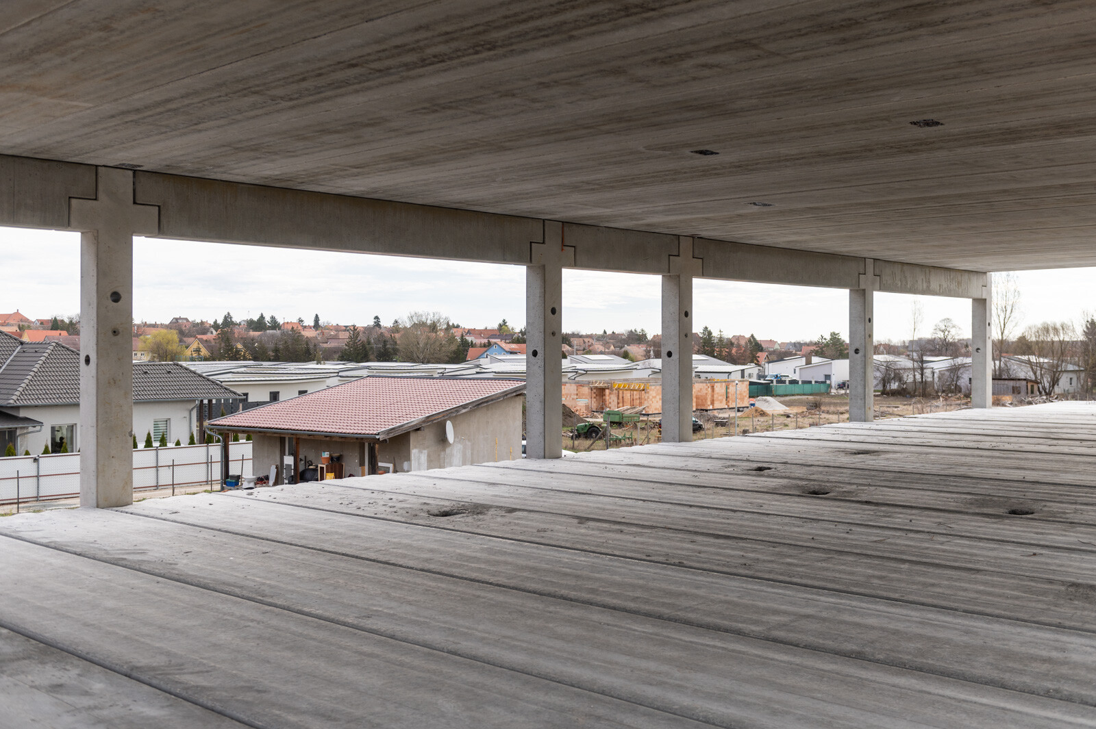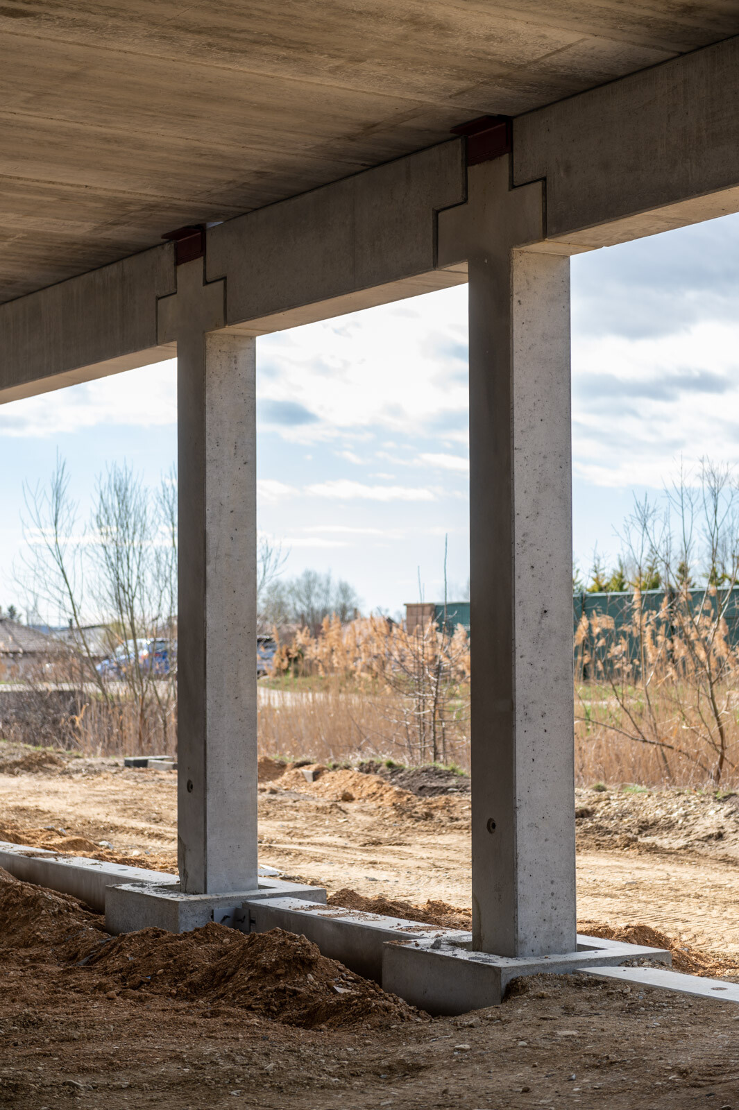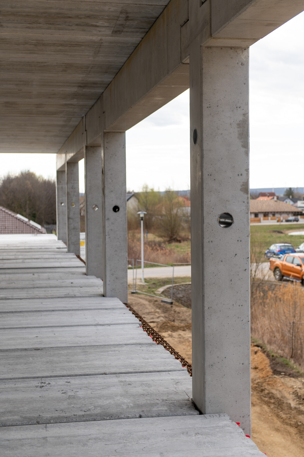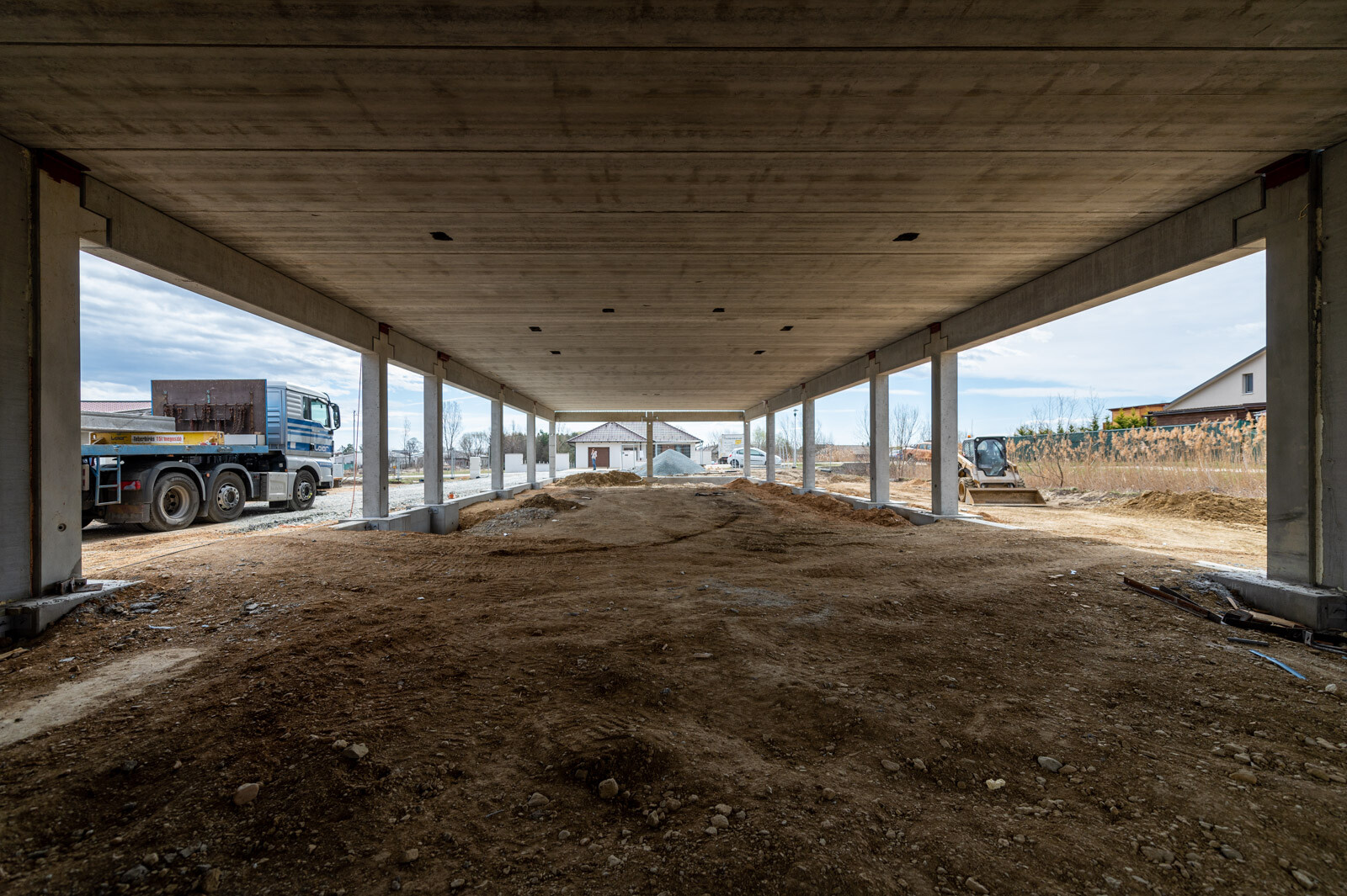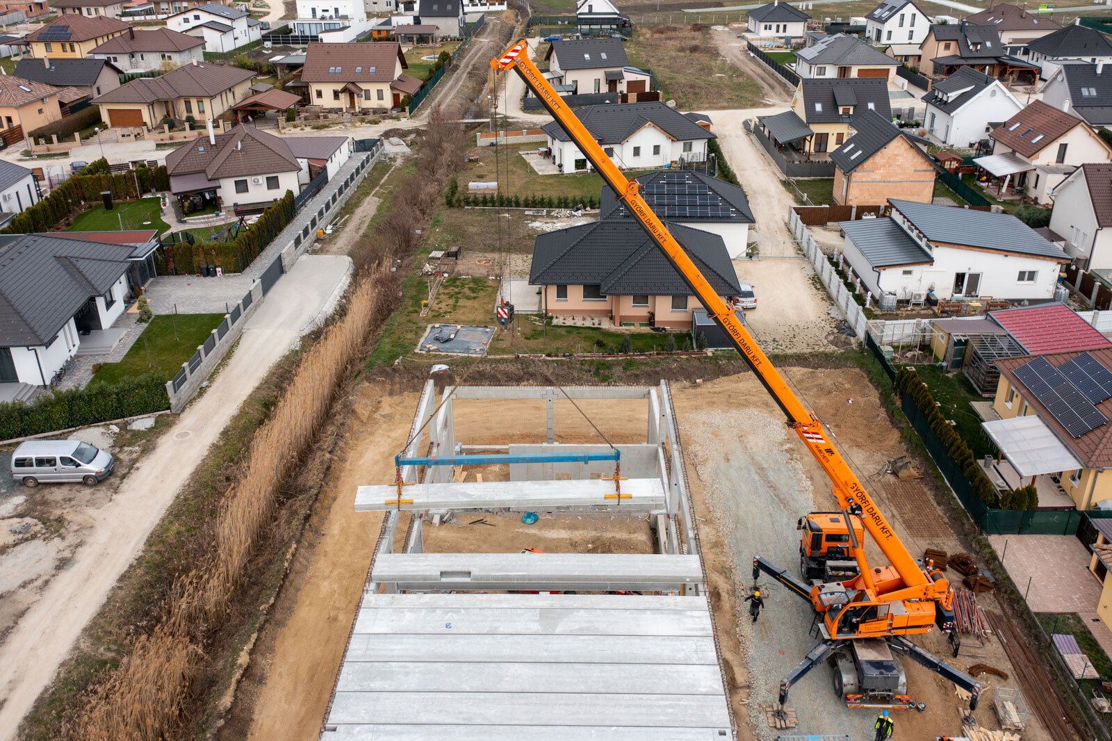 Erről Samu Bence részletesen beszámolt lapunknak: elmondása szerint először a monolit pontalapokra kerültek fel az előregyártott kehelynyakak és talpgerendák, majd ezek után készült el a pillér vázszerkezet. Az épület két szintjén gerendákat és üreges födémeket, kéregfalakat és kéregfödémelemeket építettek be, a szintek között pedig előregyártott lépcsőkarokat helyeztek el.