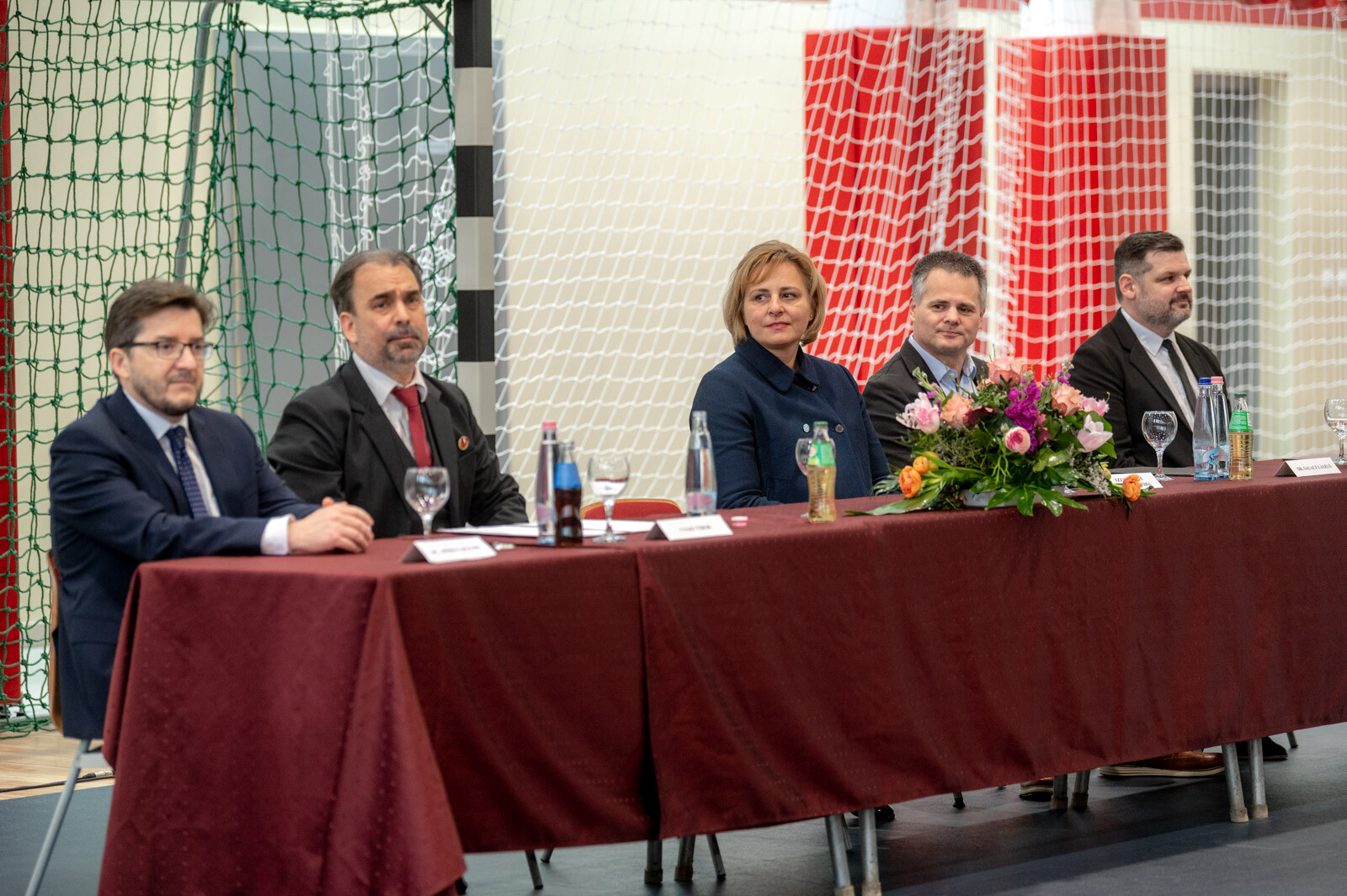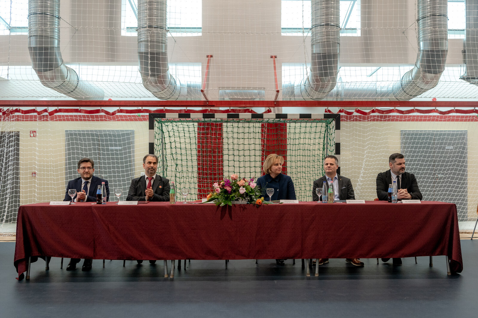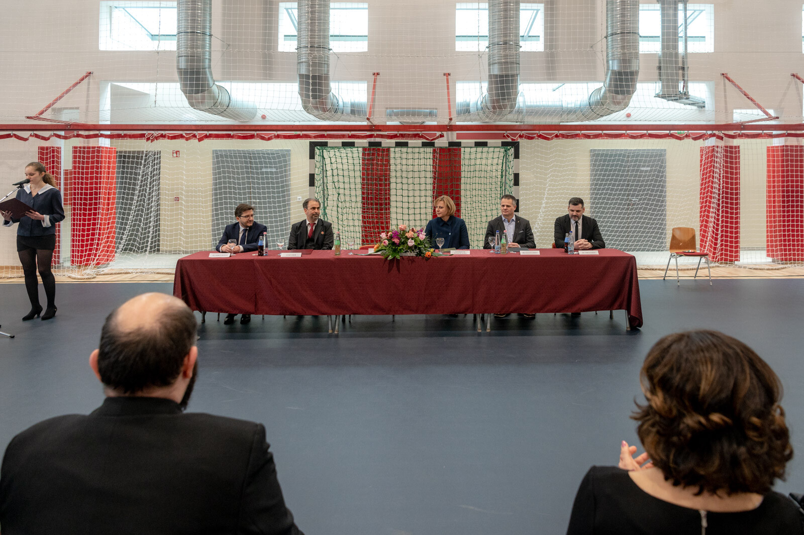 A pénteki megnyitón Csáki Tibor, a gimnázium igazgatója hangsúlyozta, ő már csak az építési munkálatok végén lépett az igazgatói szerepkörbe, az utat elődje, Szabó István igazgató járta ki, aki 22 évig vezette az iskolát. „Ez idő alatt több helyen is hiába kopogtatott, de sosem adta fel. Végül néhány éve megérkezett a megoldás, hogy az iskola színvonalas oktatásához méltó sportcsarnok épülhessen” – fogalmazott.