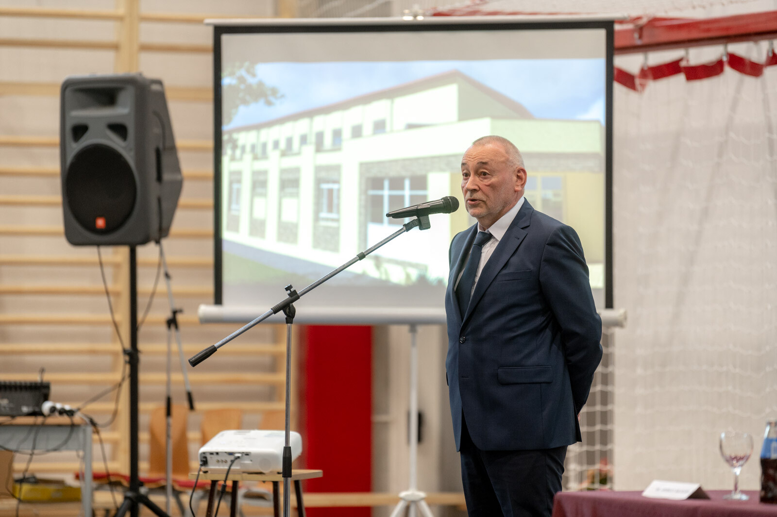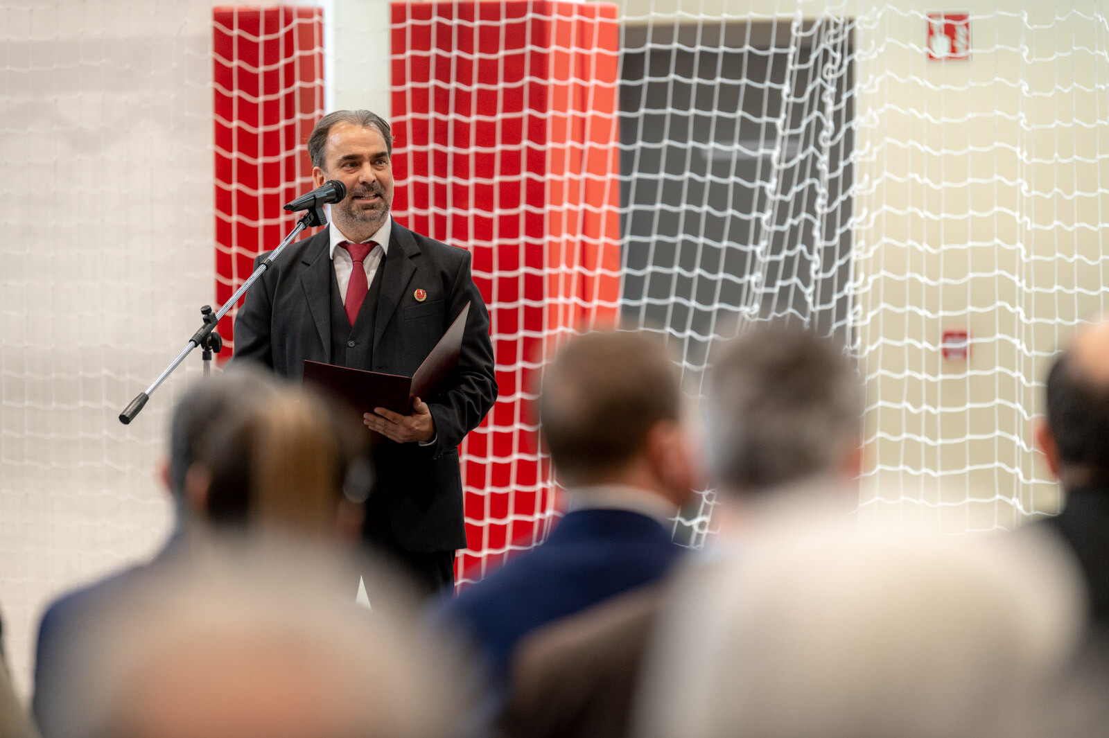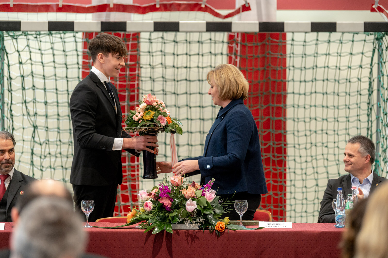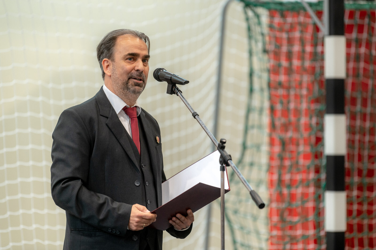Szabó István korábbi igazgató beszédében leszögezte, órási köszönet jár a sportcsarnok megépítése kapcsán Vercz Tamásnak, a ScoreGoal futsal csapat ügyvezetőjének, akinek köszönhetően beindult a folyamat, amely elvezetett a történelmi pillanatig az iskola életében.