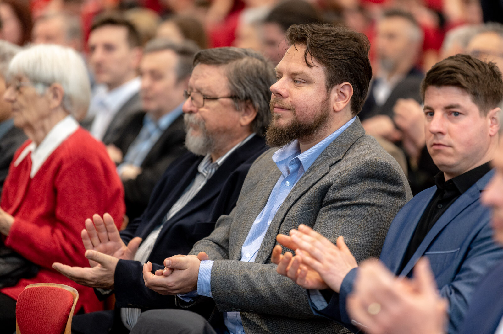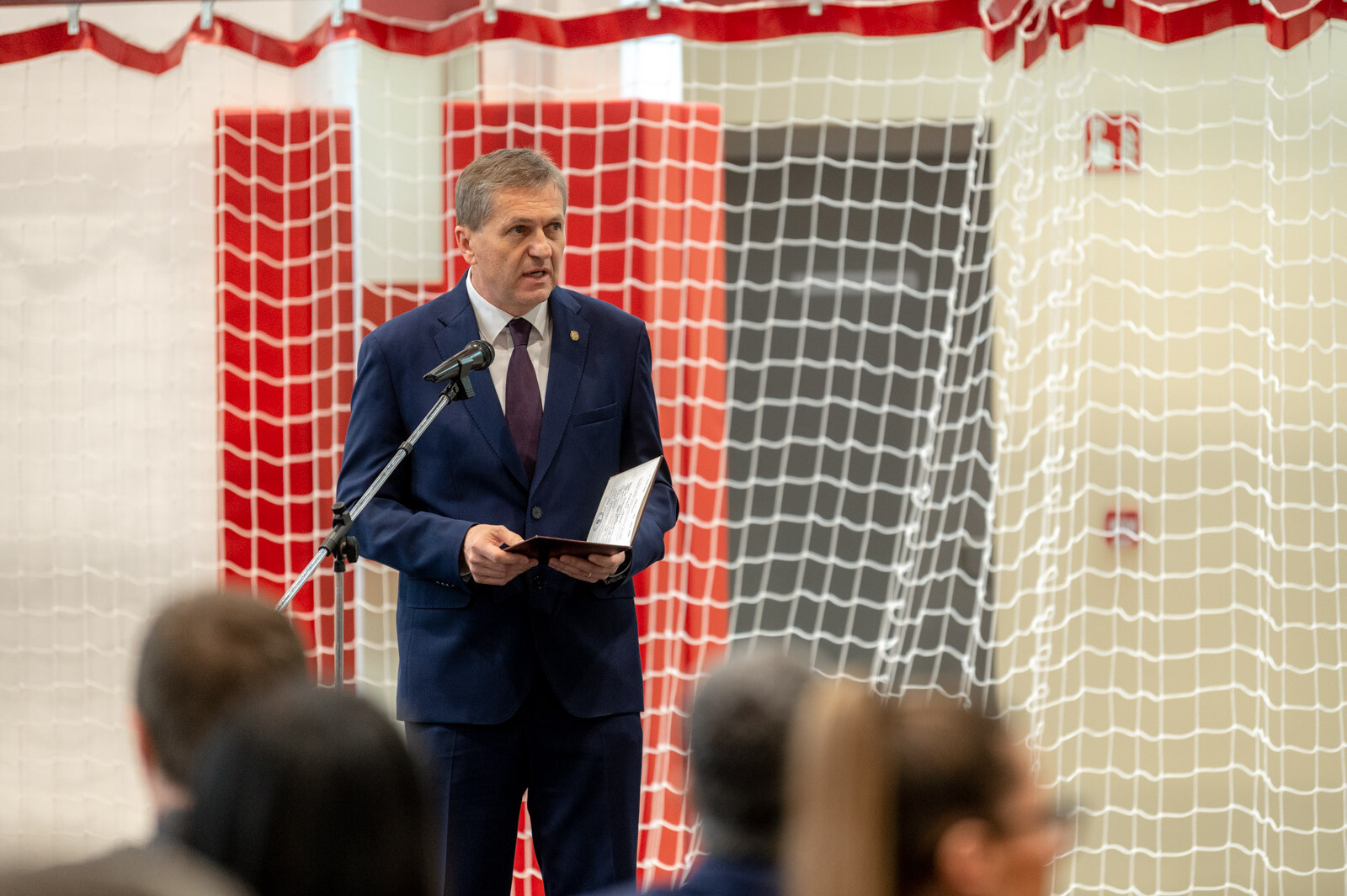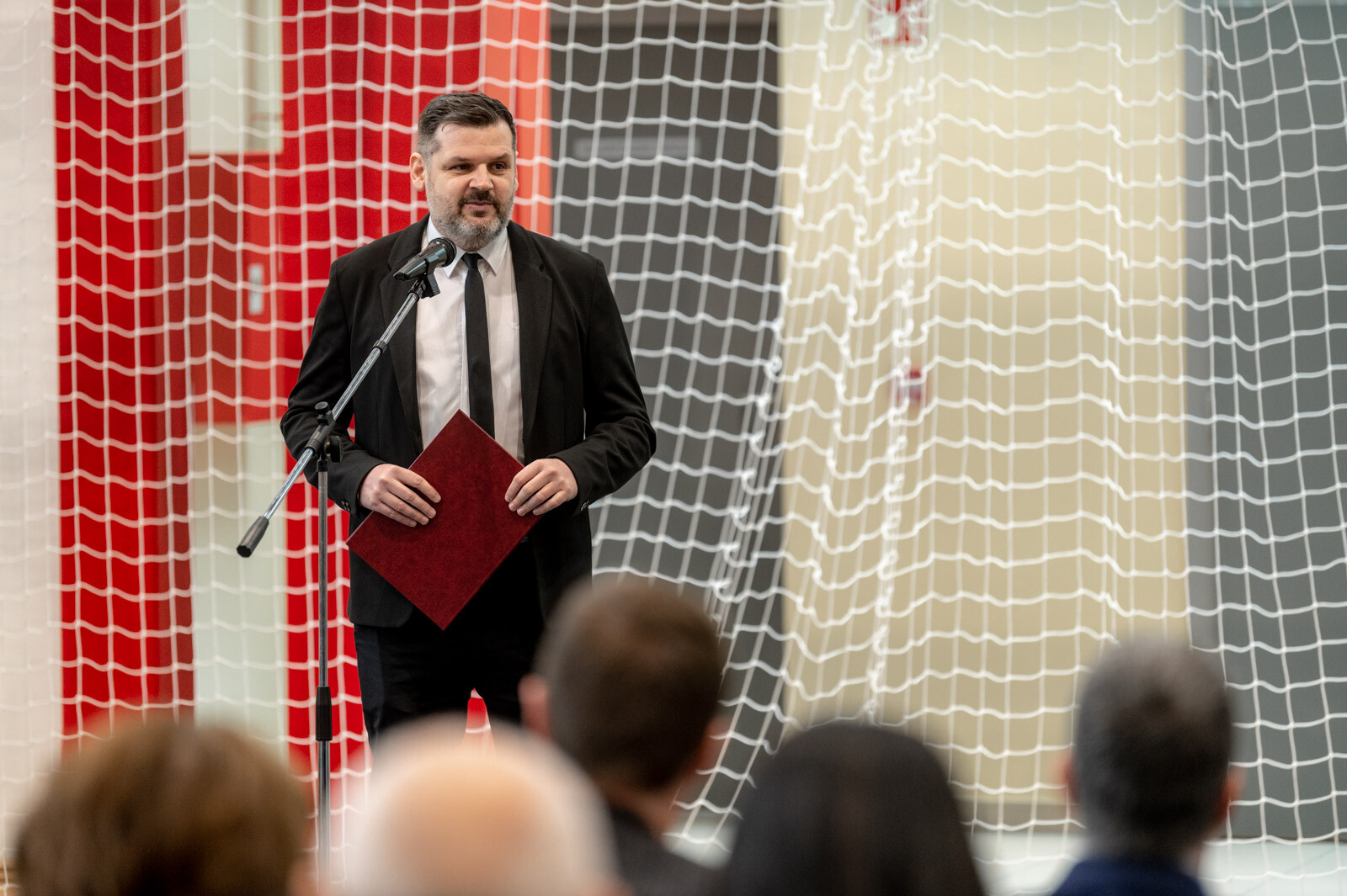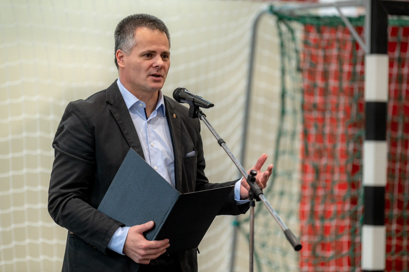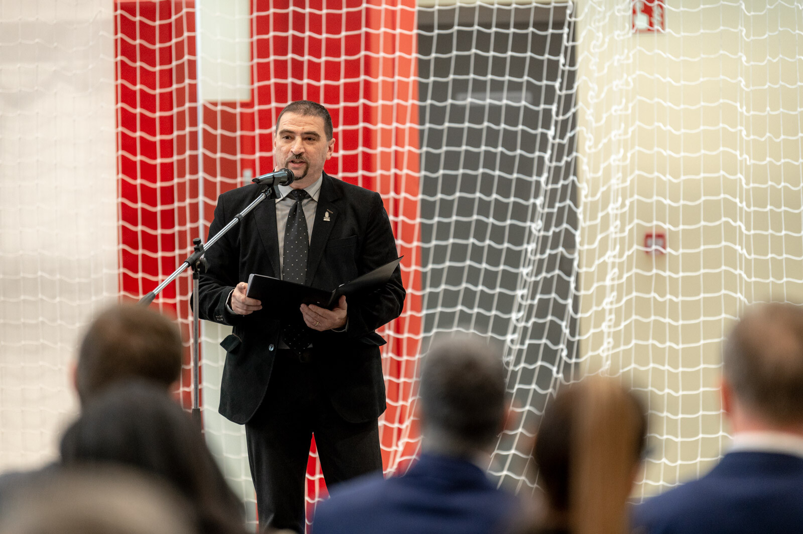 Szabó István korábbi igazgató beszédében leszögezte, órási köszönet jár a sportcsarnok megépítése kapcsán Vercz Tamásnak, a ScoreGoal futsal csapat ügyvezetőjének, akinek köszönhetően beindult a folyamat, amely elvezetett a történelmi pillanatig az iskola életében.