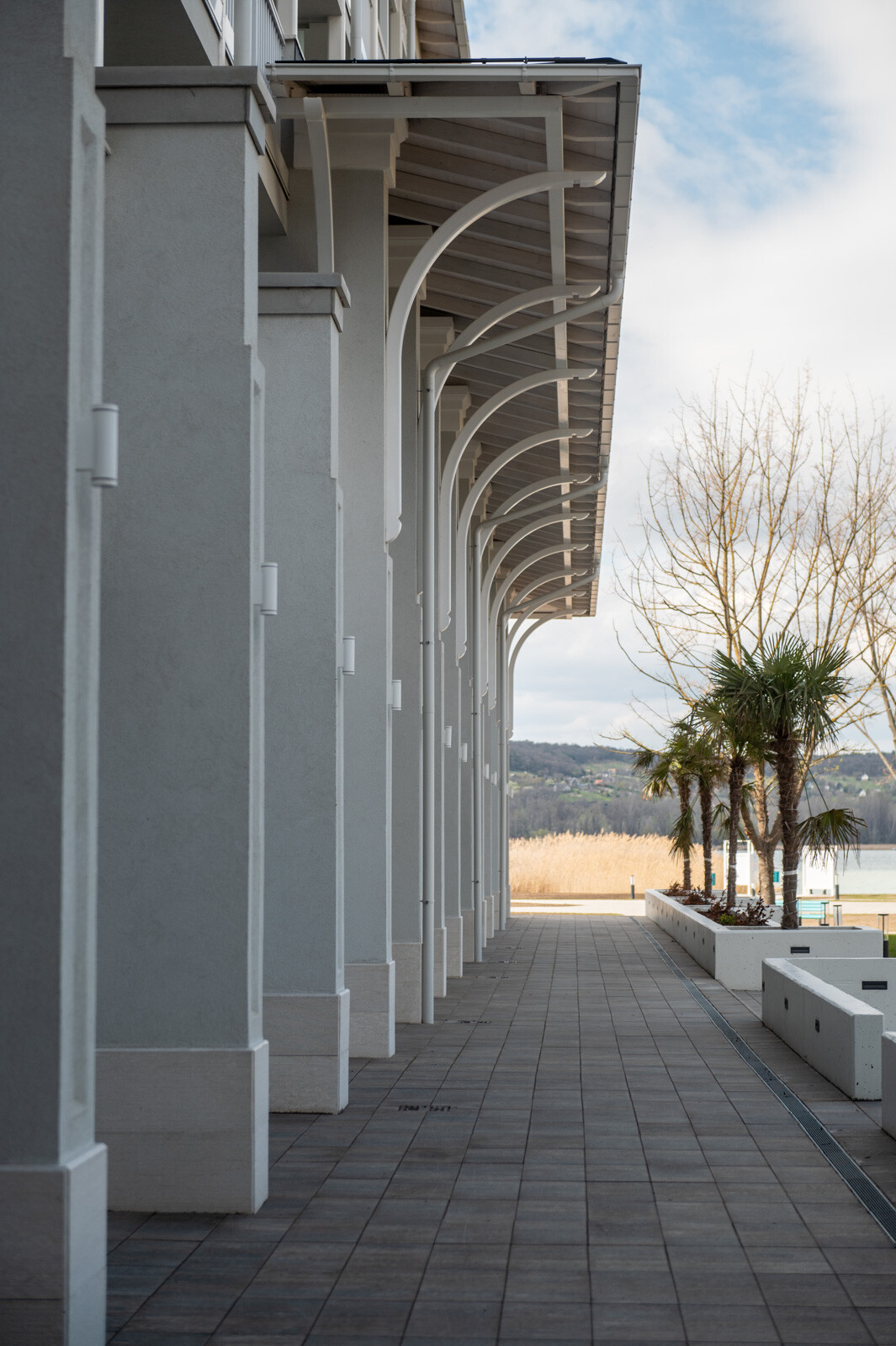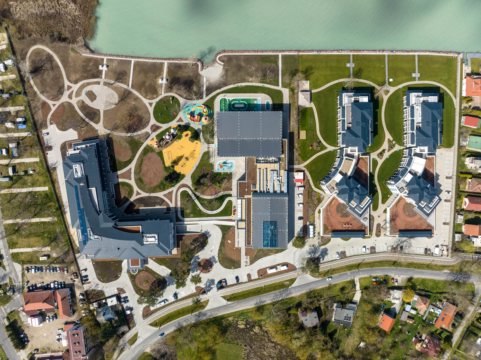 Az iparágat sújtó negatív, előre nem kalkulálható piaci hatásokat és az ezekből is adódó költségnövekedést a KÉSZ Csoport jelentős mértékű saját pénzügyi erőforrásainak bevonásával kompenzálta. Megrendelőnk céljainak elérését ezzel is segítve valósulhatott meg a Kisfaludy Program keretében is támogatott, egyedi kialakítású, prémium kategóriájú létesítmény a Balaton partján."