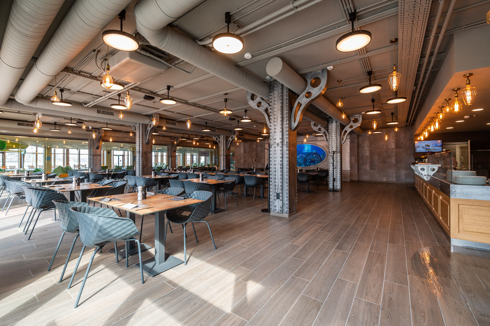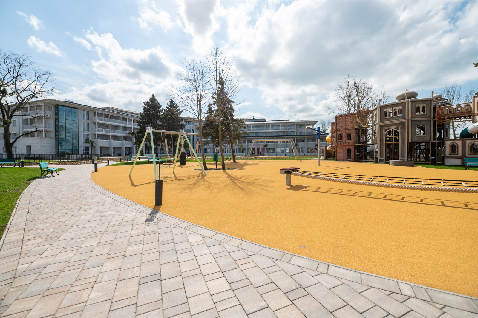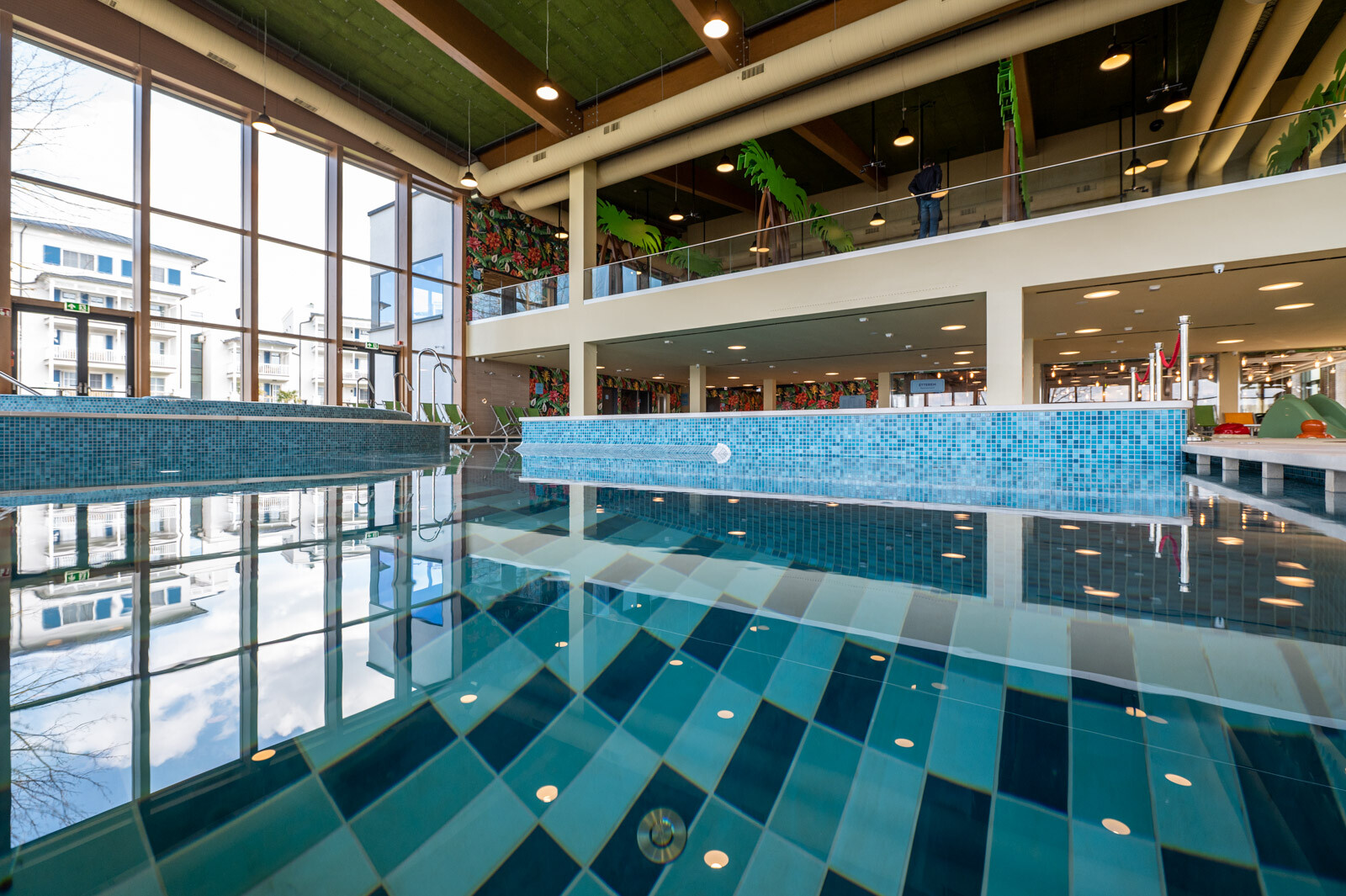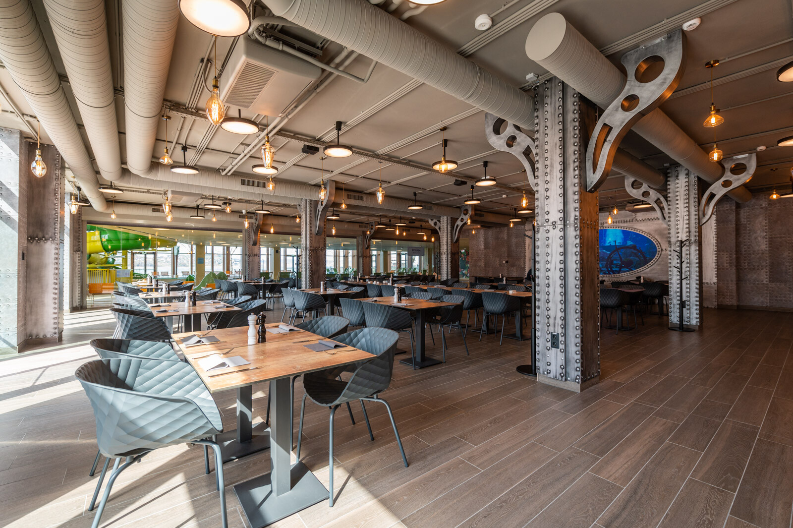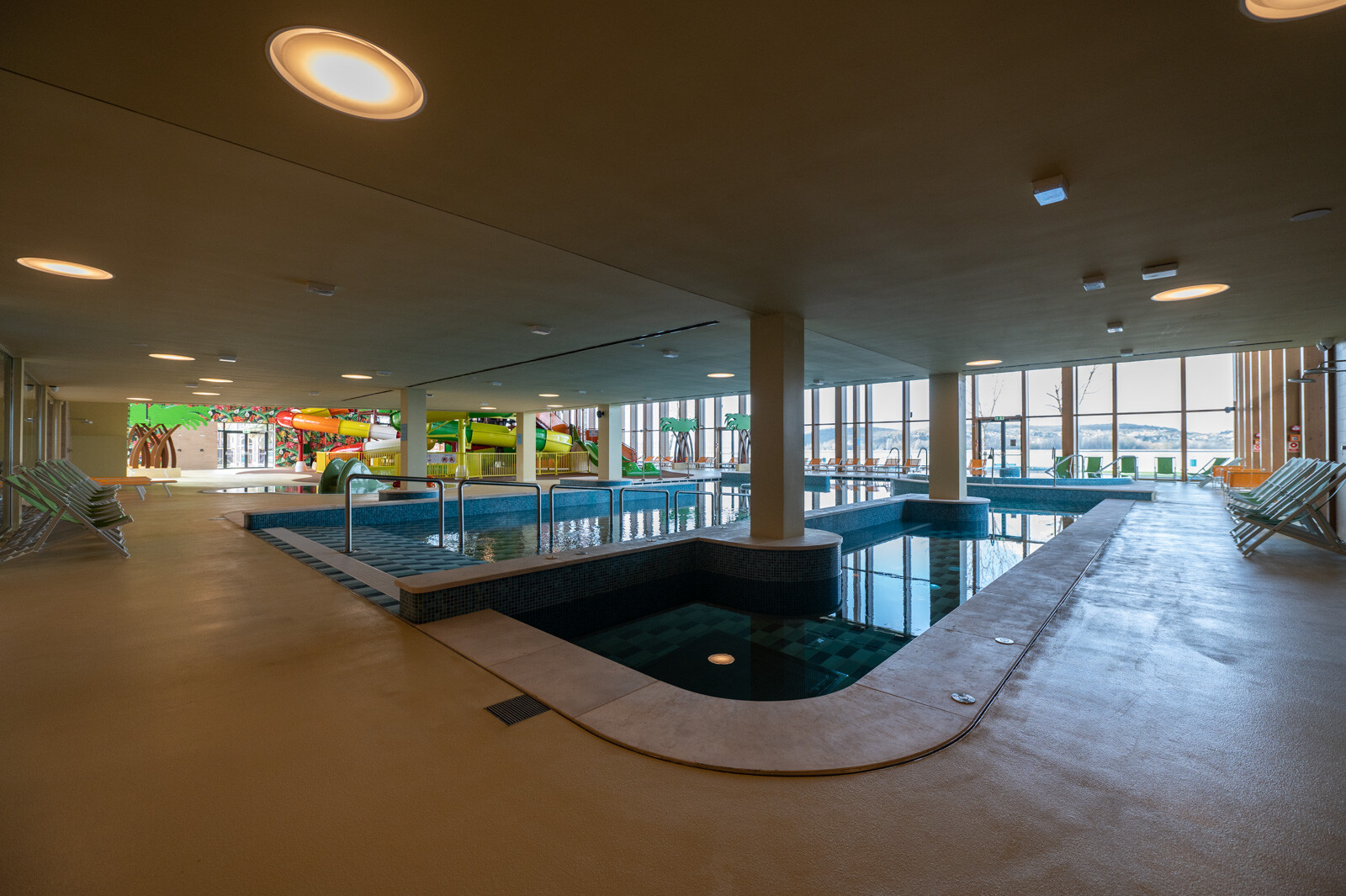 A kivitelezés részét képezte egy mennyezetre függesztve futó kisvasút, valamint a wellness részleg kialakítása, továbbá a külső területeken lefúrt geotermikus szondák és az épületek tetején kialakított extenzív zöldtetők megvalósítása. A Family Park földszint vizes játékterében kaptak helyet különböző kialakítású és méretű gyermekmedencék csúszdákkal, míg a szintén a földszinten található száraz játéktérben számos olyan tematikus játékelem került elhelyezésre, mint a függesztett sínpályán haladó monorail, VR szoba, 3D tematikájú mászófal vagy lézer labirintus. A galéria szinten kialakított pihenőtérben sószoba, masszázs helyiség, szauna és gőzkabin is kialakításra került. A két épület körül pedig pálmafákkal és szökőkúttal kialakított zöldövezeti terület varázsolja tengerpartivá a kilátást.