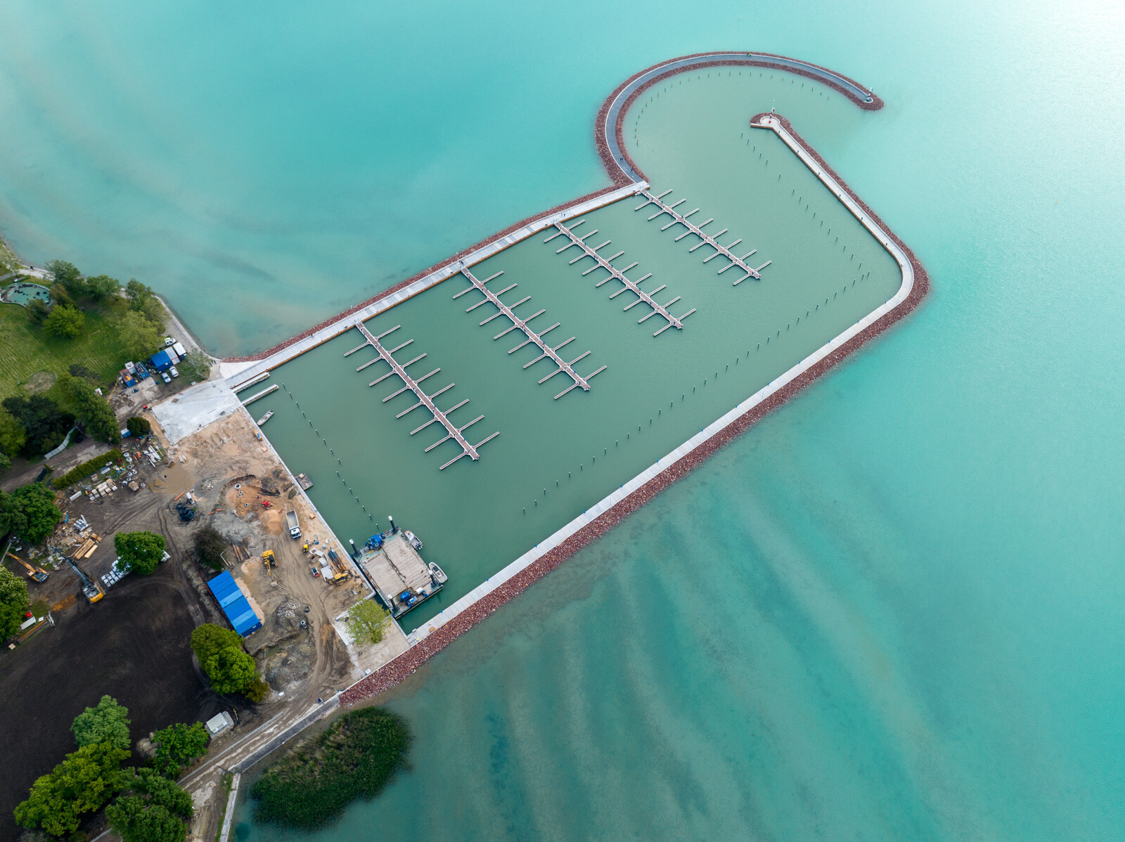 Megerősítették a partfalat, újjáépítették a két mólószárat és egy új hullámtörő mólószár is épült. A kialakításánál arra törekedtek, hogy nyugodt, belső vízterületet biztosítsanak az ott lévő hajók számára.