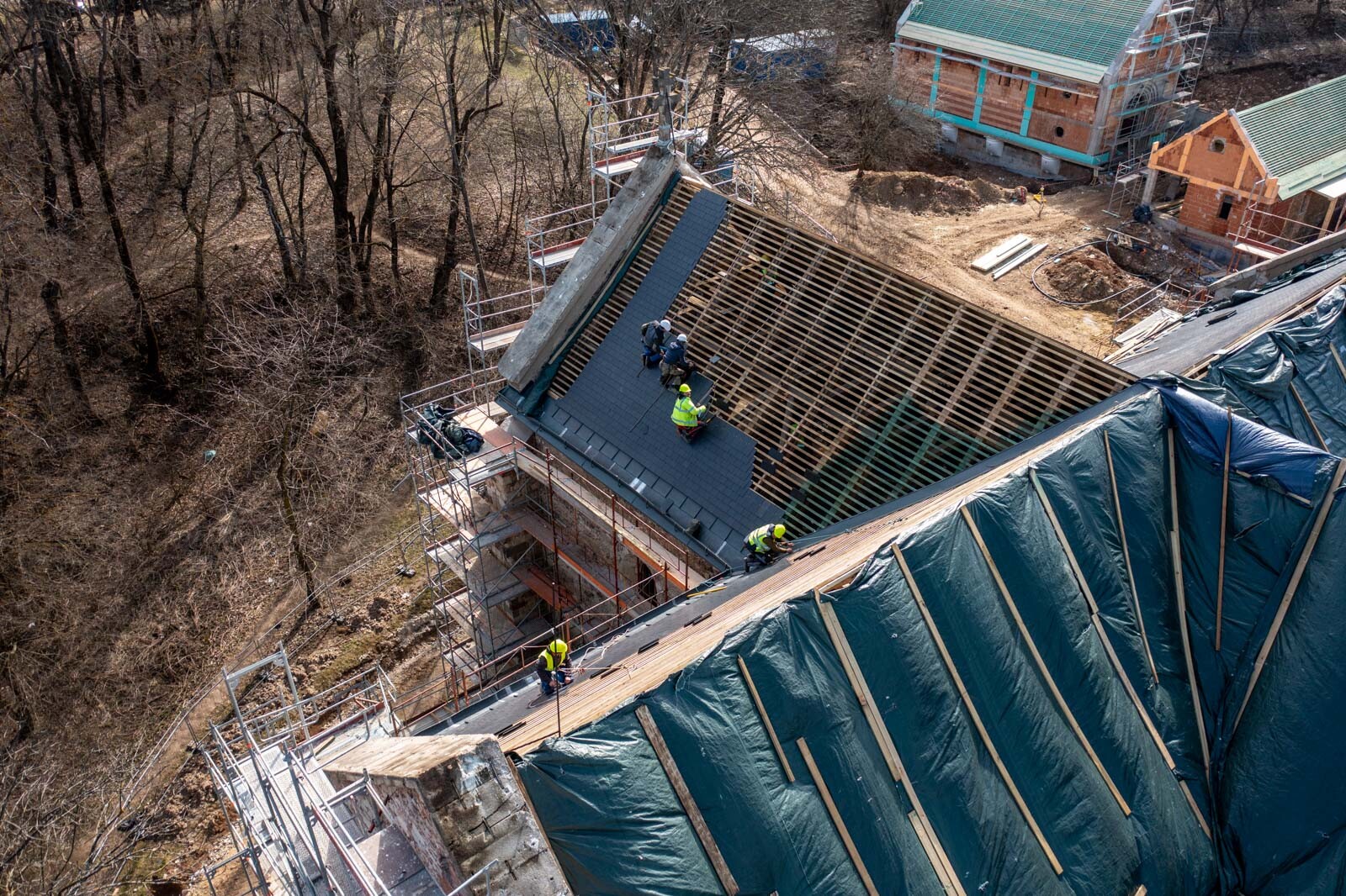 „A teljes épület ácsszerkezete megerősítésre kerül: a régi, megrongálódott szerkezetek cserélődnek, új palafedést kap az épület, a bádogos szerkezeteket is kicseréljük. A tetőszerkezet régi technológiával készült, vagyis minden kötés fémmentes faszegekkel és csapolásos módszerrel van építve, ezt ennek megfelelően kell visszaépítenünk. A templom négyezetét teljesen elbontottuk, és a korábbi mintájára acélgerendás megerősítéssel új tölgy anyagból újraépítettük.”