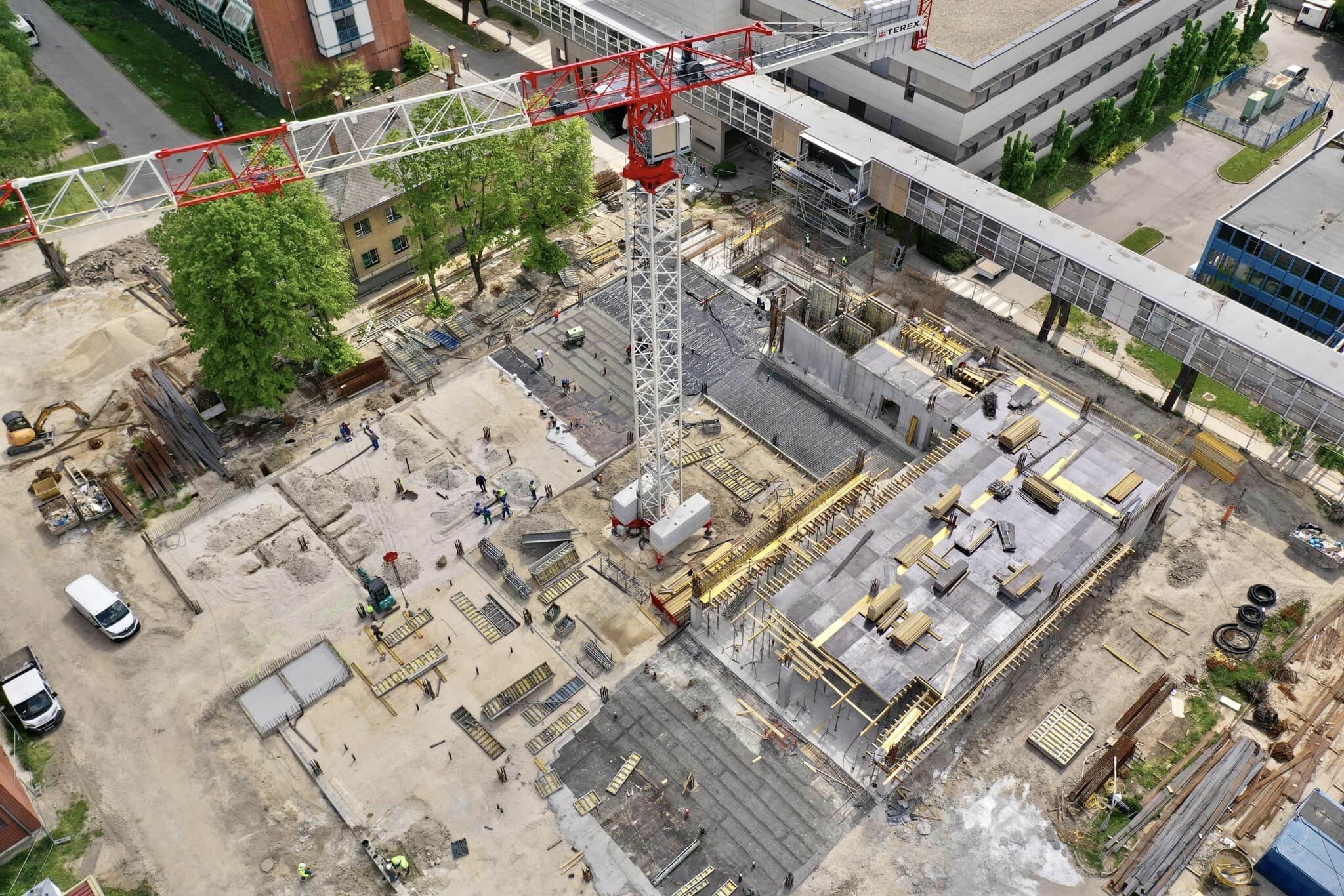 A kivitelezők elkészültek az új alépítményi szerkezetekkel, emellett folyamatosan készül a feltöltés, a gépészeti alapszerelés, valamint a szerelőbeton és talajvíz elleni szigetelés is.