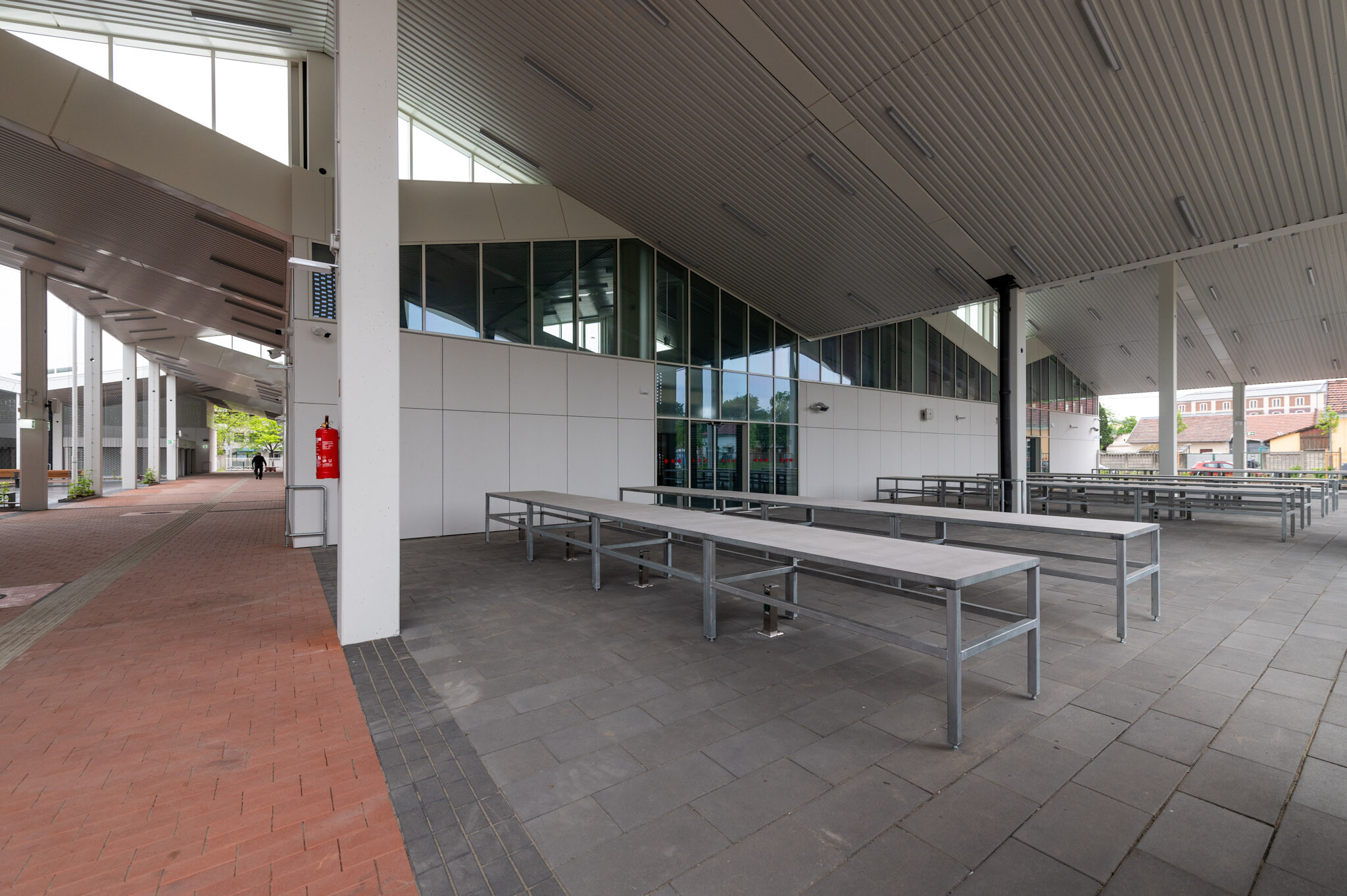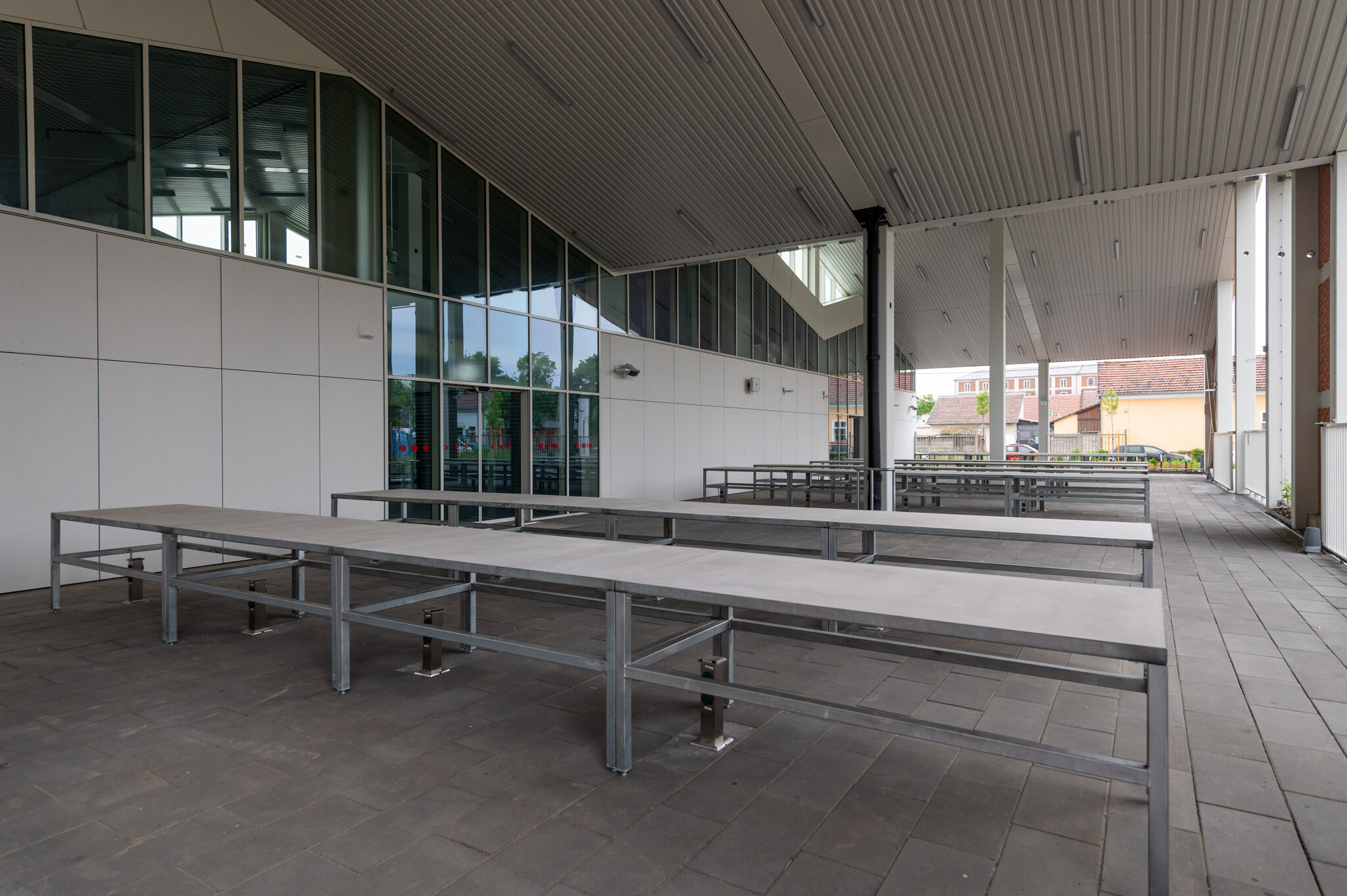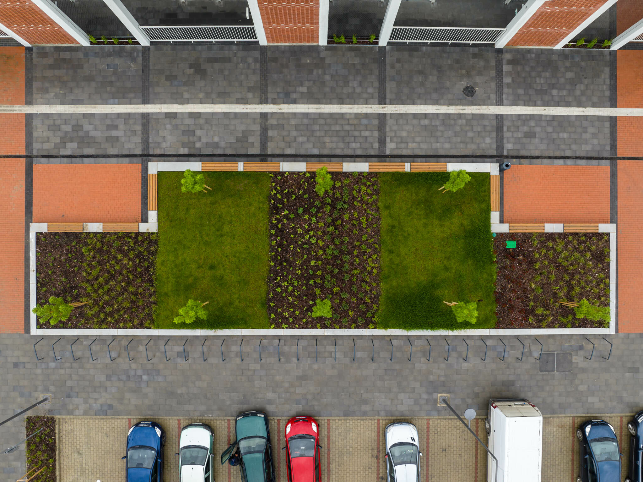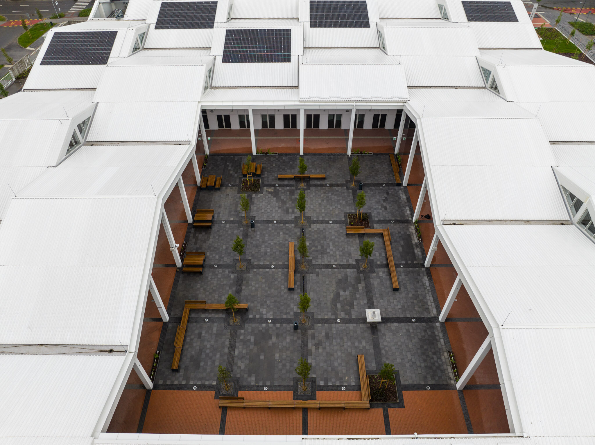 A munka részét képezte az épületek környezetének rendezése, melynek során 12.000 négyzetmétert fedtek le térburkolattal, növényszigeteket alakítottak ki, ülőpadokat és kerékpártárolókat helyeztek el.