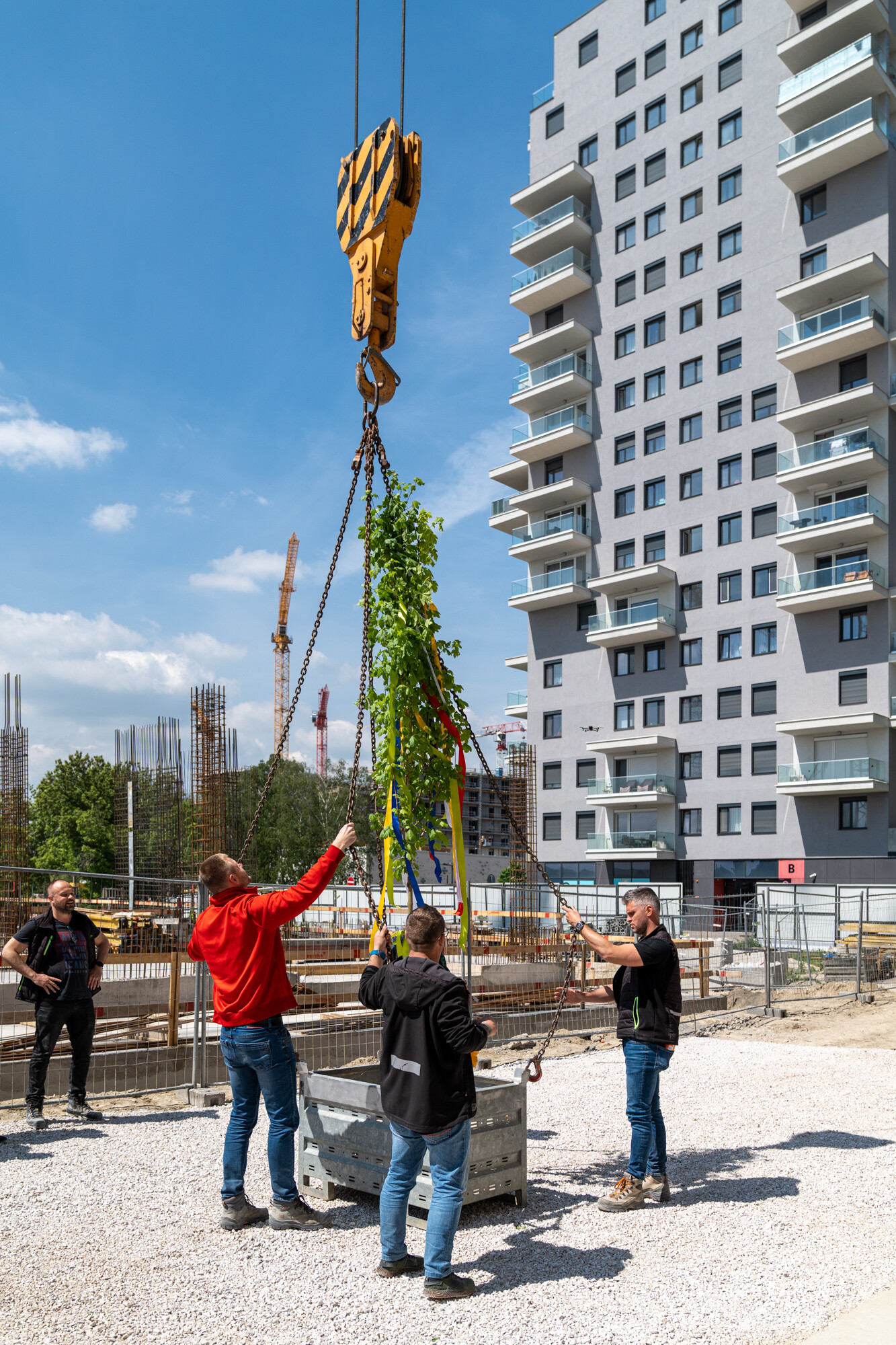 A bokrétaünnepségen a beruházó Kopaszi Gát Zrt. részéről Fodor Tamás, a kivitelező részéről pedig Bajcsay Márton, a Market Építő Zrt. műszaki igazgatója mondott köszönetet a szerkezetépítésen dolgozóknak.