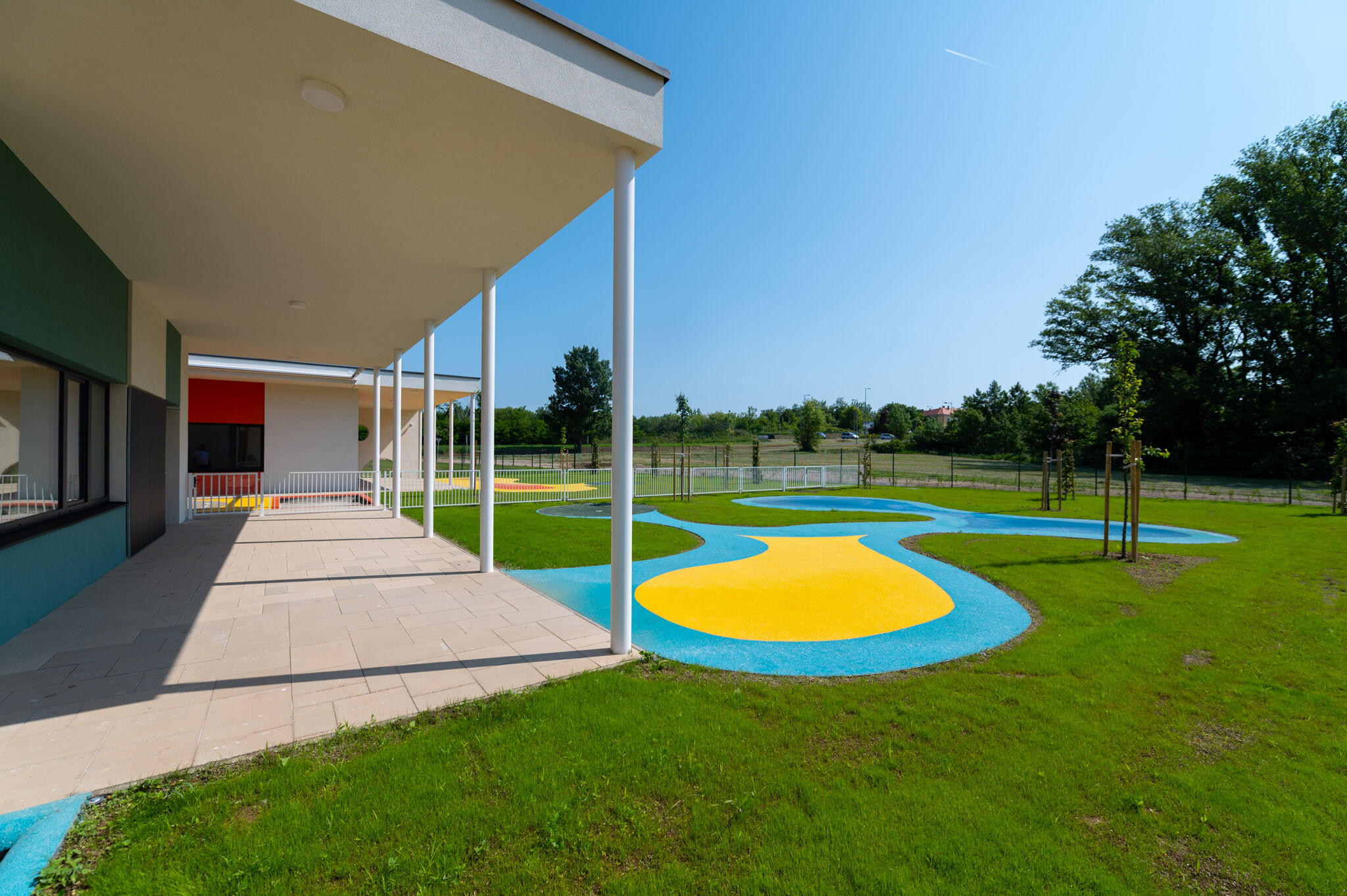 A SWIETELSKY Magyarország generálkivitelezésében elkészült, minden elemében modern intézmény kertjében számos játéklehetőség csábítja a kicsiket.