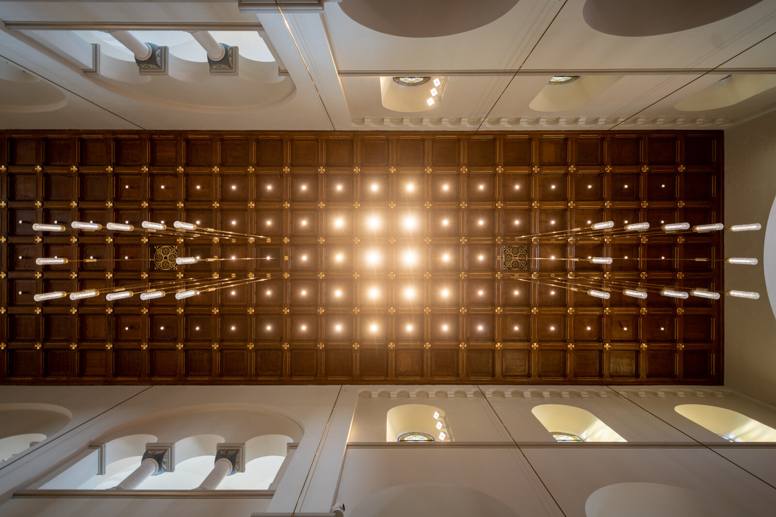 A boltozattól függetlenített statikai rendszerrel új acélgerendás-vasbeton öszvértartós födémszerkezetet alakítottunk ki. Az új födém a szentély gótikus körítő falaira 10 ponton adja át a terhelést a boltozat felett »lebegve«. A teherátadási pontok kiosztását – csakúgy, mint az acélgerendák hálózatának tervezését – az átalakítási munkákkal egyidőben zajló falazat- és boltozatfeltárások, régészeti kutatások és ezek eredményein alapuló 3D-s felmérés a legvégső pillanatokig folyamatosan átalakította.”