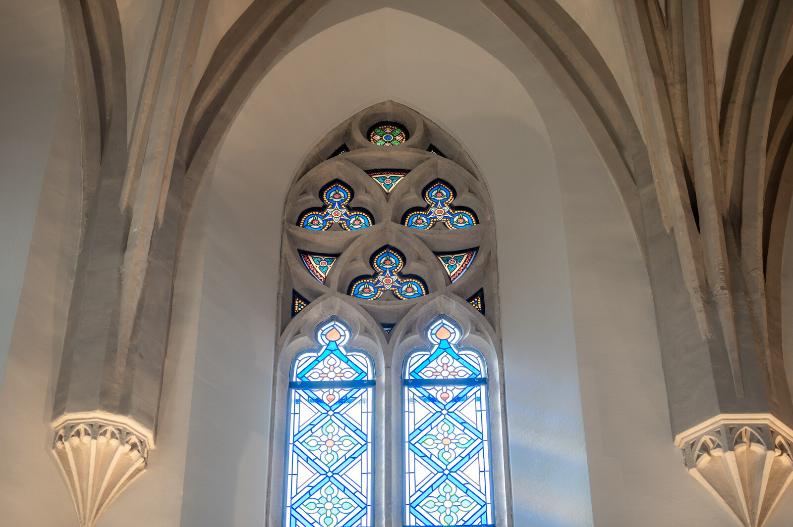 Az egyedi tervezésű üvegablakok az eredetihez hű anyaghasználati és geometriai rendszerben kerültek legyártásra és épülnek be a Főszékesegyházba. Az ólomüveg ablakok tervezését, gyártását és beépítését Wölfinger Barnabás és Hegyvári Bernadett végezte.