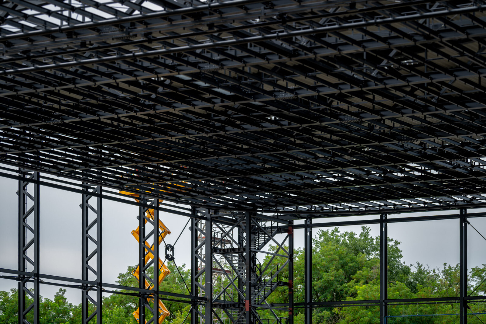 „Az elkövetkezendő időszakban a belső hanggátló falak acélszerkezetének kivitelezése és a fal szerelése következik, valamint a műtermek fedése utáni a catwalk és mother grid rendszer felett és a tető alatt elhelyezendő gépészeti, sprinkler és elektromos szerelések adnak nagy szervezési feladatot. Ezt úgy fogjuk elvégezni, hogy a mother grid rendszerre több ütemben állványzatot készítünk, hogy munkavédelmi szempontból megfelelő munkaszintet tudjunk biztosítani az ott dolgozóknak.”