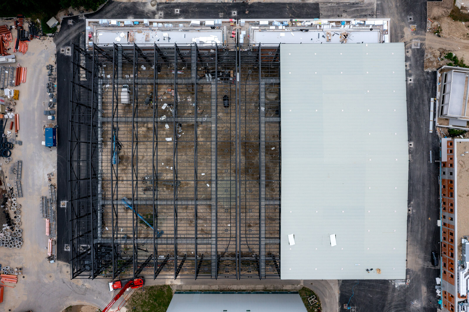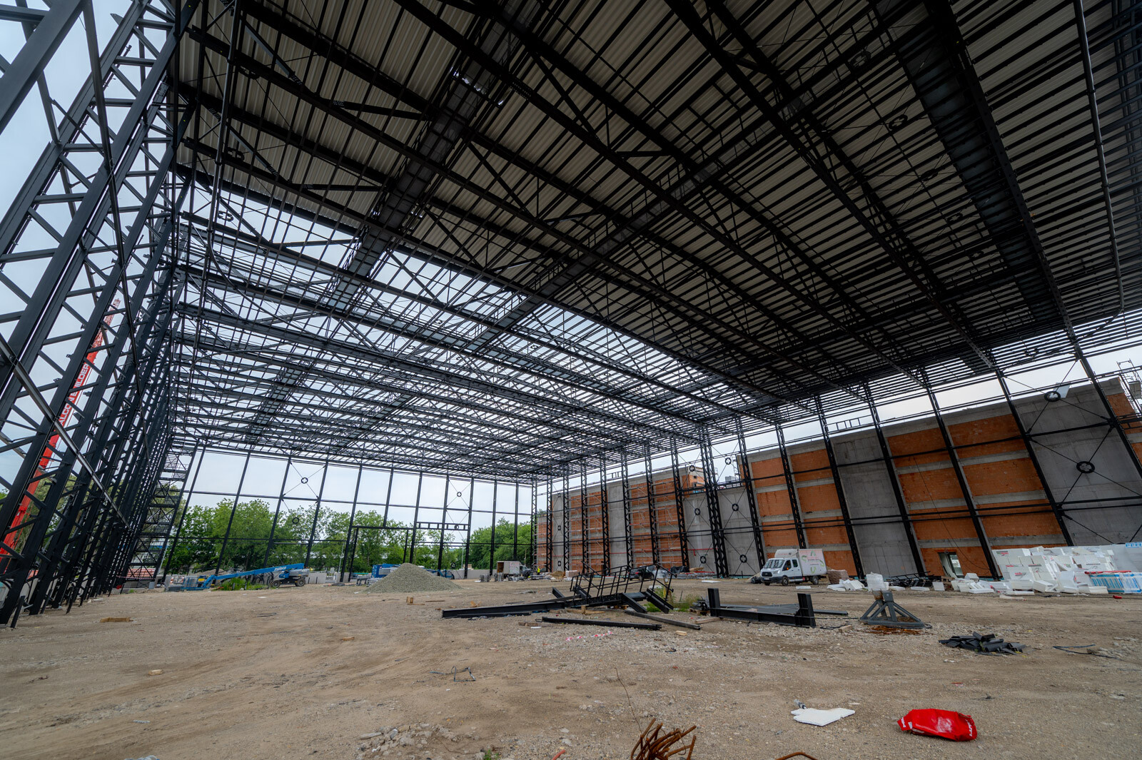 A műtermek acél tartószerkezete mostanra már elkészült. A hozzájuk csatlakozó fejépület szerkezetépítése szintén készen van, jelenleg a szakipari munkák vannak folyamatban. Itt kapnak majd helyet az irodák, kisebb műhelyek, sminkszobák és öltözők is.