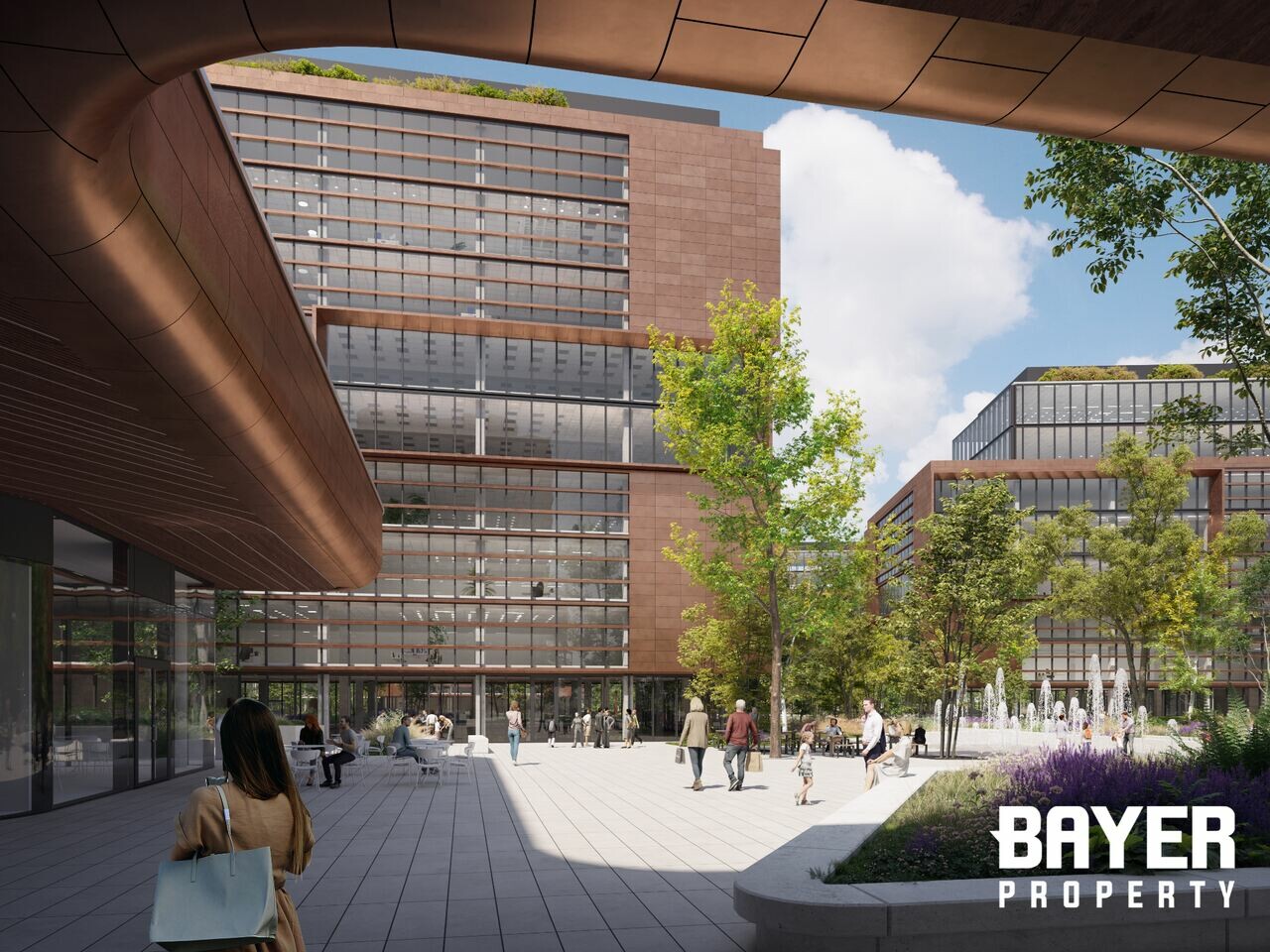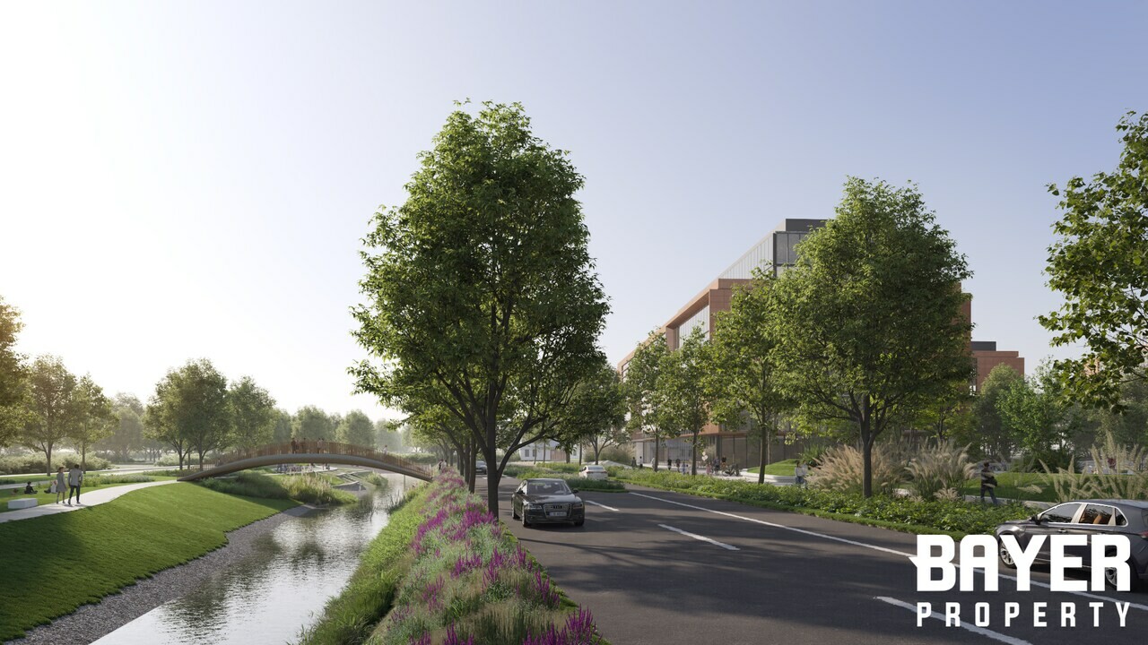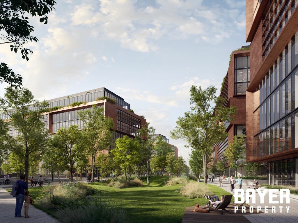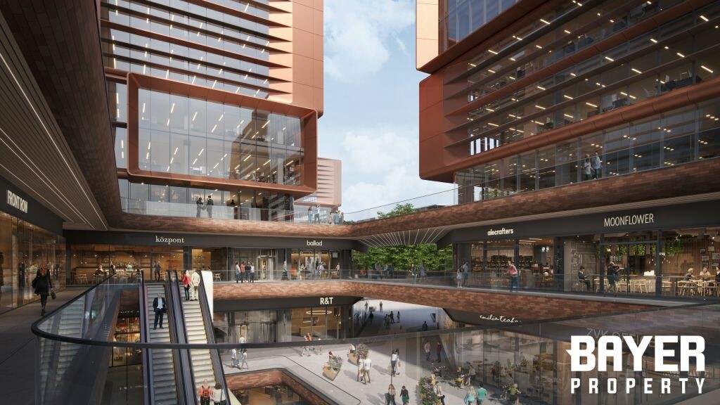 Az O1 irodaház alatt kereskedelmi egységek - szupermarket, étterem, bank, divat és egyéb szolgáltatások - is elérhetőek lesznek, az épületek közötti részen sétáló utcákat és zöld parkokat létesítenek.