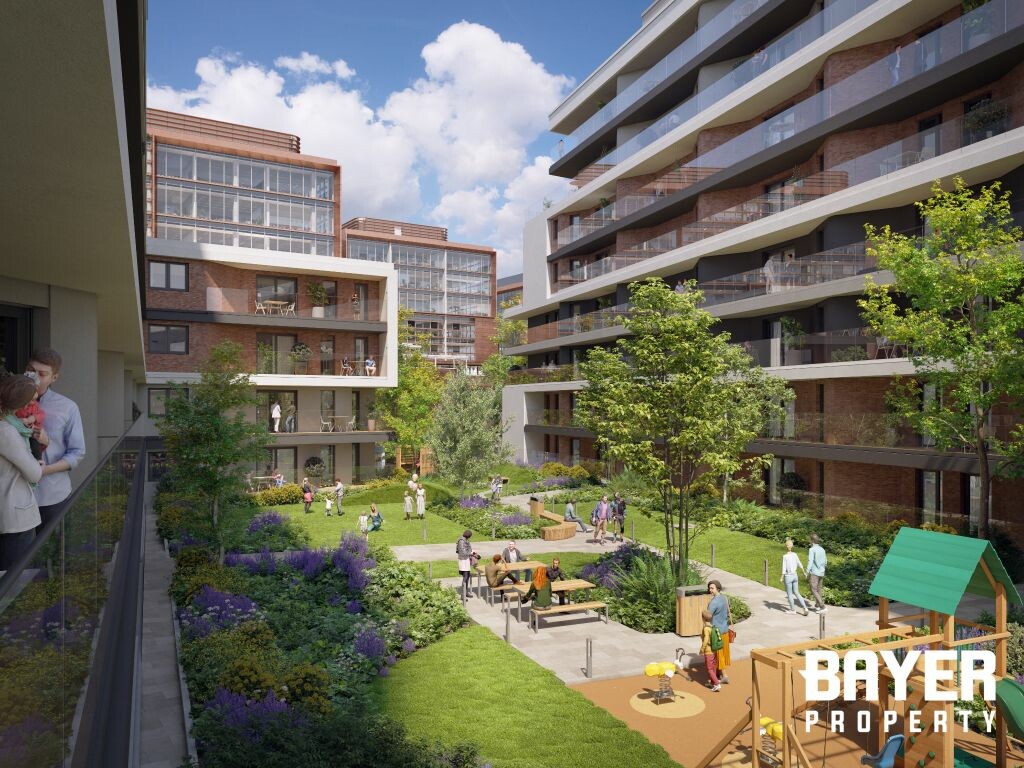 A belső udvarban tájépítész által tervezett kertben pihenésre és közösségi találkozásra alkalmas felületeket hoznak létre padokkal, játszótérrel. Az ültetett fák árnyékot adnak, idényjelleggel pedig virágba borul a kert egy része, így az új lakástulajdonosok gyönyörű zöld környezetben érezhetik otthon magukat.