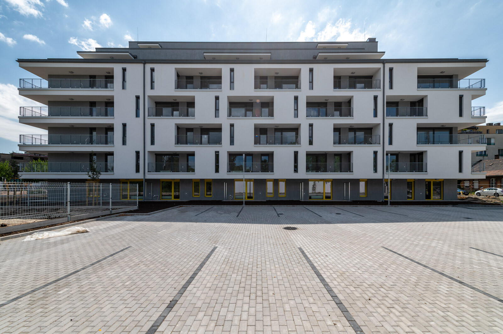 „Az elmúlt néhány hónapban beltérben a hideg- és melegburkolást, a belső ajtók beépítését, a festést, a szerelvényezéseket végeztük. Külső területeken a kertészeti, a térburkolási és a telekhatáron kívüli járda építési munkák zajlottak Az önkormányzat előírásának megfelelően az utca teljes hosszában járdát kellett készítenünk, kiszélesítettük az útpályát és parkolósávot alakítottunk ki.”