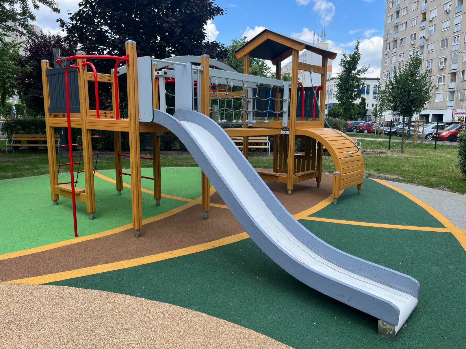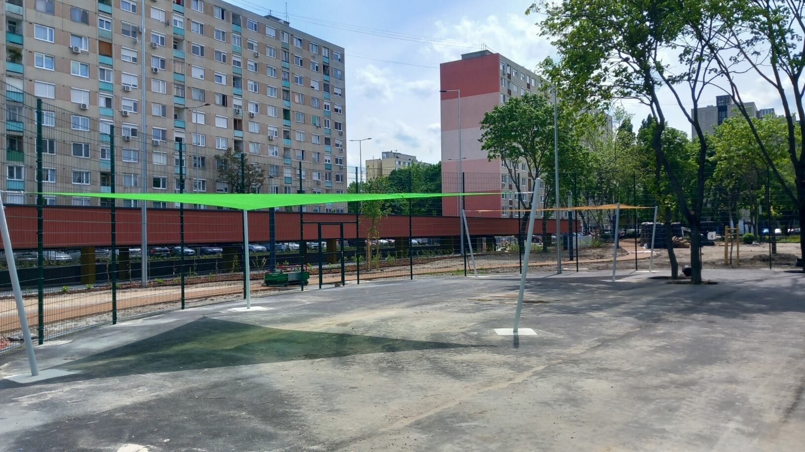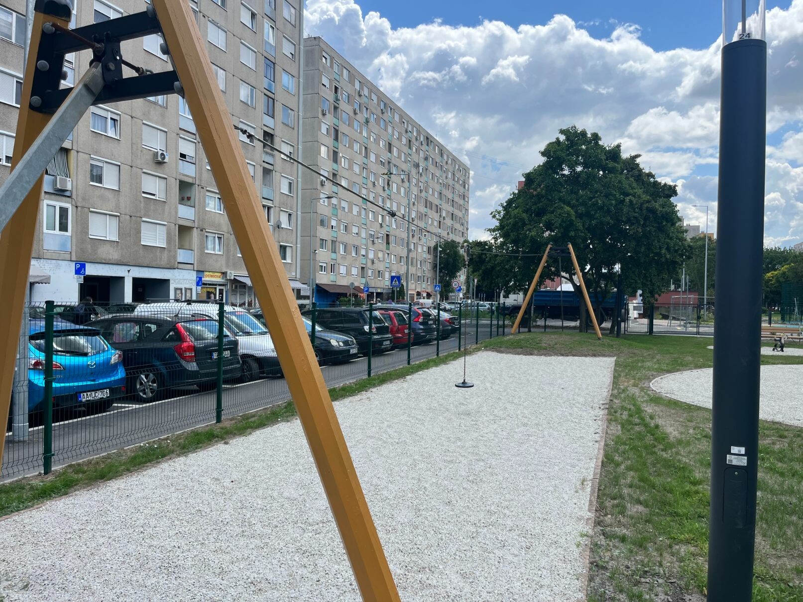 A park északi végében található játszótéren a meglévő eszközök mellé újak kerültek. A terület fölött fém oszlopokhoz rögzített napvitorlák biztosítanak árnyékot. Központi elemként egy hajó alakú homokozó helyezkedik el, ami csúszdát és kis mászókát is tartalmaz.