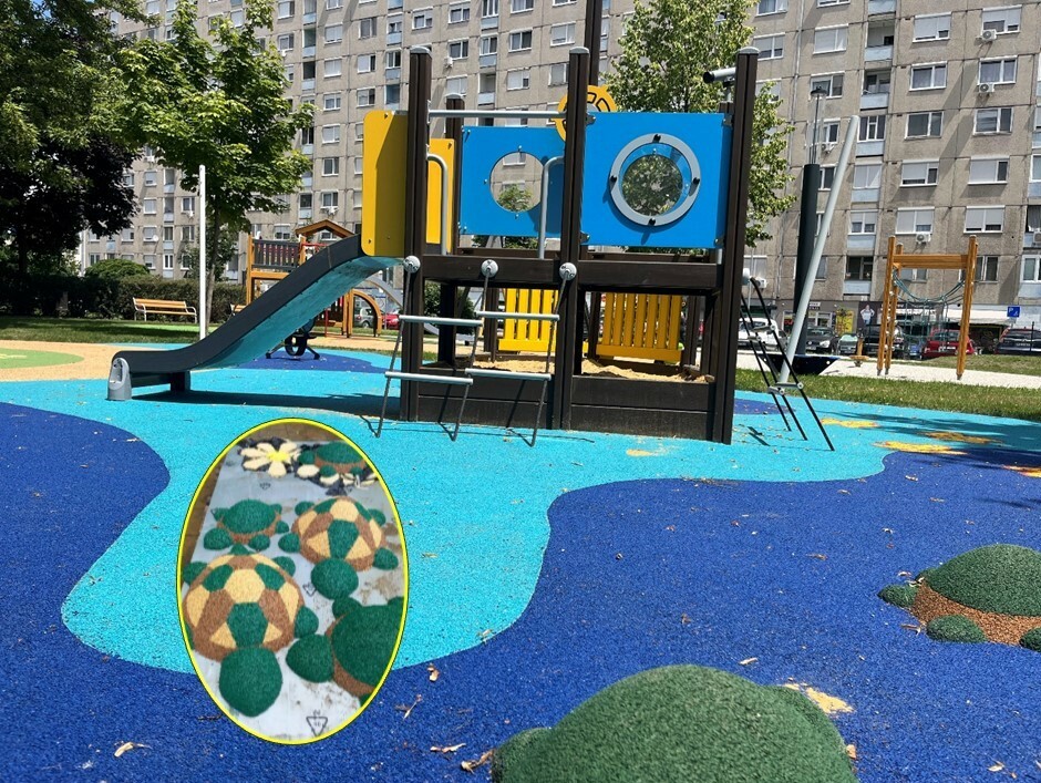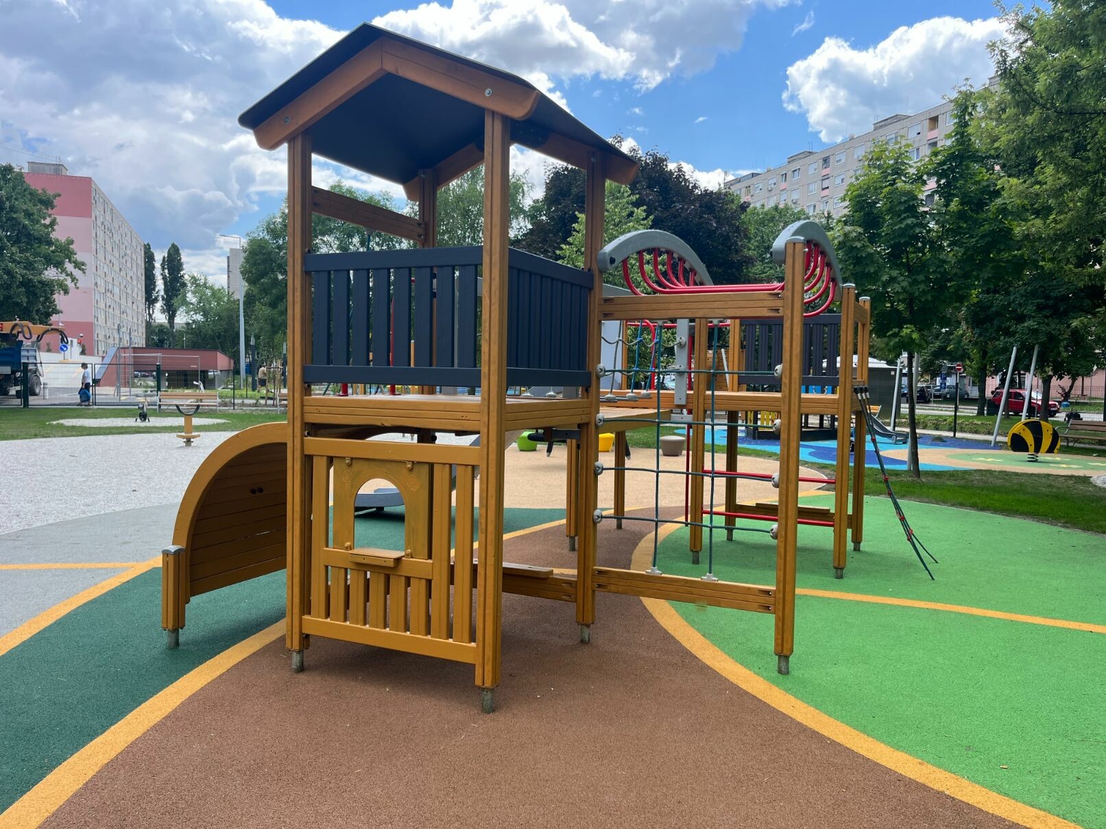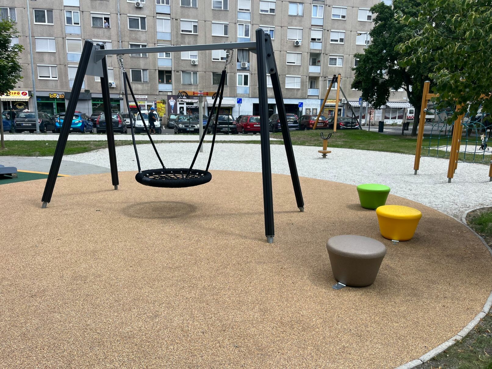 A park északi végében található játszótéren a meglévő eszközök mellé újak kerültek. A terület fölött fém oszlopokhoz rögzített napvitorlák biztosítanak árnyékot. Központi elemként egy hajó alakú homokozó helyezkedik el, ami csúszdát és kis mászókát is tartalmaz.