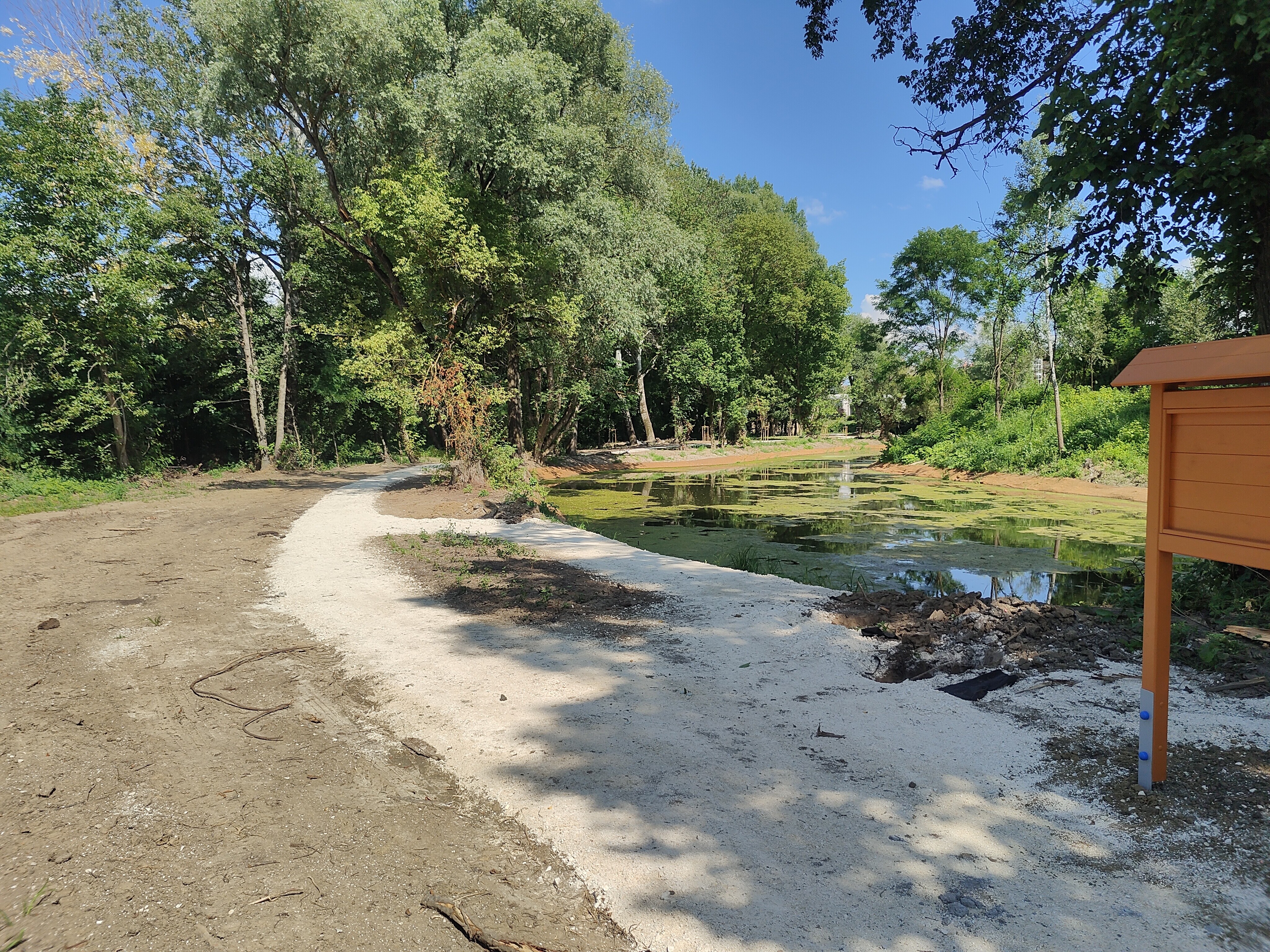 Az útépítési szakági munkálatok keretén belül gyalogos átkelőhelyet létesítettek a Kóvári úton, a holtág irányába, és parkolót építettek ki a Kóvári út mellett, a gyalogos átkelőhely környezetében.