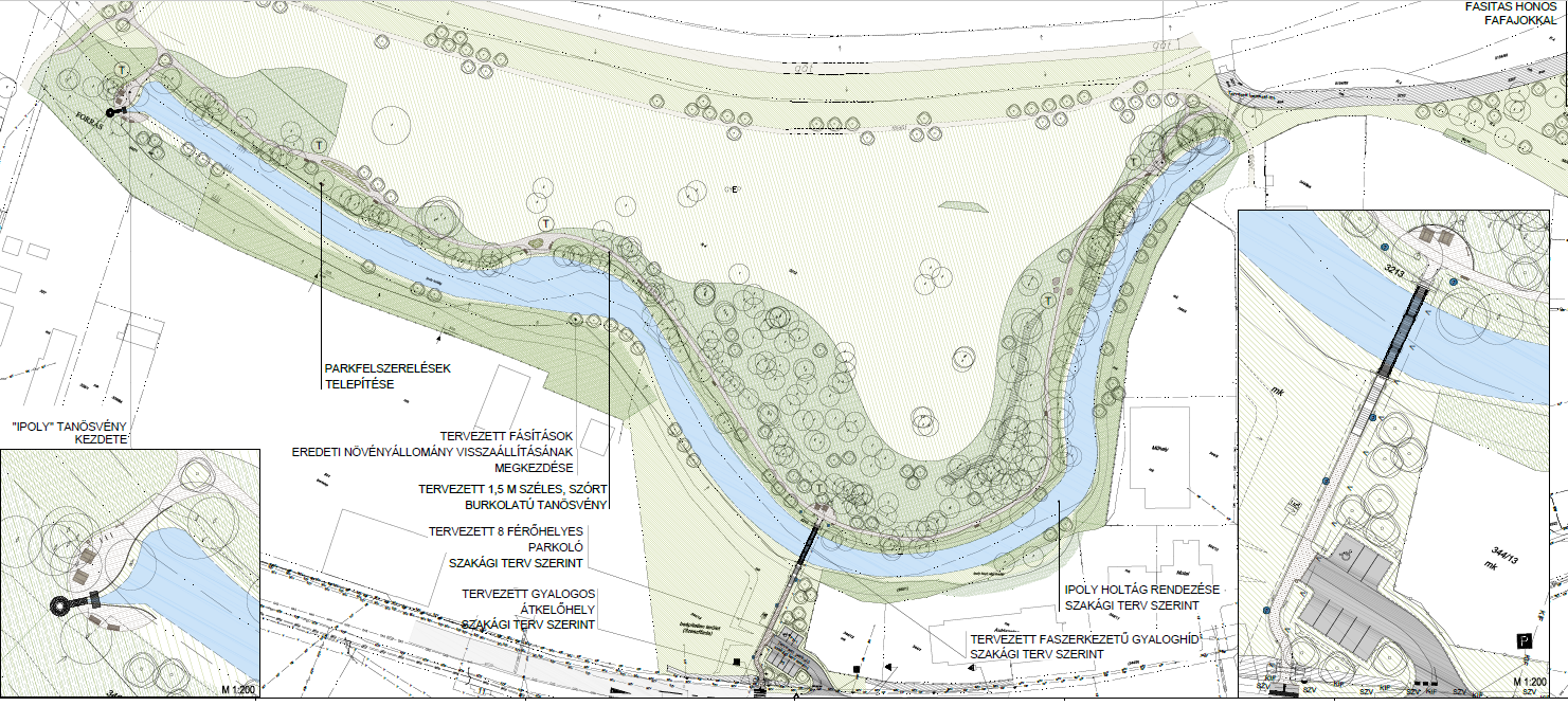 A programon belül az Ipoly holtág rehabilitációja a Penta Kft. feladata volt. A vállalat a tájépítészeti munkák során elvégezte a holtág körüli zöldfelület növényállományának rekonstrukcióját, környezetbe illő utcabútorokat, táblákat, hulladékgyűjtőket helyezett ki, zúzalékos gyalog tanösvényt alakított ki a holtág és az árvízvédelmi töltés között, valamint pihenőtereket, tanösvény állomásokat létesített.