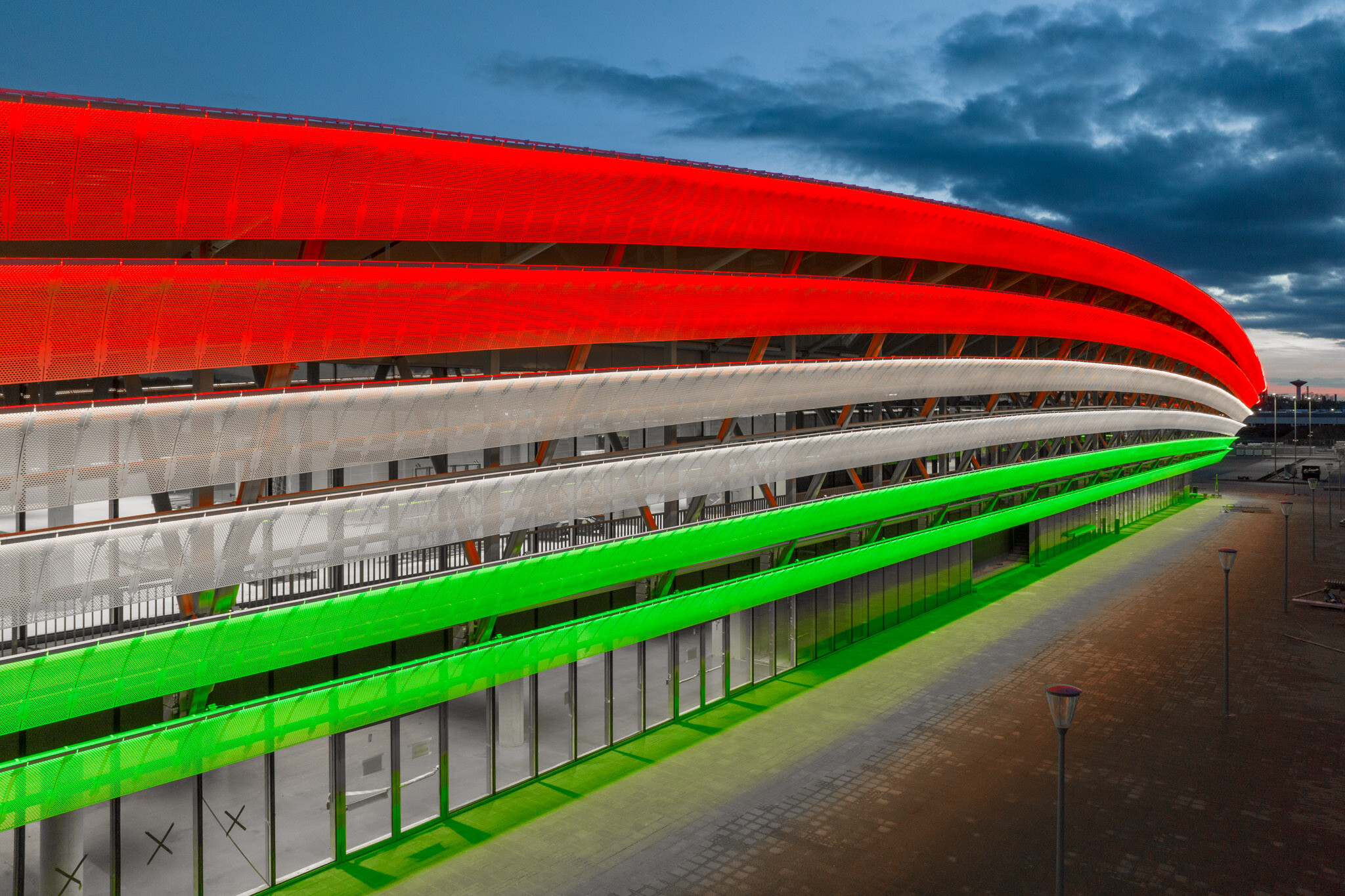 Az alkalmazott modern világításvezérlésnek köszönhetően látványos és dinamikus fényjátékokat láthat majd a közönség. Egyik ilyen érdekes megoldás lesz a homlokzati világításvezérlés interaktív kommunikációja és reakciója az arénában történő eseményekkel - például egy mérkőzés során.