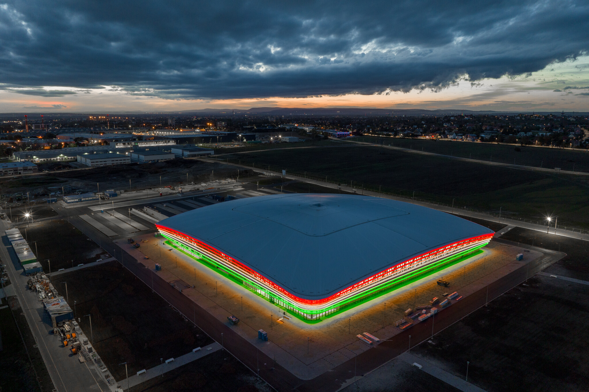 Látványos fénypróbát tartottak a Market Építő Zrt. generálkivitelezésében épülő Alba Arénánál, melynek munkálatai a befejező szakaszához érkeztek.