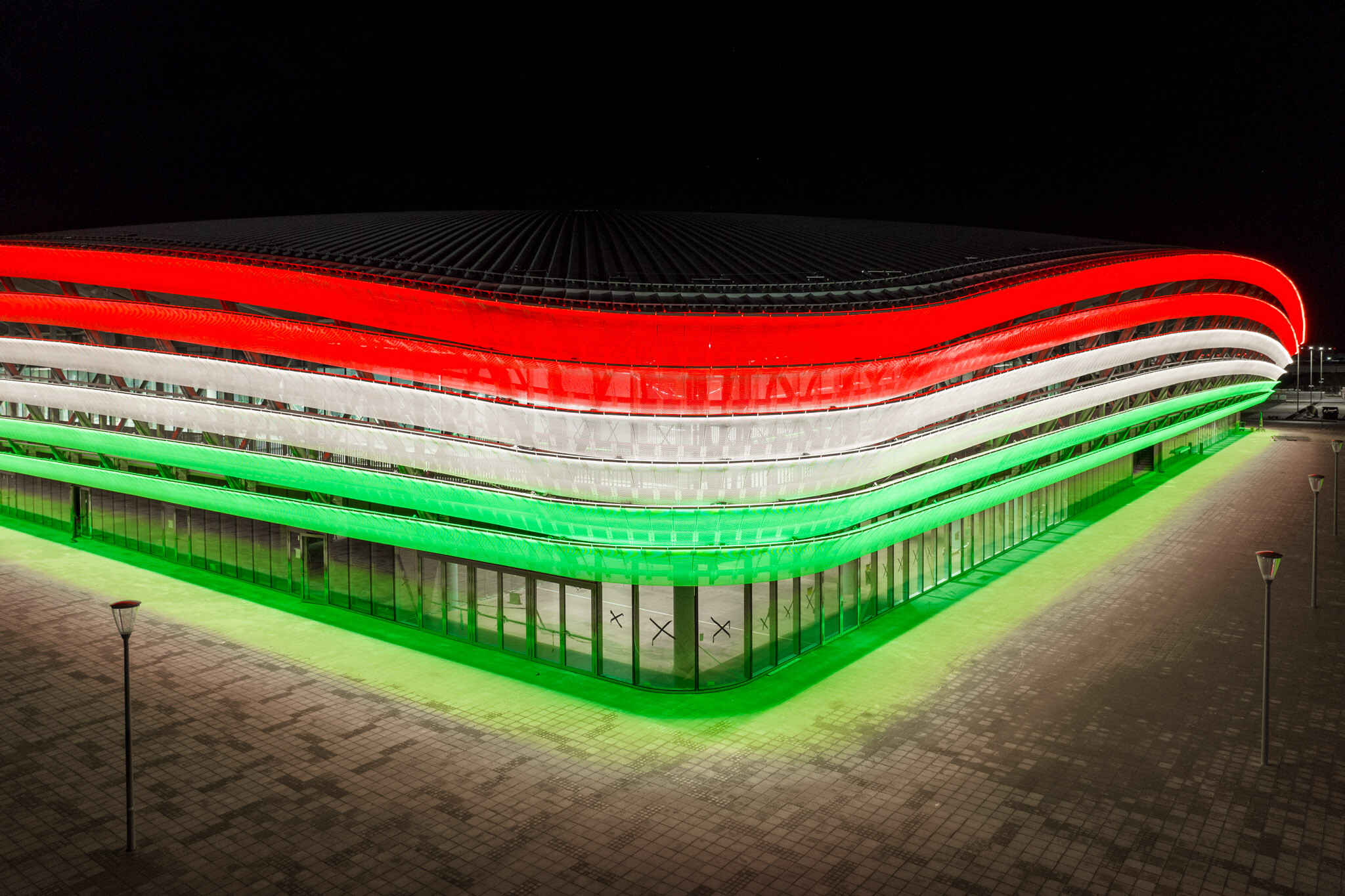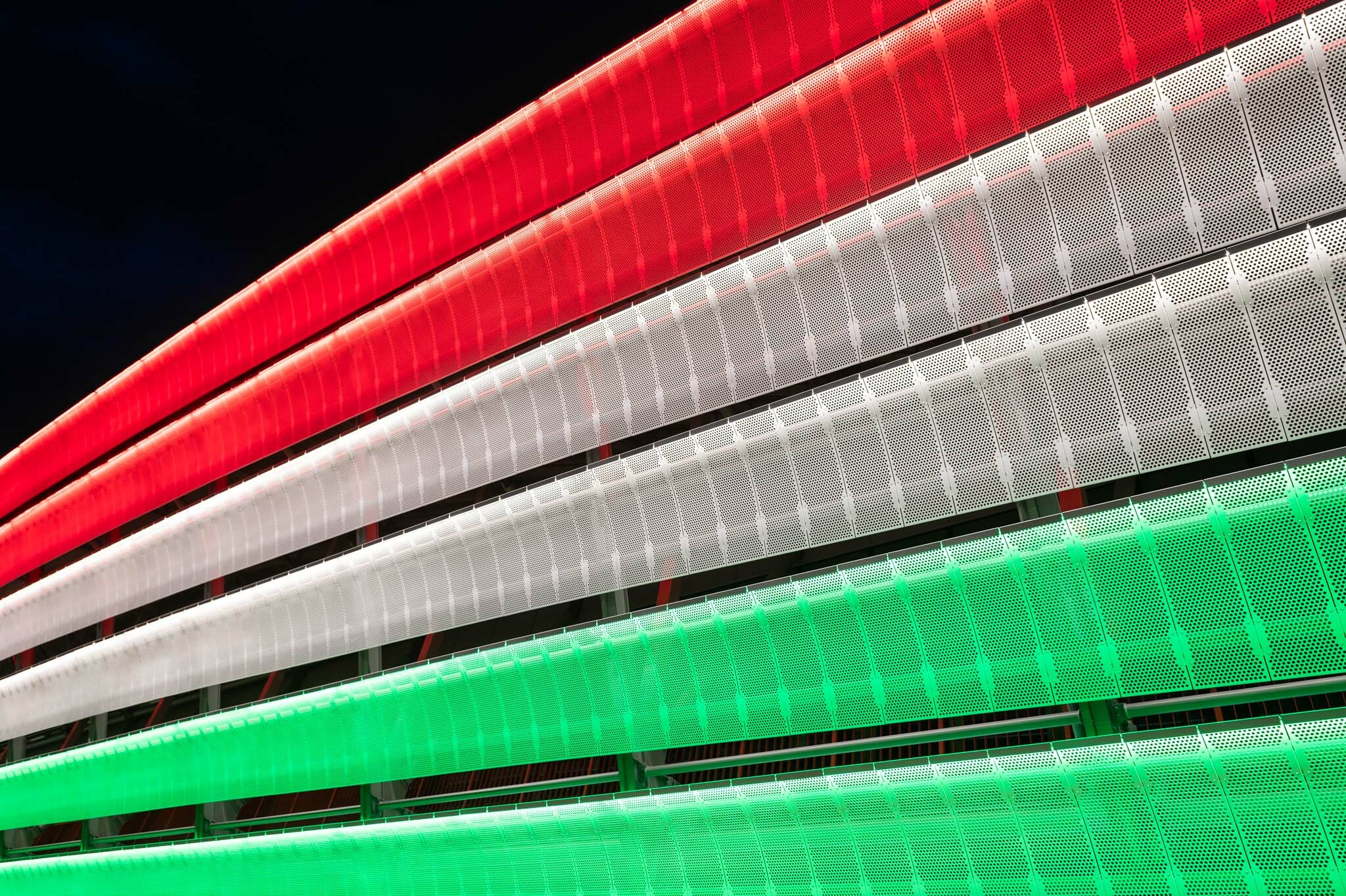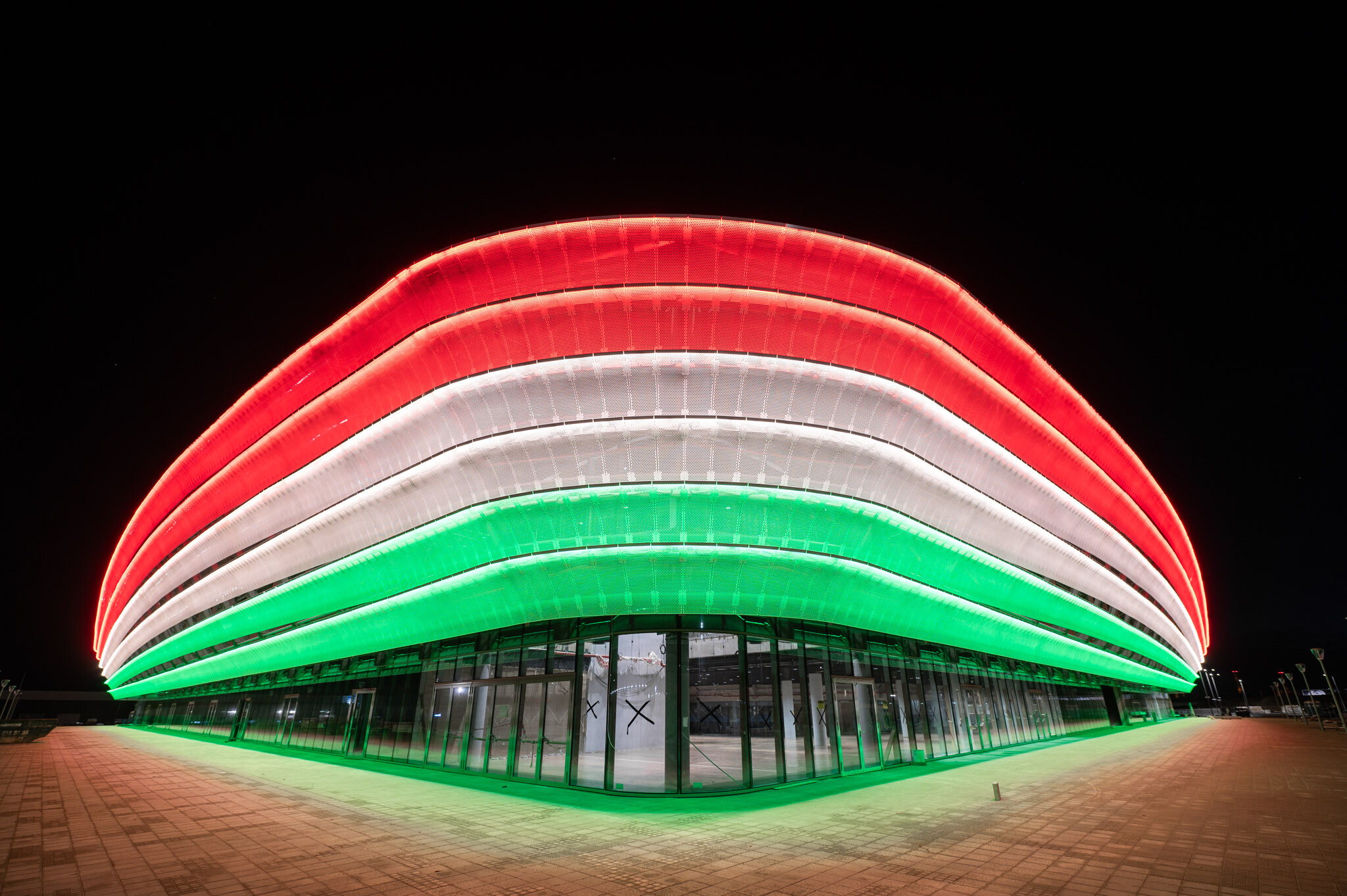 Október 23-án nemzeti színekbe öltöztették az épületet, amelyről egy bámulatos videót is megosztott YouTube-csatornáján a kivitelező cég.